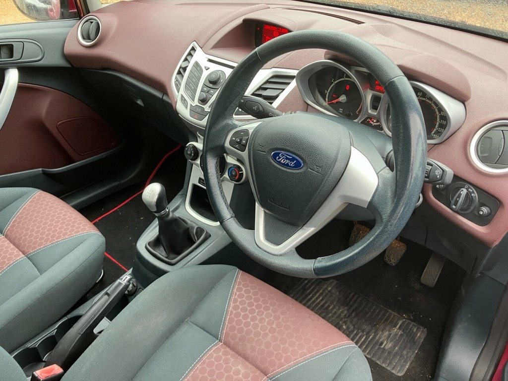 *JUST ARRIVED* Two owner, December MoT (no advisories), service history, lovely condition. This 2009 Ford Fiesta Zetec presents a superb ownership opportunity, having been cherished by only two previous owners. Powered by an efficient 1.25 litre petrol engine, this Zetec model offers a balanced driving experience. With its MOT valid until December 2026, you can drive away with confidence. This particular Ford Fiesta Zetec stands out due to its low insurance group rating, making it an economical choice for many drivers. Furthermore, its low CO2 emissions indicate a more environmentally friendly performance compared to similar vehicles. These factors combine to make this Fiesta a practical and sensible option. Metallic Paint - Hot Magenta, Parking Sensor - Rear, 16in - Alloy Wheels, 2 Front Speakers, Air Conditioning, Airbag - Driver, Airbag - Driver Seat Head Thorax, Airbag - Front Passenger, Airbag - Front Side, Airbag - Knee Driver, Anti-Lock Brakes (ABS) and Emergency Bra, Body Colour Rear Spoiler, Bumpers - Body Colour, Centre Rear Seat Belt, Driver Seat Height Adjust, Electronic Brake Force Distribution (EBD, Front Fog Lights, Head Restraints Front/Rear, Heated Rear Screen, Immobiliser, Leather Gearknob, Leather Steering Wheel, Map Reading Lights/Aesthetic Lighting, Power - Assisted Steering, Power Heated Mirrors, QuickClear Heated Windscreen, Radio/CD, MP3 Compatible with 2-Line Dis, Reach