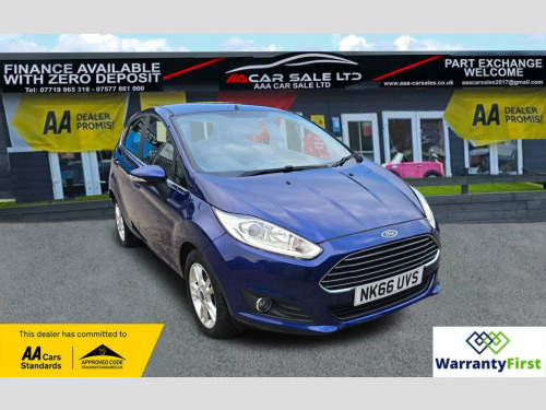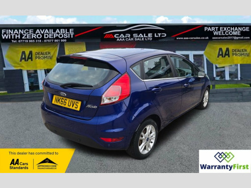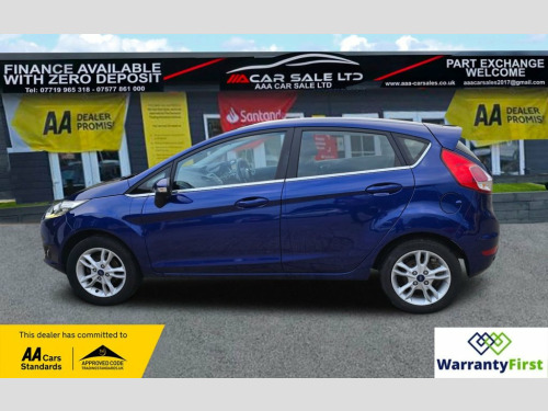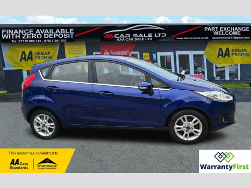 **AAA CAR SALES DARLINGTON LTD HAVE THE PLEASURE TO PRESENT THIS FORD FIESTA 1.25 Zetec Hatchback 5dr Petrol Manual Euro 6 (82 ps) in DEEP IMPACT BLUE PAINTWORK, FULL SERVICE HISTORY - SERVICED AT 6K, 11K, 15K, 23K, 31K, 40K, 52K, 63K, 73K AND SERVICED BY OUR TEAM AT 76K. ALL OUR CARS GO THROUGH 72 POINT INSPECTION,ALL OF OUR CARS COME WITH 12 MONTHS AA BREAKDOWN COVER, FRESH MOT WITHOUT ADVISORIES,INTERIM SERVICE,HPI CHECKED VIA EXPERIAN,3 MONTHS WARRANTY WITH THE OPTION TO UPGRADE ***AUTOTRADER CUSTOMER SERVICE AWARD 2019,2020,2021,2022,2023 and 2024 YEAR ON YEAR***, WE ARE OPEN 7 DAYS A WEEK FOR YOUR CONVIENIENCE,CALL 01325 511665 OR EMAIL US AT [email protected] or visit our website www.aaa-carsales.co.uk, , Service history, Clean bodywork, Cloth interior - Clean Condition, Tyre condition good, YOU CAN BUY WITH FULL CONFIDENCE FROM AAA CARS CHECK OUR AUTOTRADER REVIEWS FOR FULL PEACE OF MIND, Deep Impact Blue, 15in Alloy Wheels - 5x2 Spoke, Ambient Lighting, Bumpers - Front and Rear Body Colour, Centre Console, Courtesy Light - Front with Map Reading , Courtesy Light - Overhead with Theatre-S, Courtesy Light - Rear, Door Handles - Body Colour, Door Mirrors - Electrically-operated and, Double Locking, EPAS - Electric Power Assisted Steering, ESP - Electronic Stability Programme, Electrically-Operated Front Windows with, Emergency Brake Warning - Automatic Haza, Engine Immobiliser - Passive Anti-theft , First Aid Kit and Warning Traingle Stora, Footwell Lights - Driver and Passenger, Ford DAB with Ford SYNC, Ford Easy Fuel Capless Refuelling System, Front Fog Lights - Chrome Bezel