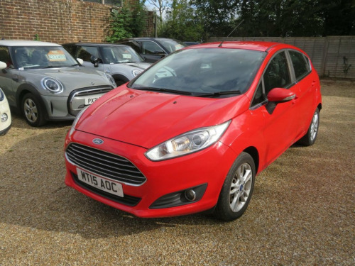 New Arrival | Awaiting Valet. The Ford Fiesta has been one of the best-selling cars in the UK for a reason... it's highly praised for its exceptional handling, reliability, and good fuel economy! A very popular rival to the Volkswagen Polo, but much better value for money. This very low mileage example benefits from previous Ford main dealer service history and comes with a fresh service and detailed inspection. MOT until August 2026 (with all advisories replaced). One Previous Owner. Only Insurance Group 7 and very fuel efficient with over 54 average MPG! Features include: 15" Alloy Wheels, LED Daytime Running Lights, Air-Conditioning, Media Connectivity with USB Connection, Quickclear Windscreen, Start/Stop Engine, Electric Windows, Spare Key. 2015 Ford Fiesta 1.25 Zetec 5 Door Hatchback (Euro 6 / ULEZ Compliant) finished in Candy Red ---------- 12V Power Socket - Front, 15in Alloy Wheels - 5x2 Spoke, ABS - Anti-lock Braking System, Aesthetic Lighting Package, Air Conditioning - Manual, Airbags - Curtain, Airbags - Driver Side Knee, Airbags - Front Passenger, Airbags - Head and Thorax, Airbags - Passenger Deactivation, AUX Connection, Bluetooth Hands-free Phone, Body Colour Exterior Mirrors, Brake Warning Lights - Automatic Flashin, Bumpers - Front and Rear - Body Colour, Candy Red, Centre Console - with Trinket Tray - Two, Chrome Belt Line Finisher, Courtesy Light - Overhead with Theatre-S, Courtesy Lights with Map Reading Lights, DDS - Deflation Detection System, Door Handles - Body Colour, Door Mirrors - Electrically Operated and