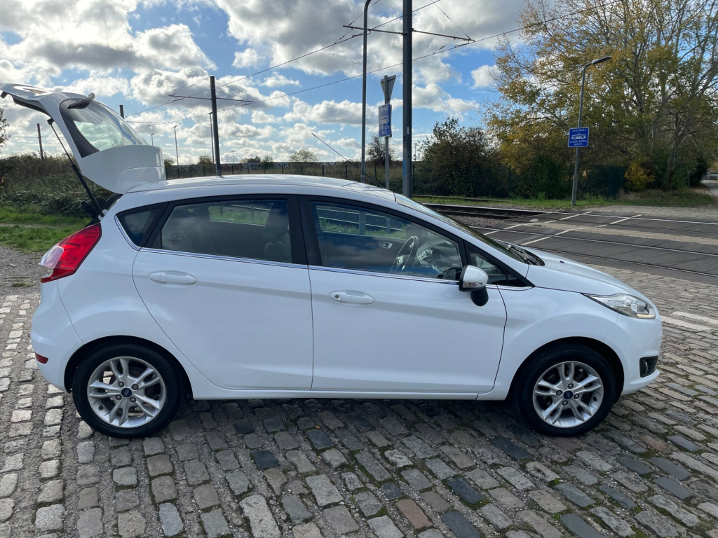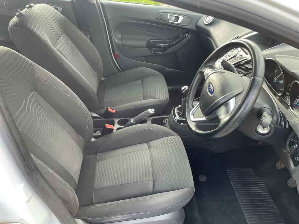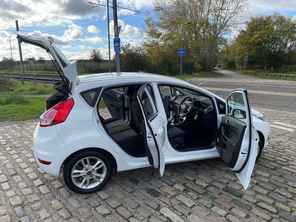 Lady Owner since 2018 - ULEZ Comliant - 2017 Ford Fiesta 1.25 Zetec Hatchback with just 72100 miles on the clock is a stylish and fuel-efficient choice for anyone in need of a reliable car, we understand serviced by family friend. Powered by a Euro 6 compliant petrol engine , this 5-door hatchback easily accommodates 5 passengers with its 5 seats. and boot space The MOT doesn't expire until 01/10/2026, and it's ULEZ compliant, making it ideal for city driving. Some key features include 15in Alloy Wheels, Body Colour Bumpers and Door handles, and Electrically-operated and Heated Door Mirrors. Plus, the Electrically-Operated Front Windows with One Touch functionality ensure convenience and ease of use. Don't miss out on the chance to own this affordable and practical vehicle! Supplied with 2x key and book pack. Parts and Labpour Warranty and low cost finance available. in alloy wheels - 5x2 spoke, bumpers - front and rear body colour, door handles - body colour, door mirrors - electrically-operated and heated - integrated side indicators - body colour housing, electrically-operated front windows with one touch, front lower grille insert - black, front upper grille - chrome finish surround, front upper grille insert - chrome bars, locking wheel nuts, quickclear heated windscreen, rear spoiler - body colour, tailgate handle - body colour, tinted glass, tyre repair kit, ambient lighting, centre console, courtesy light - front with map reading lights, courtesy light - overhead with theatre-style dimming, courtesy light - rear, footwell lights - driver and passenger, gearshift knob - leather, glovebox - illuminated, interior door lever - chrome finish, leather-trimmed handbrake, loadspace compartment light, loadspace floor carpet, manual air conditioning, mykey, pollen filter, removable package tray, seats - drivers 4-way manual adjustment, steering column - rake and reach adjustment, steering wheel - 3 spoke - leather trimmed, wipers - front variable intermittent, double locking, esp - electronic stability programme, emergency brake warning - automatic hazard warning lights, engine immobiliser - passive anti-theft system, first aid kit and warning traingle storage, ford easy fuel capless refuelling system with misfuel inhibitor, hill start assist, ips - intelligent protection system, remote central locking with two flip keys, tailgate wash-wipe, epas - electric power assisted steering, gear shift indicator, suspension - front stabiliser bar, trip computer, tyre pressure monitoring system, ford dab with ford sync, power point socket - 12 v, front fog lights - chrome bezel rings, halogen projector headlights with silver surrounds and led daytime running lights, headlights - courtesy delay, high-mounted rear brake light