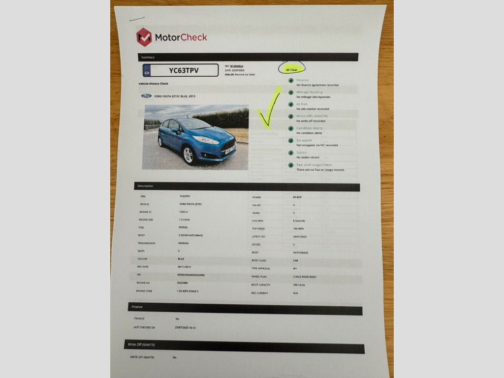 Just come in - Lovely 2013 63 Plate Ford Fiesta Zetec 1.25 Petrol, In Blue Candy Metallic, what a colour! Makes this Fiesta stand out from the crowd, , Finance available, 6 Services, £35 Road Tax , Rear Parking Sensors, Spare Key, Just had a Fresh New 12 MONTHS MOT (No Advisories) to 16th JULY 2026, Part Exchange Welcome, Finance Arranged For You Zero Deposit available, , Air Conditioning thats Cold. A great plus on a day like today!, Bluetooth phone with Audio Streaming from your phone and Aux/USB connection, Rear Parking Sensors, Last Serviced on 14/01/25 at 69147 miles, , 3 Months Warranty at Advert Price, Full VOSA History Check, MotorCheck History Report, HPI Clear, , Excellent Condition and Well Maintained - See the Video, Daytime Running Lights, Power Steering, Remote Central Locking, 2 Keys, Alloys with Good Tyres, All The Handbooks, Electric Front Windows, Electric Mirrors, ISOFIX, Very Economical, , Comes with a MotorCheck History Report, Plus a FREE Nationwide 3 MONTHS WARRANTY At Advert Price For Your Piece Of Mind Including AA Assistance, Extendable to 6 and 12 Months Warranties Available, PART EXCHANGE WELCOME, , SEE OUR GOOGLE REVIEWS and For More Cars Google Our Website Pennine Car Sales Pontefract, Open 7 Days, PLEASE CALL BEFORE TRAVELLING AS VIEWING BY APPOINTMENT, , CALL 07917004363, More cars at https://www.penninecarsales.co.uk