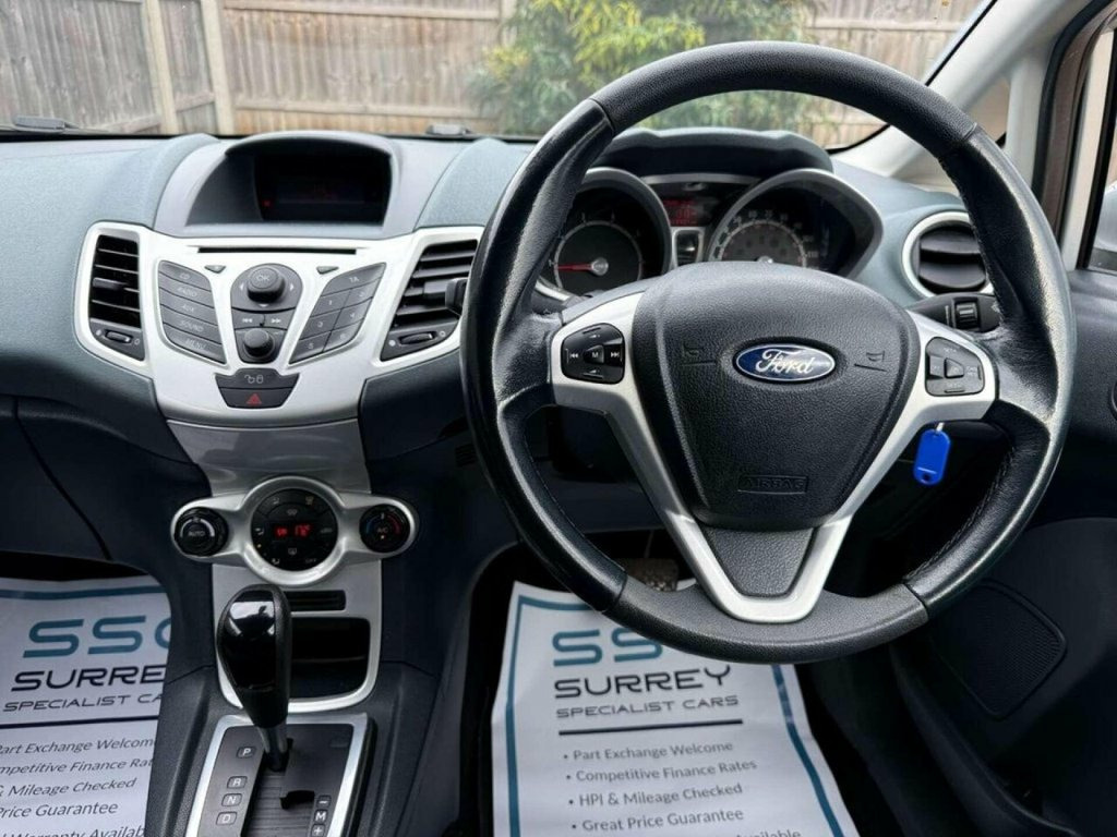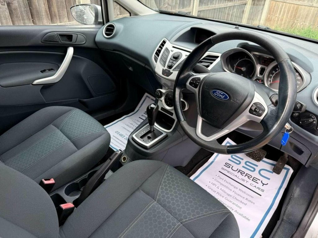 Introducing the Ford Fiesta 1.4 Fiesta Titanium Auto 3dr in sleek Silver. This stylish and compact car is the perfect blend of performance and sophistication, making it the ideal choice for those who want to stand out on the road. With its automatic transmission, driving the Ford Fiesta is a breeze. The Titanium trim level offers a range of premium features, ensuring a comfortable and enjoyable driving experience every time you hit the road. Whether you're navigating city streets or cruising on the motorway, the Ford Fiesta delivers a smooth and responsive ride. Plus, with its fuel-efficient 1.4 engine, you can enjoy impressive performance without breaking the bank. Don't miss out on the opportunity to own this stunning Ford Fiesta. Visit our showroom today and experience the thrill of driving this exceptional car for yourself. We are open 7 days a week, and prepare all of our cars to the highest standards. We have a Click & Collect option available, and can also arrange delivery on request. All cars are HPI clear and a full history report is provided with every car. We welcome any inspection and viewing is highly recommended. All cars are available with our AA warranty. Debit and credit card facilities are available and we offer competitive finance packages. If you have any questions or would like to view any of our cars give us a call or drop us a message on whatsapp 01483 363 144 to arrange an appointment with one of our team. We also offer full bespoke walkaround vide 16in - Alloy Wheels, 2 Front Speakers, ATC Air Conditioning, Airbag - Driver, Airbag - Driver Seat Head Thorax, Airbag - Front Passenger, Airbag - Front Side, Airbag - Knee Driver, Anti-Lock Brakes (ABS) and Emergency Bra, Auto Headlamps, Auto Wipers, Auto Wipers inc. Auto Headlamps, Body Colour Rear Spoiler, Bumpers - Body Colour, Centre Rear Seat Belt, City Pack, Cruise Control, Door Mirrors - Electrically - Operated a, Driver Seat Height Adjust, Electronic Brake Force Distribution (EBD, Front Fog Lights, Head Restraints Front/Rear, Heated Rear Screen, Immobiliser, Leather Gearknob, Leather Steering Wheel, Map Reading Lights/Aesthetic Lighting, Perimeter Alarm, Power - Assisted Steering, P