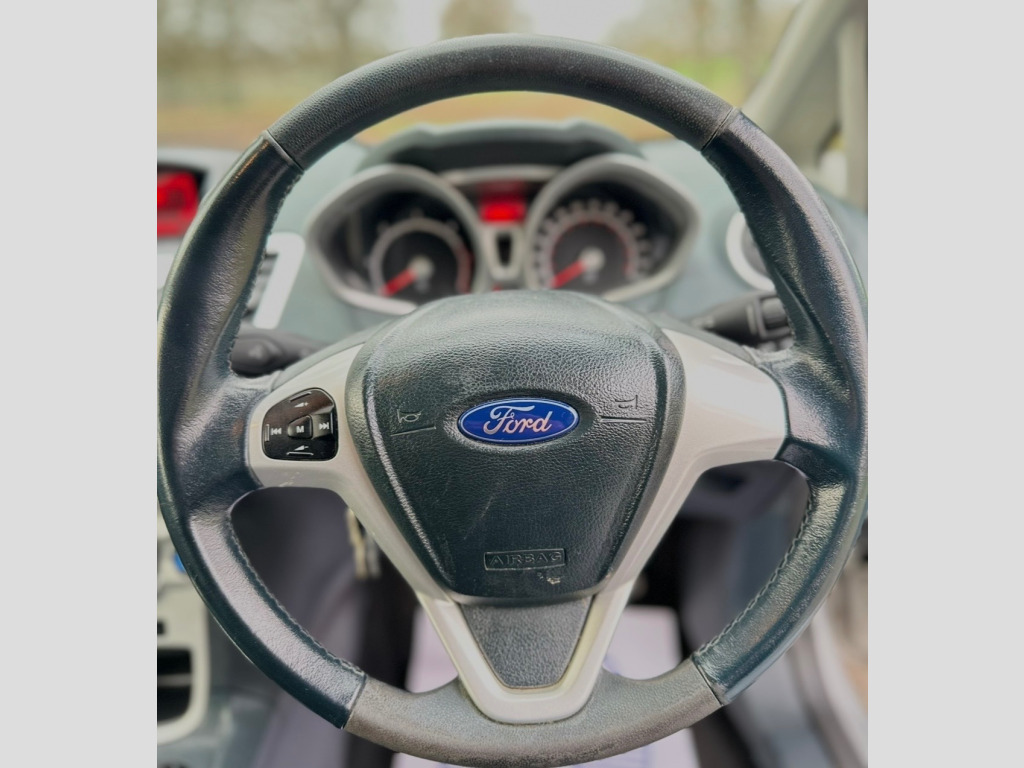 This 2011 Ford Fiesta 1.4 TDCi DPF Zetec Hatchback with a diesel engine and manual transmission has clocked 112,400 miles and comes with an MOT that expires on 21/12/2026. With 5 doors and 5 seats, this hatchback offers practicality and comfort. The 15in Alloy Wheels with Locking Wheel Nuts, Body Coloured Bumpers, and Body Coloured Rear Spoiler add to the car's stylish appearance, while the Electrically-Operated/Heated Door Mirrors with Integrated Side Indicators provide convenience and safety. Inside, the 60/40 Split Folding Back and Fixed Cushion seating arrangement gives you flexibility for carrying passengers and luggage. With low emissions of 107 g/km and 69 bhp, this Fiesta is a great choice for those looking for a reliable and economical car. in alloy wheels (195/50 tyres) with locking wheel nuts, body coloured bumpers, body coloured rear spoiler, electrically - operated/heated door mirrors with integrated side indicators, 60/40 split folding back and fixed cushion, centre console, electrically - operated front windows with one - touch lowering/closing on drivers side, four front speakers, heated windscreen, leather gear knob, leather trimmed 3 - spoke steering wheel, manual 4 - way driver seat adjust, manual air-conditioning, quickclear heated windscreen, radio/cd, mp3 compatible, multifunctional 2 - line display, aux connection, rake and reach adjustable steering column, remote audio controls, trip computer, two cup holders, upholstery cloth, accessory power socket (12v), anti-lock brakes, emergency brake assist (eba), centre high - mounted rear brake light, centre rear seat belt, drivers airbag, drivers knee airbag, electric power assisted steering (epas), electronic brake - force distribution (ebd), electronic stability programme (esp), front fog lights with chrome bezel rings, front side airbag (head and thorax), front and rear head restraints, isofix mounting brackets for child seat (rear outer seats only), immobiliser, passengers airbag, remote central locking with two flip keys, seat buckle pre-tensioners on front seat belts, tyre mobility kit
