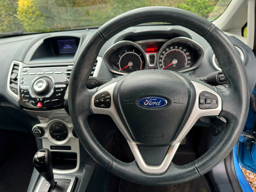 Into stock a highly sought after ford fiesta top of the range titanium Automatic,in excellent condition throughout freshly valeted with full service history and a recent full service with relevant paperwork, it has been provided with a brand new mot!This lovely fiesta Titanium has countless extras as listed Inc rear parking censors and electric folding wing mirrors and the updated Sony black stereo with Bluetooth!This fiesta titanium provides a quiet smooth really economical faultless drive ,is hpi clear,3mnths warranty,finance available and we provide a great after service,and finally why not look at our great company reviews for final peace of mind!All viewings by appointment only and you won't be disappointed when you do!1st to see will buy!Great price as confirmed by Auto trader! tallic paint, city pack, 16in 5 - spoke alloy wheels (195/45 tyres) with locking wheel nuts, 4 front and 2 rear speakers, 60/40 split back and fixed cushion, abs, emergency brake assist, atc air conditioning, accessory power socket (12v), auto wipers inc. auto headlamps, body coloured bumpers, centre console, centre rear seat belt, cruise control, cup holders, drivers airbag, drivers knee airbag, drivers lumbar support adjustment, electric power assisted steering (epas), electrically - operated front windows with one shot touch up/down, electrically - operated/heated/foldable door mirrors with integrated side indicators, electronic brake - force distribution (ebd), electronic stability programme (esp), floor mats - front and rear, velour, front fog lights with chrome bezel rings, front side airbag (head and thorax), front and rear head restraints, isofix mounting brackets for child seat (rear outer seats only), immobiliser, leather - wrapped gear knob, manual 4 - way driver seat adjust, passengers airbag, perimeter alarm, privacy glass, quickclear heated windscreen, radio/cd, mp3 compatible, multi - functional matrix display, aux / usb connection, rake and reach adjustable steering column, remote audio controls, remote central locking with two flip keys, seat buckle pre-tensioners on front seat belts, sony dab radio, bluetooth/voice control, third brake light, trip computer, tyre inflator kit, upholstery cloth