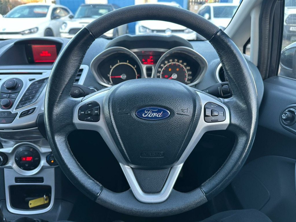 A STUNNING FORD FIESTA 1.4 TITANIUM 5DR IN BLACK, SERVICE HISTORY, CRUISE CONTROL, BLUETOOTH, KEYLESS START, ELECTRIC FOLDING MIRRORS, MULTIFUNCTIONAL STEERING WHEEL, REAR PARKING SENSORS, HPI CLEAR, LOOKS AND DRIVES SPOT ON, THIS VEHICLE COMES WITH A 3 MONTH EXTENDED WARRANTY COVERING ALL MECHANICAL AND ELECTRICAL PARTS. THIS NATION WIDE COVER INCLUDES PARTS AND LABOUR. Eye Green Cars is a reputable, family owned business with many years of experience in bringing the very best in used, premium cars. We will venture to find any vehicle to suit your budget and requirements. Our helpful staff is at hand to deliver first class customer service and make the purchase of your used car simple. We pride ourselves on our customer care and offer an exceptional personal service. Prior to sale, our qualified team will fully inspect vehicles to make sure they are road worthy. All vehicles are HPI/Finance clear. For peace of mind, 3-24 month warranties are available covering all electrical/mechanical issues and include a national repair network, parts, labour and VAT. MOT renewal can be discussed at time of sale. We are open to discussing part-exchange on our vehicles. Prices on the forecourt will be considered when agreeing a part-exchange valuation. Prices vary from online and forecourt. Finance is available through a range of countrywide brokers who provide you with competitive, affordable rates. Nationwide delivery can be requested at a cost of £1.50 per mile. We accept all major debit/credit cards. Please feel free to view our extensive range of vehicles on our website and call/email us to book an appointment and arrange a test drive. The address is Eye Green Industrial Estate, 1 Crowland Road, Peterborough, PE6 7TN and the website is www.eyegreencars.com. 16in - Alloy Wheels, ATC Air Conditioning, Auto Wipers, Auto Wipers inc. Auto Headlamps, Cruise Control, Perimeter Alarm, Premier Alarm, Privacy Glass, Quickclear Heated Windscreen, Radio/CD, MP3 Compatible with 2-Line Display and Aux In, Windows - Power Front One-Shot.