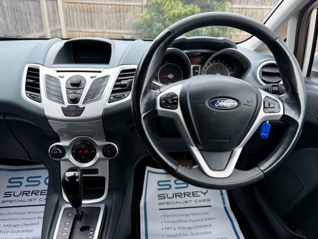 Surrey Specialist Cars are proud to present our lovely Ford Fiesta Titanium. This amazing car comes with Service History, finished in stunning metallic silver with grey contrast interior. The car will come with Long MOT so it will be ready to go. The 1.4L Petrol engine offers superb economy at over 50 MPG on combined cycle. Features Include Multifunction Steering Wheel, Trip Computer, Stereo Control, FM Radio, CD Player, Bluetooth Audio, USB Input, AUX Input, Air Conditioning, Heated Rear Screen, Automatic Gearbox, two Cup Holders, 12V Charging Socket, Electric Windows, 16 Inch Alloy Wheels and two Remote Control Keys to name a few. 16in - Alloy Wheels, 2 Front Speakers, ATC Air Conditioning, Airbag - Driver, Airbag - Driver Seat Head Thorax, Airbag - Front Passenger, Airbag - Front Side, Airbag - Knee Driver, Anti-Lock Brakes (ABS) and Emergency Bra, Auto Headlamps, Auto Wipers, Auto Wipers inc. Auto Headlamps, Body Colour Rear Spoiler, Bumpers - Body Colour, Centre Rear Seat Belt, City Pack, Cruise Control, Door Mirrors - Electrically - Operated a, Driver Seat Height Adjust, Electronic Brake Force Distribution (EBD, Front Fog Lights, Head Restraints Front/Rear, Heated Rear Screen, Immobiliser, Leather Gearknob, Leather Steering Wheel, Map Reading Lights/Aesthetic Lighting, Perimeter Alarm, Power - Assisted Steering, P