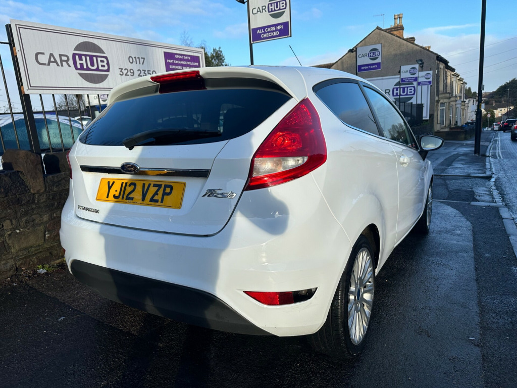 2012 12 FORD FIESTA TITANIUM 1388CC PETROL 3 DOOR HATCHBACK FINISHED IN FROZEN WHITE, THIS VEHICLE HAS COVERED JUST 100,000 MILES AND COMES WITH JUST 3 PREVIOUS OWNERS FROM NEW, 14 X SERVICE STAMPS (13 MAIN DEALER) MOT 8TH NOVEMBER 2026, ALLOY WHEELS, CLOTH INTREIOR, HEAD RESTS, POWER STEERING, ELECTRIC FRONT WINDOWS, SPOT LIGHTS, HEATED FRONT AND REAR SCREEN AND WILL BE OFFERED WITH 3 MONTHS ENGINE AND GEARBOX WARRANTY, PLEASE CALL FOR FULL DETAILS.