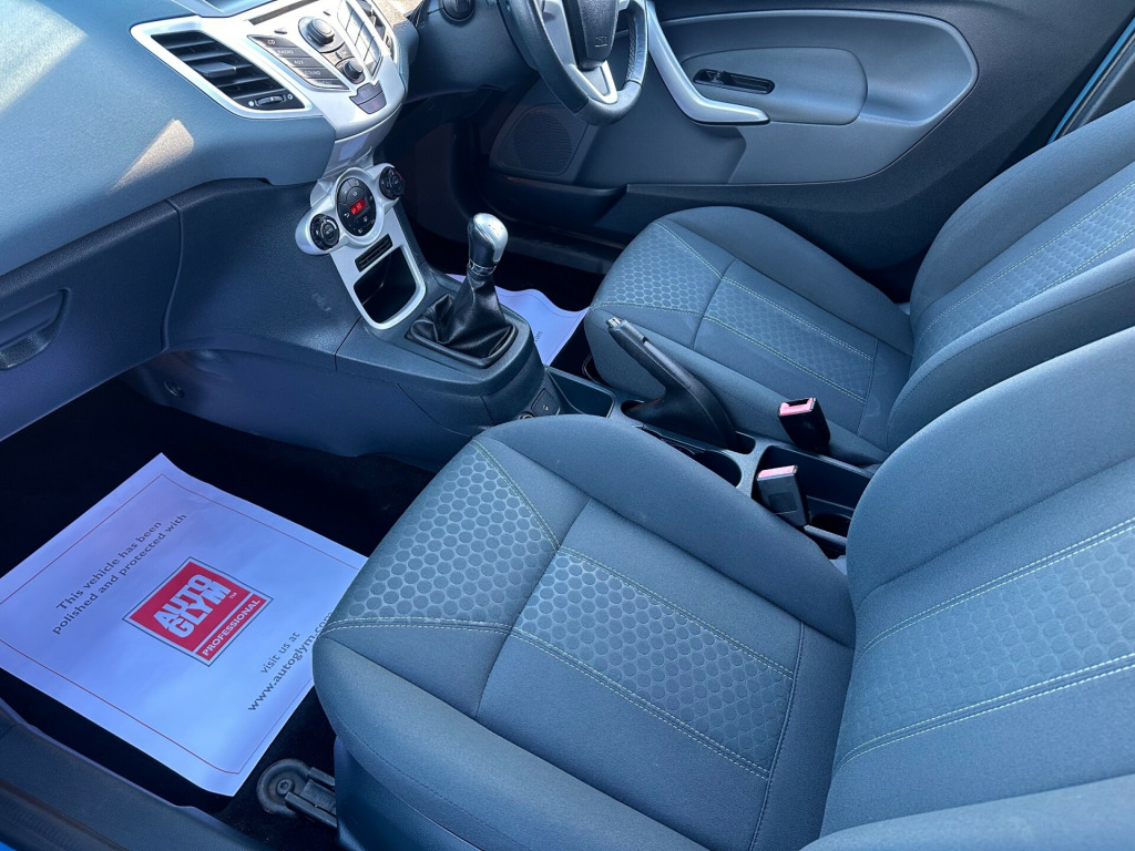 2010 10 FORD FIESTA TITANIUM 1388CC PETROL3 DOOR HATCHBACK FINISHED IN TONIC BLUE METALLIC, THIS VEHICLE HAS COVERED JUST 89,000 MILES AND COMES WITH JUST 2 PREVIOUS OWNERS FROM NEW, MOT 19TH JUNE 2026, ALLOY WHEELS, CLIMATE CONTROL, HEAD RESTS, METALLIC PAINT, CLOTH INTERIOR, ELECTRIC FRONT WINDOWS, SPOT LIGHT, HEATED REAR SCREEN AND WILL BE OFFERED WITH 3 MONTHS ENGINE AND GEARBOX WARRANTY, PLEASE CALL FOR FULL DETAILS.