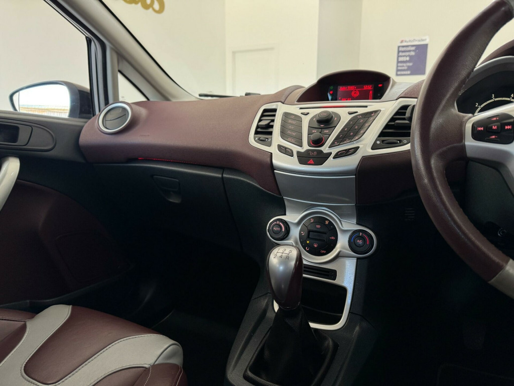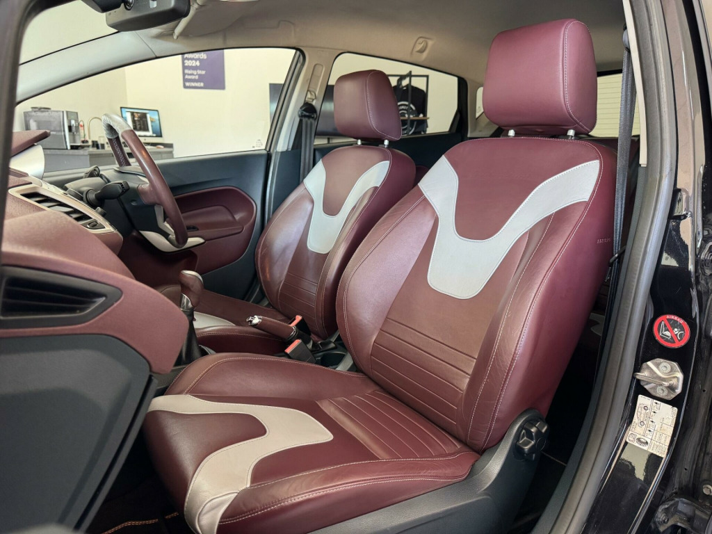 FORD FIESTA 1.4 Petrol 5 Door Titanium INDIVIDUAL, Rare Special Edition finished in Panther Black Metallic with Red & Silver Premium Leather Interior with contrast stitching. This stunningly created Fiesta comes complete with a Full Service History with services completed in 2010, 11, 12, 15, 17, 19, 22, 23, 24 and most recently in November 2025. Recent new Yokohama tyres all round also stands as a testament to how this Fiesta has been lovingly cared for. High specification on this Titanium INDIVIDUAL include Bluetooth Voice Control, USB Connection, Beautifully Stitched Premium Red/Silver Leather Seats Embossed with the 'INDIVIDUAL' Logo, Matching Leather Steering Wheel and Gear Knob, Climate Control Air Conditioning, Premium INDIVIDUAL Carpet Mats, Cruise Control, 16'' Alloy Wheels, Privacy Glass, Electric Folding Door Mirrors, and Perimeter Alarm.Other benefits of this car are Automatic Headlights, Rain Sensing Wipers, Auto Dip Interior Mirror, Heated Windscreen & Rear Screen, Radio/CD, On-Board Computer, Multi-Function Steering Wheel. tallic paint, spare wheel - 14in x 5.5 steel wheel, atc air conditioning, auto wipers inc. auto headlamps, blu. hands-free tech./vo. con./usb port, premier alarm, privacy glass, quickclear heated windscreen, second remote ignition key