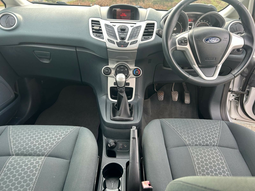 This ULEZ compliant 2010 Ford Fiesta 1.4 Zetec Hatchback with 5 doors and 5 seats has only 69925 miles on the clock and a valid MOT until 25/11/2026. Powered by a petrol engine, this manual vehicle emits 133 g/km of CO2 and has 94 bhp. Its 15in Alloy Wheels with Locking Wheel Nuts, Body Coloured Bumpers, and Body Coloured Rear Spoiler give it a sleek look, while Electrically-Operated/Heated Door Mirrors with Integrated Side Indicators provide convenience. The 60/40 Split Folding Back and Fixed Cushion add flexibility to the interior space. A practical and stylish choice for city driving, this Fiesta is a reliable and efficient hatchback. in alloy wheels (195/50 tyres) with locking wheel nuts, body coloured bumpers, body coloured rear spoiler, electrically - operated/heated door mirrors with integrated side indicators, 60/40 split folding back and fixed cushion, centre console, electrically - operated front windows with one - touch lowering/closing on drivers side, four front speakers, leather gear knob, leather trimmed 3 - spoke steering wheel, manual 4 - way driver seat adjust, manual air-conditioning, quickclear heated windscreen, radio/cd, mp3 compatible, multifunctional 2 - line display, aux connection, rake and reach adjustable steering column, remote audio controls, trip computer, two cup holders, upholstery cloth, accessory power socket (12v), anti-lock brakes, emergency brake assist (eba), centre high - mounted rear brake light, centre rear seat belt, drivers airbag, drivers knee airbag, electric power assisted steering (epas), electronic brake - force distribution (ebd), electronic stability programme (esp), front fog lights with chrome bezel rings, front side airbag (head and thorax), front and rear head restraints, isofix mounting brackets for child seat (rear outer seats only), immobiliser, passengers airbag, remote central locking with two keys, seat buckle pre-tensioners on front seat belts, traction assist, tyre mobility kit