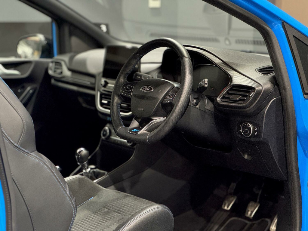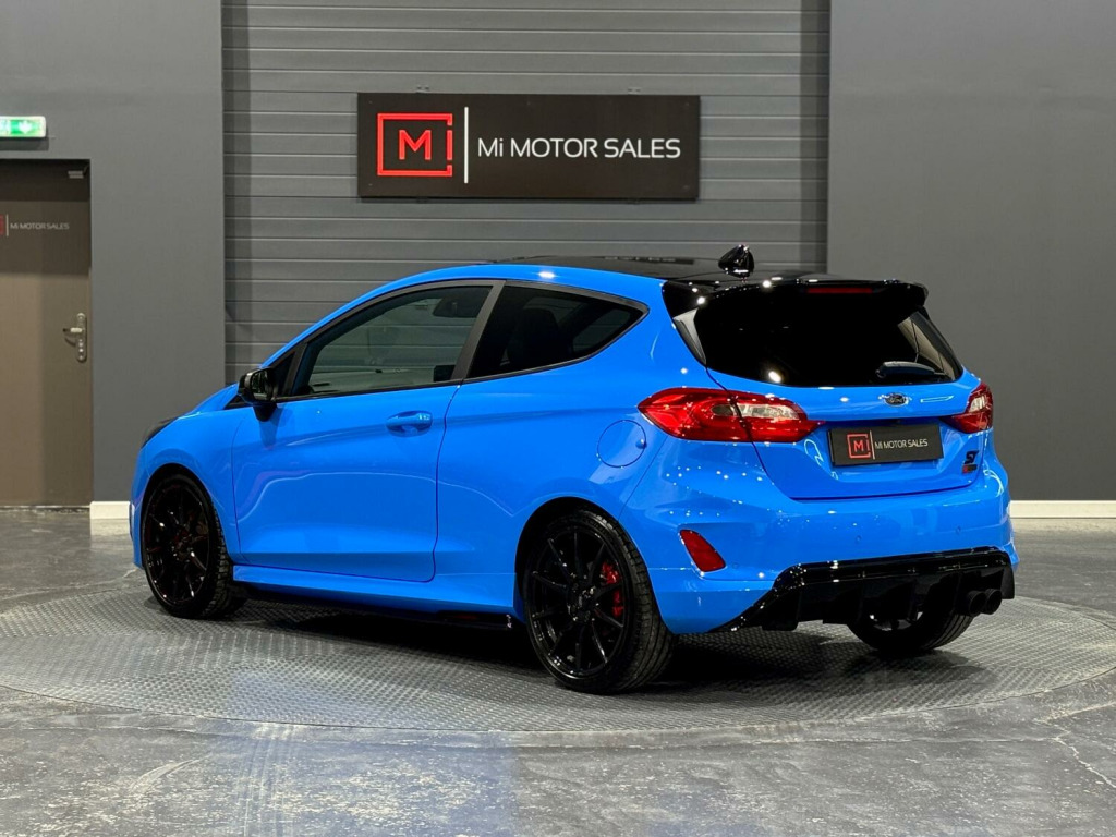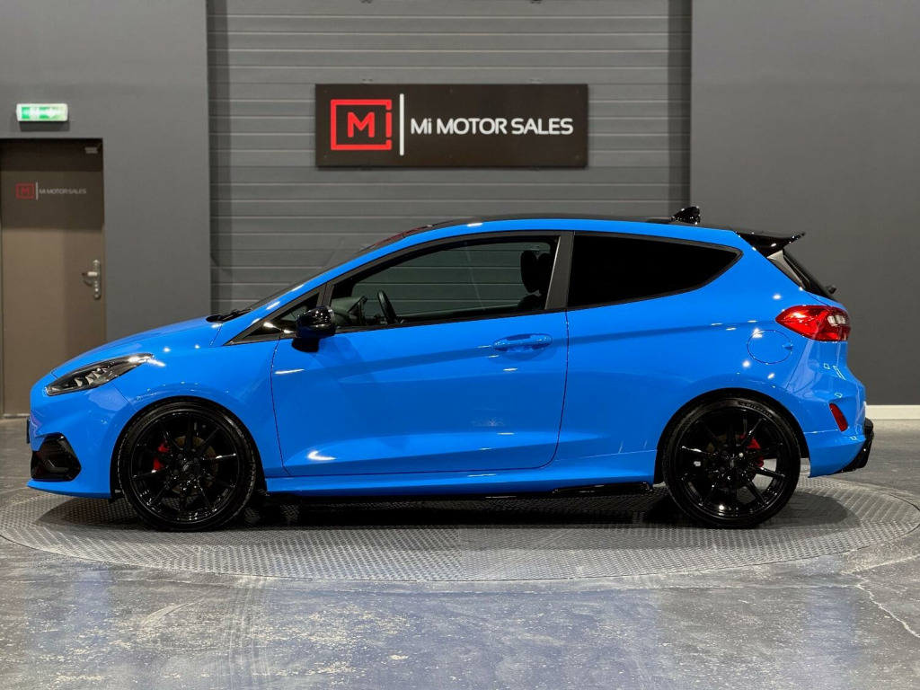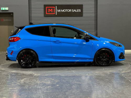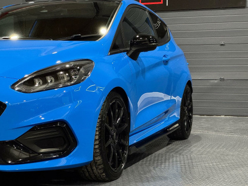 Mi Motor Sales is thrilled to offer this immaculate 1 of 300 Ford Fiesta 1.5T EcoBoost ST Edition Hatchback 3dr Petrol Manual Euro 6 finished in Azure Blue thats covered only 41,800 miles. This vehicle boasts full service history and as part of out preparation process it has received a fresh engine service, new OEM front discs and pads, a new A/C Re-gas and service and will have a new 12 month advisory free MOT for the new owner. In addition to this it has also benefited from a 3 stage machine polish and a 5 year Gtechniq Chrystal Serum ceramic coat applied. , This vehicle has been professionally modified by MJ Performance and has received the following upgrades - Revo Stage 2 software with SPS switch giving 3 map modes and an additional immobiliser system, GPF back Scorpion valved exhaust system with custom shadow black (Cerakote) twin exhaust tips and PowerFlex exhaust mounts, Revo air intake with Mountune air box and Revo panel filter, Mountune inter-cooler, Mountune cold air intake system, Mountune inlet elbow, Mountune hard pipe inter-cooler kit, Mountune Quick-Shift gear linkage, Iridium NGK LTR71X-II spark plugs, Paintmodz gloss black shark fin antenna, Maxton Designs rear diffuser and side skirts in gloss black, Upgraded piston bonnet struts and up-rated VUDU lower engine mount. , As this is the Ford EDITION model it comes with amazing features that include 18 Gloss black Ford Performance allow wheels with Michelin Pilot Sport tyres, Ford Performance coilovers, LED Headlights, LED front fog lights with cornering function, Gloss black roof with ST rear spoiler, Cruise control, Launch control, Climate control, Air conditioning, Rear parking sensors with reverse camera, Heated front windscreen, Heated steering wheel, ST Flat bottom multi-function steering wheel finished in black leather with blue stitching, Heated front Recaro seats finished in leather and suede, ST Performance pack, Selectable driving modes, 4.2 TFT instrument cluster, B&O (Bang and Olufsen) upgraded audio system, Ford Sync 3 entertainment system with navigation, Bluetooth connectivity with 2x USB ports and wireless phone charging. , Every effort has been made to ensure the above details of the car are correct however, please check with the physical vehicle. For a full list of features, click the specifications tab below. Mi Motor Sales is a long-standing family run business and is part of the Mi Conversions Group. All our vehicles undertake a 117-point PDI process and when required, a fresh engine service and Air Conditioning service. We can offer very competitive finance packages including 0% interest deals (subject to terms) from several finance partners and lenders. As standard we include a 3-month, third party warranty included in the final selling price but can extend to 12, 24 or 36 months. As we are only a small team, we do operate on a View by Appointment only basis from our Dorset premises (DT2 8BL). This allows us to give you our full attention so feel free to get touch.
