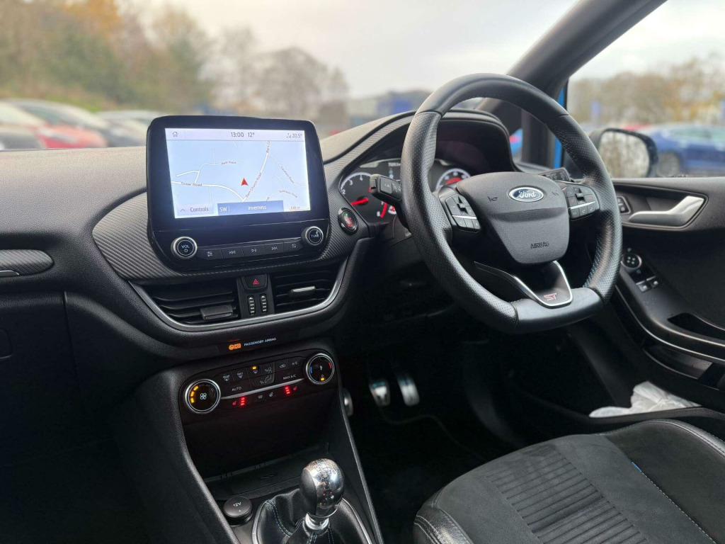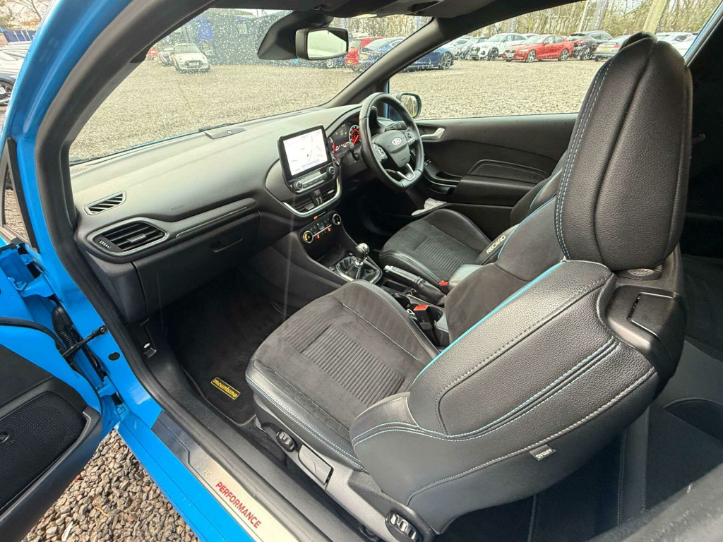 Introducing the Ford Fiesta 1.5 Fiesta ST Edition T 3dr – a dynamic blend of style, performance, and sophistication. This stunning vehicle, finished in an eye-catching Azura Blue, is more than just a car; it's an experience waiting to be had.With only two previous owners, this Ford Fiesta has been meticulously cared for, ensuring it remains in pristine condition. Its striking exterior is complemented by a luxurious interior featuring Acceleration Partial Leather in Charcoal Black, offering both comfort and elegance for every journey.Under the bonnet, the Ford Fiesta boasts a powerful 1.5-litre engine, delivering an exhilarating drive that will leave you craving more. Whether you're navigating city streets or cruising on the open road, this car promises a responsive and thrilling performance every time.Don't miss your chance to own this exceptional Ford Fiesta. It's not just a car; it's a statement. Visit us today to experience the perfect fusion of style, power, and sophistication. Your dream drive awaits.Service History19/03/24 - 44,747 - Tred-Brite Tyres Buckie26/02/25 - 65,.766 - JRMotors Elgin. 18in Alloy Wheels - Ford Performance - Magnetic - High Gloss Black Finish, 4.2in TFT Instrument Cluster Screen, Air Conditioning - Electronic Automatic Temperature Control - EATC, Airbags - Driver and Front Passenger, Airbags - Front Side Impact, Airbags - Front and Rear Side Curtain, Anti-Lock Braking System - ABS with Electronic Brake Force Distribution - EBD, Automatic Rain Sensing Wipers and Auto-Dimming Rear View Mirror, B and O PLAY In-Car Audio Premium Sound System with Ford SYNC 3 Navigation System and FordPass Connect - Embedded Modem, Black Belt Line Finisher, Black Centre Wheel Caps, Black Painted Roof and Mirror Caps, Body Colour Bumpers, Centre Console with Armrest and Illuminated Cupholders, Comfort Pack, Courtesy Light - Front Map Light and Rear - Overhead LED, Cruise Control, Direct Sport Mode Button on Steering Wheel, Door Handles - Body Colour, Door Lever - Chrome Finish, Door Mirrors - Electrically-Operated and Heated - Power-Foldable with Integrated Side Indicators - Body Colour Housings and Puddle Lights, Driver Seat with Manual Height Adjust, Drivers Seat Lumbar Support and Passenger Seat Lumbar Support, EPAS - Electric Power Assisted Steering, Electric Windows - Front, Electronic Stability Programme - ESP with Hill Start Assist, Emergency Brake Warning - Automatic Hazard Warning Lights, Exhaust - Dual Chrome Finish, Floor Mats - Front and Rear with Blue Stitching, Ford Easy-Fuel Capless Refuelling System, Ford KeyFree System, Ford Performance Coilover Suspension - Lowered 10mm Rear-15mm Front, FordPass Connect Embedded Modem, Front Bumper - Unique ST, Front Fog Lights with Cornering Function, Full LED Headlamps, Glovebox - Illuminated, Headliner - Sports Dark, Heated Front Seats and Heated Steering Wheel, IPS - Intelligent Protection System, LED Daytime Running Lights, Large Rear Spoiler - Black, Leather Handbrake Lever with Blue Stitching, Manual Passenger Seat Height Adjustment, MyKey, NCAP Pack, Overhead Console - Sunglasses Holder, Parking Distance Sensors - Rear, Quickclear Heated Windscreen, Rear Fog Lamps, Rear Lights - LED Night Signature, Rear Privacy Glass, Rear Seat - 60-40 Split Back and Cushion, Rear View Camera, Remote Central-Double Locking, ST Badge - Front and Rear, ST Flat Bottom Leather Steering Wheel with Blue Stitching, ST Performance Pack, ST Side Skirt Body Mouldings - Body Colour, Seat Belts with Blue Detailing, Seats - ISOFIX Mounting Provision for Child Seats, Selectable Drive Modes, Sports Pedals, Sports Tuned Suspension, Steering Column - Rake and Reach Adjustment, Tailgate Wash-Wipe, Thatcham Category 1 Alarm, Trip Computer, Tyre Pressure Monitoring System - TPMS, Tyre Repair Kit, USB Connection x2, Unique ST Gear Knob with Grey Stitched Gaiter Bag, Unique ST Scuff Plates, Warning Triangle Storage, Wireless Charging, Azura Blue, Acceleration Partial Leather - Charcoal Black.
