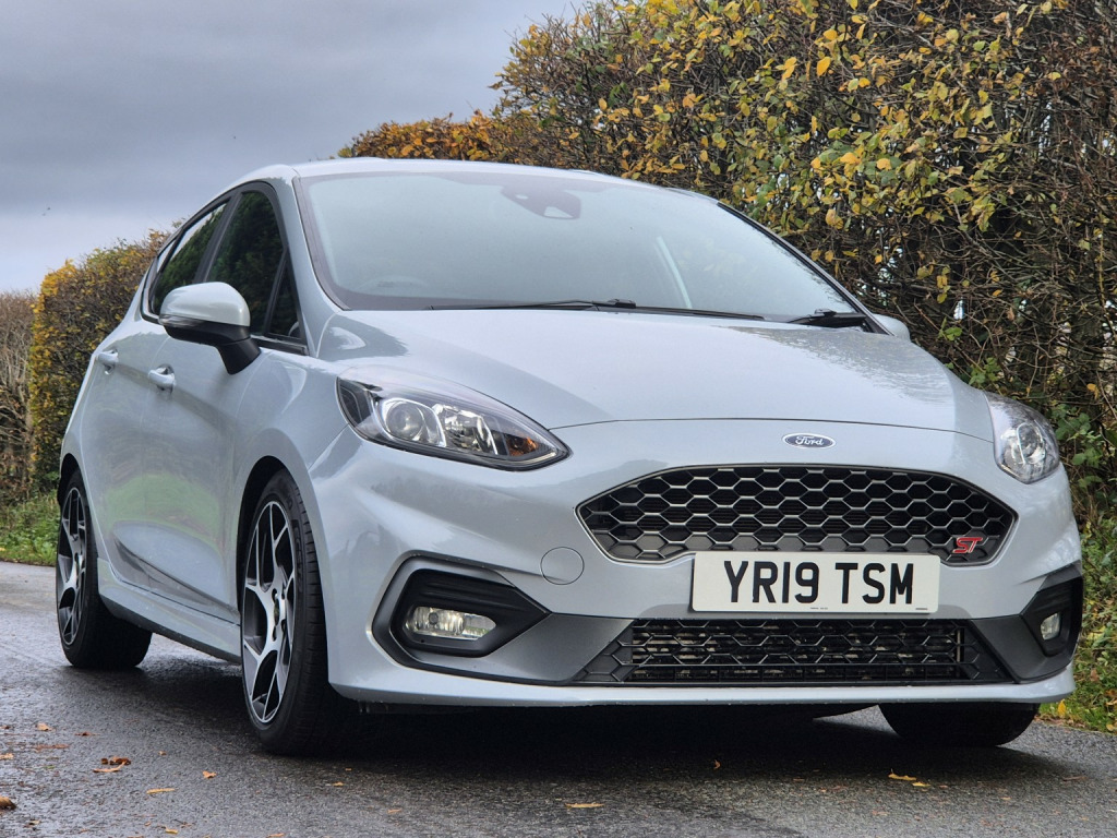 2019 Ford Fiesta ST-2 5 door in Silver Fox with 48,950 miles. , Specification highlights include launch control, SYNC 3 touchscreen with Apple CarPlay & Android Auto, ST sports seats, heated front seats, flat-bottom ST steering wheel, climate control, automatic headlights, heated windscreen, drive modes, lane-keep assist, Bluetooth, DAB digital radio and unmarked 17 ST alloy wheels. , Further features include LED daytime running lights, keyless start and ST exterior styling. , Supplied with full service history, 2 keys, and new MOT through to November 2026. Presented in very good condition throughout.