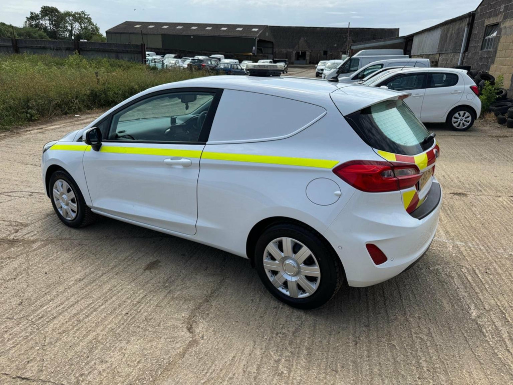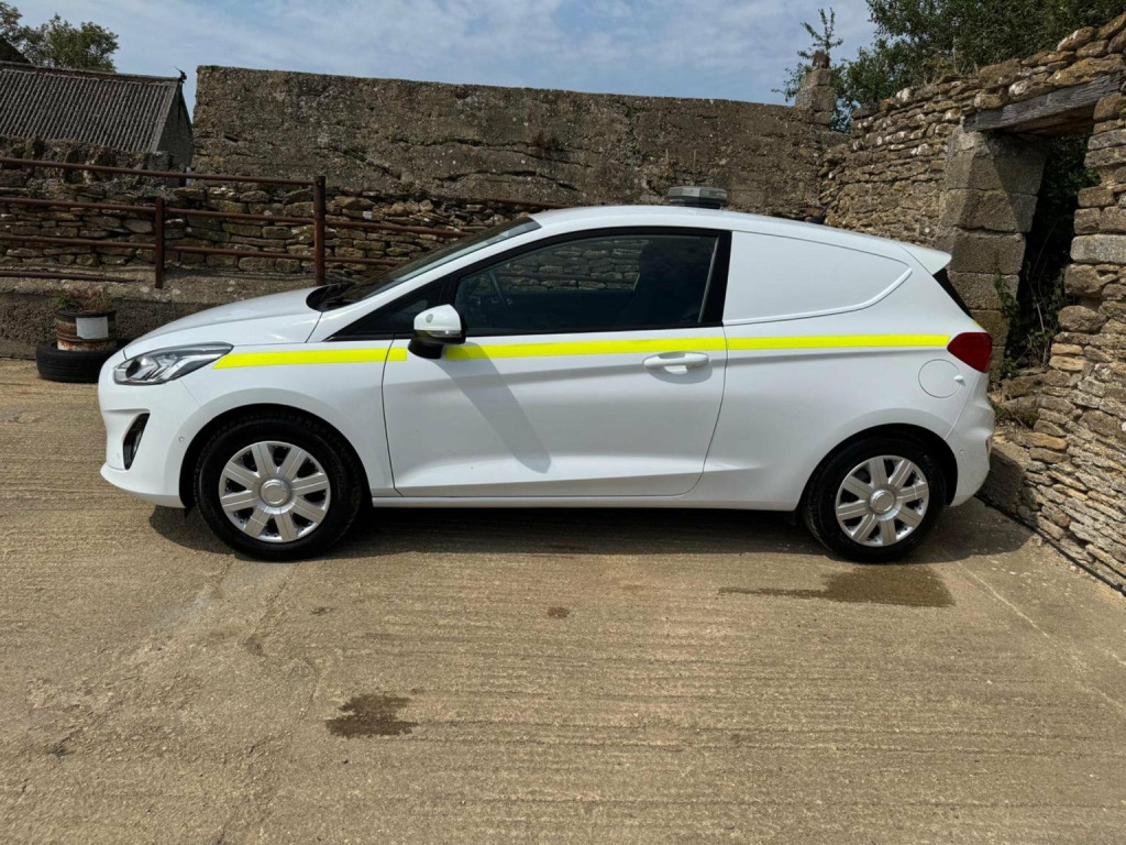 The Ford Fiesta Van 1.5 TDCi Euro 6 (s/s) 3dr is a compact, car-derived van designed for urban deliveries and light cargo. Its known for its fuel efficiency, compact size, and agile handling. The Euro 6 engine meets current emissions standards, and the s/s denotes stop/start technology, which further enhances fuel economy. , With a MOT valid until January 2026, this 2020 Ford Fiesta Van 1.5 TDCi Euro 6 is ready to get straight to work. As a TDCi variant of the Fiesta Van, this vehicle features a 1.5L diesel engine and complies with Euro 6 emission standards. The partial service history includes a service completed on January 29th 2025, with the mileage recorded at 77,274,03/07/2024 67503 SP ,16/11/2023 56667 SP, 2 Keys and a recent oil change sevice . The van comes equipped with automatic headlights, including automatic activation. The vehicle also features a radio with DAB, Bluetooth connectivity, and wireless phone charging. This Fiesta Van is a great choice for those looking for a practical and efficient vehicle. The payload weight of 524 kg shows how this vehicle is better than others in its class, offering substantial carrying capacity. The low CO2 emissions also indicate that this vehicle is better for the environment, reducing your carbon footprint while you drive.