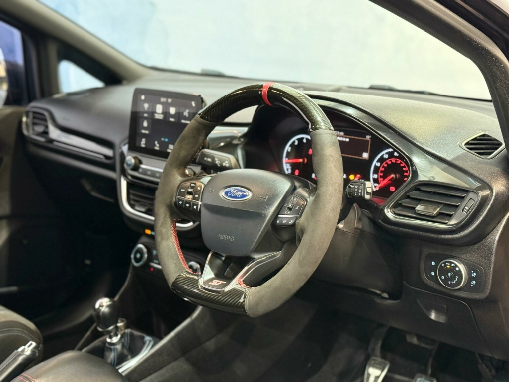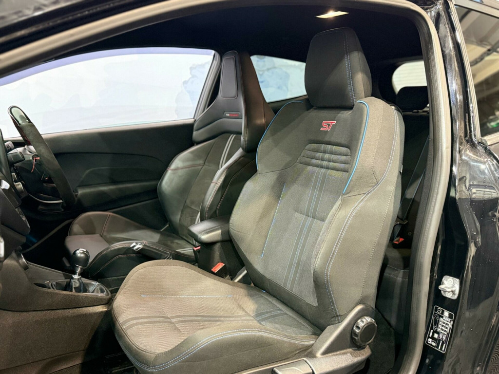 This 2018 Ford Fiesta ST-2 is a truly exciting example of a performance hatchback. Powered by a responsive 1.5L Petrol Engine, this Euro 6 compliant model offers an exhilarating driving experience. It boasts a striking set of 18in Alloy Wheels in a Magnetic with Machined Finish, enhancing its sporty aesthetic. For added comfort on longer journeys, the driver's seat includes lumbar support, and the vehicle is equipped with Full LED Headlamps, including automatic on-off functionality for convenience and improved visibility.The ST Performance Pack further elevates this Fiesta, underscoring its dynamic capabilities. This particular model stands out with its impressive acceleration, achieving 0-62mph in just 6.5 seconds, a testament to its potent engine and performance tuning. These highlights demonstrate how this Ford Fiesta ST-2 offers a superior blend of performance, style, and advanced features compared to other vehicles in its class. ll led headlamps, 18in alloy wheels - magnetic - machined finish, drivers seat lumbar support, st performance pack, 17in alloy wheels - matt black - machined finish, air conditioning - electronic automatic temperature control - eatc, airbags - driver and front passenger, airbags - front side impact, airbags - front and rear side curtain, anti-lock braking system - abs with electronic brake force distribution - ebd, b and o play in-car audio premium sound system, blue front seat belts, centre console with armrest and illuminated cupholders, courtesy light - front map light and rear - overhead led, cruise control, door handles - body colour, door lever - chrome finish, door mirrors - heated - electric - integrated side indicators - body coloured, epas - electric power assisted steering, emergency brake warning - automatic hazard warning lights, enhanced electronic stability control - esc with traction control - emergency brake assist - eba - hill start assist - hsa and trailer sway control, floor mats - front and rear with blue stitching, ford easy-fuel capless refuelling system, front bumper - unique st-line, front door threshold plates - st, front seat - drivers manual height and fore-aft adjustment, gearshift knob - leather-trimmed with aluminium insert, glovebox - illuminated, headlights - automatic on-off, headlights - halogen reflector with grey bezel and led daytime running lights, headliner - black woven, headliner - woven-dark, heated driver and passenger seats, ips - intelligent protection system, keyless start with ford power start button, large rear spoiler - body colour with centre high mounted stop light, leather-trimmed handbrake, mykey, ncap pack, overhead console - sunglasses holder, quickclear heated windscreen, rear bumper - unique st-line, rear fog lamps, rear lights - led night signature, rear privacy glass, rear seat - 60-40 split back and cushion, remote central locking and engine immobiliser, st front upper grille insert - high gloss black mesh, st-line front fog lamps with cornering lights, st-line side skirt body mouldings - body colour, seats - front recaro sports, seats - isofix mounting provision for child seats, selectable drive modes - normal - sport - track, sports pedals, steering column - rake and reach adjustment, steering wheel - 3-spoke - leather-trimmed flat bottomed with red stitching, suspension - st sports, tailgate wash-wipe, thatcham category 1 alarm, trip computer, tyre pressure monitoring system - tpms, tyre repair kit, warning triangle storage, windows - electrically operated front with one touch lowering-closing on drivers side, wipers - standard with 6 speed interval settings