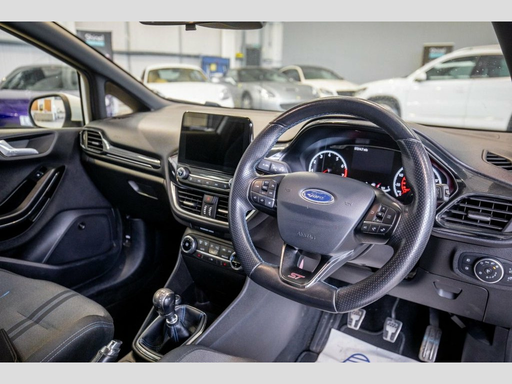 This 2018 Ford Fiesta ST-2 offers exceptional value with its MOT valid until May 2026, providing peace of mind for the coming years. This sporty hatchback is equipped with a lively 1.5L petrol engine, meeting Euro 6 emissions standards. Inside, you'll find comfort and convenience with Electronic Automatic Temperature Control air conditioning and heated driver and passenger seats. The NCAP Pack includes automatic headlights, enhancing safety and ease of use. For an immersive audio experience, this Fiesta features the B and O PLAY premium sound system. The performance of this Fiesta ST-2 is truly impressive, boasting an acceleration of 0-60mph in just 6.5 seconds. This quick acceleration demonstrates how this vehicle offers a more dynamic driving experience compared to many other cars in its class. Combined with its sporty ST-2 trim and desirable features, this Ford Fiesta is a compelling choice for those seeking both performance and everyday practicality. Frozen White, ST Performance Pack, 17in Alloy Wheels - Matt Black - Machine, Air Conditioning - Electronic Automatic , Airbags - Driver and Front Passenger, Airbags - Front Side Impact, Airbags - Front and Rear Side Curtain, Anti-Lock Braking System - ABS with Elec, B and O PLAY In-Car Audio Premium Sound , Blue Front Seat Belts, Centre Console with Armrest and Illumina, Courtesy Light - Front Map Light and Rea, Cruise Control, Door Handles - Body Colour, Door Lever - Chrome Finish, Door Mirrors - Heated - Electric - Integ, EPAS - Electric Power Assisted Steering, Emergency Brake Warning - Automatic Haza, Enhanced Electronic Stability Control - , Floor Mats - Front and Rear with Blue St, For