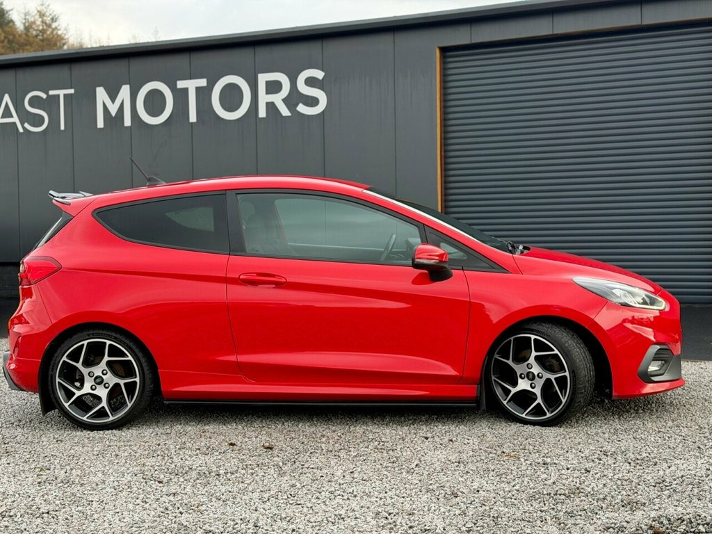 2019 (19) FORD FIESTA 1.5T ECOBOOST ST-2 West Coast Motors are proud to be supplying this stunning 2019 (19) Ford Fiesta 1.5T EcoBoost ST-2, finished in Red with ST-embossed heated Recaro sports seats. This car has covered just 39,000 miles from new with good service history. Clearly cherished, being in great condition inside and out and previously supplied by ourselves! . Mechanically spot-on with a Stage 1 remap for sharper throttle response and extra punch, also fitted with a ramair induction kit and milltek cat back exhaust system. Drives faultlessly with tight steering, smooth gear changes and great power delivery. Factory spec includes Apple CarPlay, B&O premium sound system, sat nav, cruise control, keyless start, auto climate control, launch control, selectable drive modes, ST styling pack, and more. Looks fantastic, sounds brilliant, and delivers the ultimate daily-driver thrill. An incredibly well looked-after, tastefully modified ST-2. Get in touch to reserve your new car today! 3 months Warranty as standard Part exchange welcome Low rate finance available Debit/credit cards accepted AA breakdown cover included 01294 443333 www.wcmotors.co.uk 17in Alloy Wheels - ST 5 Spoke - Matt Bl, Air Conditioning - Manual, Airbags - Driver and Front Passenger, Airbags - Front Side Impact, Airbags - Front and Rear Side Curtain, Anti-Lock Braking System - ABS with Elec, B and O PLAY In-Car Audio Premium Sound , Black Belt Line Finisher, Centre Console with Armrest and Illumina, Courtesy Light - Ambient LED Courtesy Li, Courtesy Light - Front Map Light and Rea, Cruise Control, Door Handles - Body Colour, Door Lever - Chrome Finish, Door Mirrors - Heated - Electric - Integ, EPAS - Electric Power Assisted Steering, Electric Windows - Front, Emergency Brake Warning - Automatic Haza, Enhanced Electronic Stability Control - , Floor Mats - Front and R