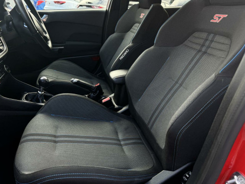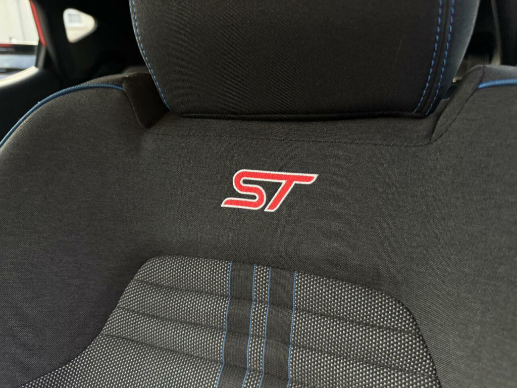 . 17in Alloy Wheels - ST 5 Spoke - Matt Black - Machined Finish, Air Conditioning - Manual, Airbags - Driver and Front Passenger, Airbags - Front and Rear Side Curtain, Airbags - Front Side Impact, Anti-Lock Braking System - ABS with Electronic Brake Force Distribution - EBD, Automatic Rain Sensing Wipers and Auto-Dimming Rear View Mirror, Black Interior Headlining, Body Colour Bumpers, Centre Console with Armrest and Illuminated Cupholders, Courtesy Light - Front Map Light and Rear - Overhead LED, Cruise Control, Door Handles - Body Colour, Door Lever - Chrome Finish, Door Mirrors - Electrically-Operated and Heated - Power-Foldable with Integrated Side Indicators - Body Colour Housings and Puddle Lights, Driver Seat with Manual Height Adjust, Electric Windows - Front, Electric Windows - Rear, Electronic Stability Programme - ESP with Hill Start Assist, Emergency Brake Warning - Automatic Hazard Warning Lights, EPAS - Electric Power Assisted Steering, Exhaust - Dual Chrome Finish, Floor Mats - Front and Rear with Blue Stitching, Ford Easy-Fuel Capless Refuelling System, Ford Navigation System with Ford SYNC 3 - Apple CarPlay and Android Auto and FordPass Connect - Embedded Modem, FordPass Connect Embedded Modem, Glovebox - Illuminated, IPS - Intelligent Protection System, Keyless Start with Ford Power Start Button, Large Body Coloured Rear Spoiler, Leather Handbrake Lever with Blue Stitching, LED Projector Headlights with Daytime Running Lights, MyKey, NCAP Pack, Overhead Console - Sunglasses Holder, Parking Distance Sensors - Rear, Quickclear Heated Windscreen, Rear Bumper - Unique ST with Diffuser, Rear Fog Lamps, Rear Lights - LED Night Signature, Rear Privacy Glass, Rear Seat - 60-40 Split Back and Cushion, Remote Central-Double Locking, Seat Belts with Blue Detailing, Seats - ISOFIX Mounting Provision for Child Seats, Selectable Drive Modes, Sports Pedals, Sports Tuned Suspension, ST Badge - Front and Rear, ST Flat Bottom Leather Steering Wheel with Blue Stitching, ST Side Skirt Body Mouldings - Body Colour, ST-Line Front Fog Lamps with Cornering Lights, Steering Column - Rake and Reach Adjustment, Tailgate Wash-Wipe, Thatcham Category 1 Alarm, Trip Computer, Tyre Pressure Monitoring System - TPMS, Tyre Repair Kit, Unique ST Front Grille, Unique ST Gear Knob with Blue Stitched Gaiter Bag, Unique ST Scuff Plates, USB Connection x2, Warning Triangle Storage, ST Performance Pack.