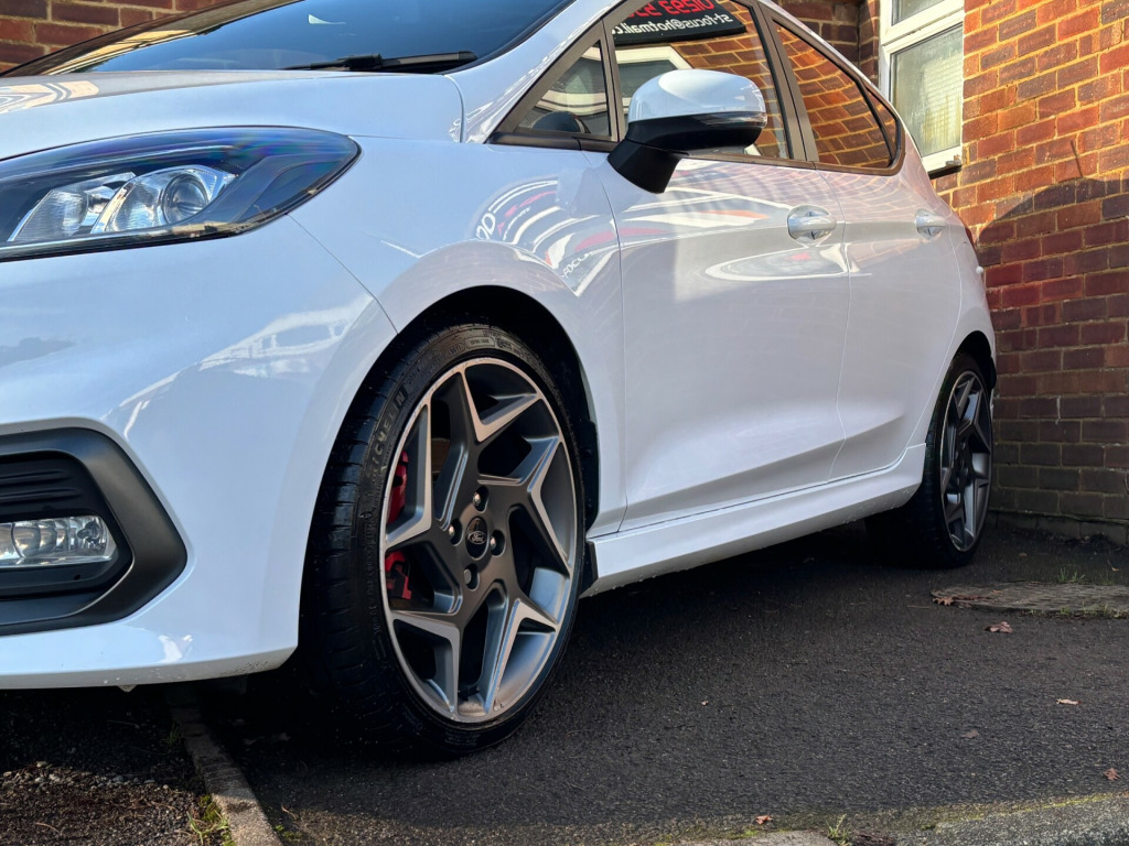 We are pleased to offer this stunning Frozen white Fiesta ST-3, this car has been meticulously loved coming with FULL FORD SERVICE HISTORY since brand new.It is comes with a fantastic factory spec including:*RECARO HALF LEATHER HALF ALCANTARA HEATED SPORT SEATS.*PANORAMIC ROOF.*HEATED STEERING WHEEL.*REVERSE PARKING CAMERA.*REVERSE PARKING SENSORS.*SYNC 3 MEDIA WITH APPLE CAR PLAY & ANDROID AUTO.*CRUISE CONTROL.*SATELLITE NAVIGATION.*CLIMATE CONTROL.*UPGRADED GENUINE FORD 18'' DIAMOND CUT ALLOY WHEELS.*MUCH MORE....We can offer finance on this vehicle, and we also accept part exchange if required... Please be aware if a third party finance company is used there will be a small admin fee applied.WWW.ST-FOCUS.COM 01293 536444EMAIL: ST-FOCUSHOTMAIL.COM'THE ORIGINAL FORD PERFORMANCE SPECIALISTS!' in alloy wheels - st 5 spoke - magnetic - machined finish, black belt line finisher, door handles - body colour, door mirrors - electrically-operated and heated - power-foldable with integrated side indicators - body colour housings and puddle lights, electric windows - front, electric windows - rear, front bumper - unique st, front door threshold plates - ford performance st, front upper grille - unique st, large rear spoiler - body colour with centre high mounted stop light, quickclear heated windscreen, rear bumper - unique st with sport diffuser, rear privacy glass, red brake calipers, st badge - front and rear, st side skirt body mouldings - body colour, tyre repair kit, 4.2in tft instrument cluster screen, ford navigation system with ford sync 3 - apple carplay and android auto and fordpass connect - embedded modem, air conditioning - electronic automatic temperature control - eatc, automatic rain sensing wipers and auto-dimming rear view mirror, centre console with armrest and illuminated cupholders, comfort pack, courtesy light - ambient led courtesy lighting, courtesy light - front map light and rear - overhead led, door lever - chrome finish, drivers seat lumbar support and passenger seat lumbar support, floor mats - front and rear with grey stitching, front seat - drivers manual height and fore-aft adjustment, gearshift knob - leather-trimmed with aluminium insert, glovebox - illuminated, headliner - black woven, heated front seats and heated steering wheel, leather-trimmed handbrake, mykey, overhead console - sunglasses holder, rear fog lamps, rear seat - 60-40 split back and cushion, seats - front recaro sports, sports pedals, steering column - rake and reach adjustment, steering wheel - 3-spoke flat bottom - leather trimmed, warning triangle storage, airbags - driver and front passenger, airbags - front side impact, airbags - front and rear side curtain, anti-lock braking system - abs with electronic brake force distribution - ebd, driver assistance pack, emergency brake warning - automatic hazard warning lights, enhanced electronic stability control - esc with traction control - emergency brake assist - eba - hill start assist - hsa and trailer sway control, ford easy-fuel capless refuelling system, ford keyfree system, ips - intelligent protection system, ncap pack, remote central-double locking, seats - isofix mounting provision for child seats, tailgate wash-wipe, thatcham category 1 alarm, cruise control, driver alert, epas - electric power assisted steering, rear view camera, selectable drive modes - normal - sport - track, suspension - st sports, tsr - traffic sign recognition, trip computer, tyre pressure monitoring system - tpms, halogen projector headlights with led daytime running lights and grey bezel, headlights - automatic on-off and highbeam, rear lights - led night signature, st-line front fog lamps with cornering lights