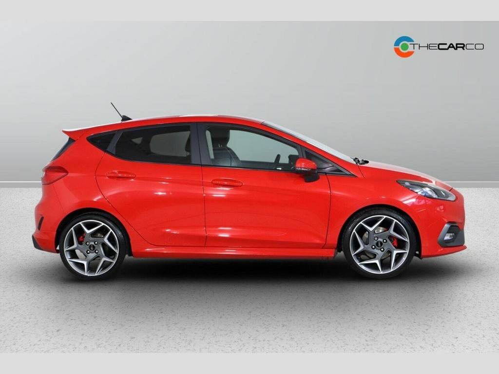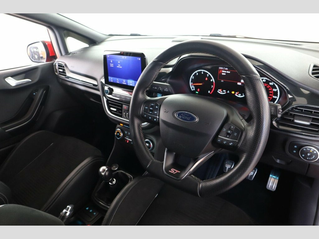 This 2019 Ford Fiesta ST-3 boasts exceptionally low mileage for its age, having covered just 43,901 miles. This sporty hatchback is equipped with a powerful 1.5L petrol engine, meeting Euro 6 emissions standards. It comes with a desirable Driver Assistance Pack, featuring adaptive cruise control for more relaxed journeys, and a NCAP Pack that includes automatic headlights. Comfort is enhanced by heated front seats and a heated steering wheel, perfect for colder mornings, while the Ford KeyFree System allows for convenient keyless entry. Parking is made easier with a rear view camera and rear parking sensors. The performance of this Fiesta ST-3 is truly impressive, with a rapid 0-62mph acceleration time of just 6.5 seconds, demonstrating its dynamic capabilities. This acceleration figure indicates a superior driving experience compared to many other vehicles in its class. The combination of its sporty design, advanced features, and low mileage makes this 2019 Ford Fiesta ST-3 a compelling choice for those seeking both performance and practicality. 18in Alloy Wheels - Magnetic - Machined , 4.2in TFT Instrument Cluster Screen, Air Conditioning - Electronic Automatic , Airbags - Driver and Front Passenger, Airbags - Front Side Impact, Airbags - Front and Rear Side Curtain, Anti-Lock Braking System - ABS with Elec, Automatic Rain Sensing Wipers and Auto-D, Centre Console with Two Cupholders and 1, Courtesy Light - Front Map Light and Rea, Cruise Control, Door Handles - Body Colour, Door Lever - Chrome Finish, Door Mirrors - Electrically-Operated and, Driver Alert, Driver Assistance Pack, Driver and Passenger Seat Height and Lum, Drivers Seat Lumbar Support, EPAS - Electric Power Assisted Steering, Electric Windows - Rear, Emergency Brake