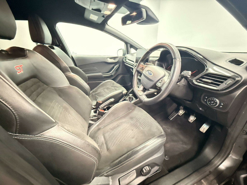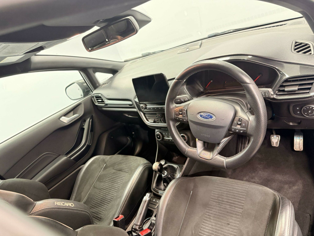 This 2018 Ford Fiesta ST-3 is a performance focused hatchback offering an exhilarating driving experience. Powered by a 1.5 litre petrol engine, this Euro 6 compliant model delivers impressive acceleration, reaching 0-62mph in just 6.5 seconds. It comes equipped with a Ford Navigation System featuring Ford SYNC 3, offering seamless integration with Apple CarPlay and Android Auto for your smartphone. Convenience is enhanced by automatic on-off headlights, a rear view camera for easier parking, and the Ford KeyFree System for keyless entry.Further enhancing its appeal, this Fiesta ST-3 includes a Driver Assistance Pack with adaptive cruise control, making longer journeys more relaxed. These features, combined with its potent engine and dynamic handling, position this Ford Fiesta ST-3 as a standout choice in its class, offering a superior blend of performance, technology, and everyday usability.. 18in Alloy Wheels - Magnetic - Machined Finish, 4.2in TFT Instrument Cluster Screen, Air Conditioning - Electronic Automatic Temperature Control - EATC, Airbags - Driver and Front Passenger, Airbags - Front Side Impact, Airbags - Front and Rear Side Curtain, Anti-Lock Braking System - ABS with Electronic Brake Force Distribution - EBD, Automatic Rain Sensing Wipers and Auto-Dimming Rear View Mirror, Centre Console with Two Cupholders and 12V Power Point, Courtesy Light - Front Map Light and Rear - Overhead LED, Cruise Control, Door Handles - Body Colour, Door Lever - Chrome Finish, Door Mirrors - Electrically-Operated and Heated - Power-Foldable with Integrated Side Indicators - Body Colour Housings and Puddle Lights, Driver Alert, Driver Assistance Pack, Driver and Passenger Seat Height and Lumbar Support, Drivers Seat Lumbar Support, EPAS - Electric Power Assisted Steering, Electric Windows - Rear, Emergency Brake Warning - Automatic Hazard Warning Lights, Enhanced Electronic Stability Control - ESC with Traction Control - Emergency Brake Assist - EBA - Hill Start Assist - HSA and Trailer Sway Control, Floor Mats - Front and Rear with Grey Stitching, Ford Easy-Fuel Capless Refuelling System, Ford KeyFree System, Ford Navigation System with Ford SYNC 3 - Apple CarPlay and Android Auto, Front Bumper - Unique ST-Line, Front Door Threshold Plates - ST, Gearshift Knob - Leather-Trimmed with Aluminium Insert, Glovebox - Illuminated, Headlights - Automatic High Beam Assist, Headlights - Automatic On-Off, Headlights - Halogen Reflector with Grey Bezel and LED Daytime Running Lights, Headliner - Black Woven, Headliner - Woven-Dark, Heated Front Seats and Heated Steering Wheel, IPS - Intelligent Protection System, Large Rear Spoiler - Body Colour with Centre High Mounted Stop Light, Leather-Trimmed Handbrake, MyKey, NCAP Pack, Overhead Console - Sunglasses Holder, Quickclear Heated Windscreen, Rear Bumper - Unique ST-Line, Rear Fog Lamps, Rear Lights - LED Night Signature, Rear Privacy Glass, Rear Seat - 60-40 Split Back and Cushion, Rear View Camera, Red Brake Calipers, Remote Central Locking and Engine Immobiliser, ST Front Upper Grille Insert - High Gloss Black Mesh, ST-Line Front Fog Lamps with Cornering Lights, ST-Line Side Skirt Body Mouldings - Body Colour, Seats - Front Recaro Sports, Seats - ISOFIX Mounting Provision for Child Seats, Seats - Passenger Lumbar Support, Selectable Drive Modes - Normal - Sport - Track, Sports Pedals, Steering Column - Rake and Reach Adjustment, Steering Wheel - 3-Spoke - Leather-Trimmed Flat Bottomed with Red Stitching, Suspension - ST Sports, TSR - Traffic Sign Recognition, Tailgate Wash-Wipe, Thatcham Category 1 Alarm, Trip Computer, Tyre Pressure Monitoring System - TPMS, Tyre Repair Kit, Warning Triangle Storage, Windows - Electrically Operated Front and Rear with One Touch Lowering-Closing on Drivers Side and Global Closing, Wipers - Standard with 6 Speed Interval Settings.