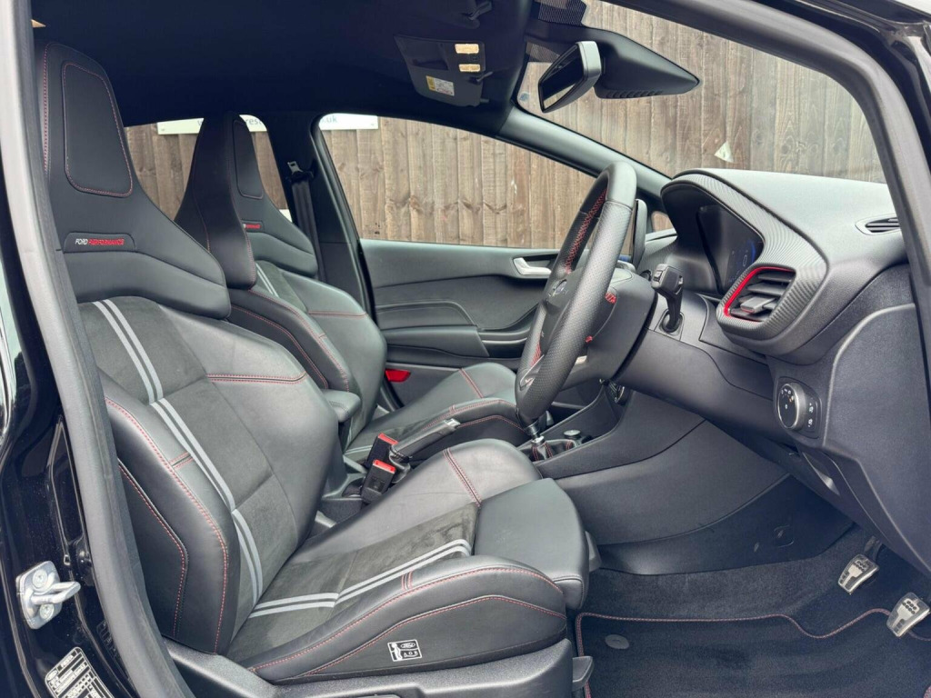 Please call Ryan on 01296 435568 for more details. Here we have a factory original & very low mileage 2023 (23) Ford Fiesta 1.5T EcoBoost ST-3 in stock. ULEZ compliant & comes with road tax that costs just £195 per year while averaging 42.2 MPG. Recently serviced at Buckingham Ford in May 2025, it will also be supplied with a FREE 6 month warranty & breakdown cover. DETAILS- Finished in Agate Black with Black Half Leather/Suede Upholstery & recently refurbished Grey 18 Alloy Wheels. Owned by a friend of ours whos just bought a BMW M2, hes asked us to sell the car on his behalf. It comes with 2 remote keys & drives superbly with its 6 speed manual gearbox & incredibly fun 197 BHP petrol engine. SPEC- This ST3 model comes with a Touch Screen Interface, Sat Nav, Apple Car Play/Android Auto, Heated Steering Wheel, Heated Front Seats, DAB Radio, Rear Parking Camera, Bluetooth with Voice Control, Rear Parking Sensors, Auto Air Con, Cruise Control, Auto Head Lights, Ford Performance Seat Logos, Quick Clear Front & Rear Screen, Rear Tinted Windows, Lane Assist & ISOFIX. HISTORY- Last serviced at 2,220 miles in May 2025 by Buckingham Ford which is our local Ford main dealer. It included a new oil filter, oil, carbon filter & spark plugs which cost 416.12. The car has 4 matching Michelin tyres, all at 6mm of tread. MILES- This car has covered 4,618 miles from new. It was first registered on 29th April 2023. CONDITION- The car is in near like new condition & was recently ceramic coated as well. It even still has the new car smell! A detailed walk around video can be found on our Youtube channel. ABOUT US- TMR Prestige Services Ltd are a father & son family run business based in Stoke Mandeville, Aylesbury. 2025 is our 11th year of trading in low mileage, high specification cars. We operate by appointment only & are open 7 days a week. We pride ourselves on giving a five star service. Please take a moment to view our reviews on Auto Trader and Google – we are very proud of them. Part Exchange, Extended Warranties & Nationwide Delivery Available (fees apply).