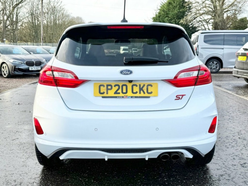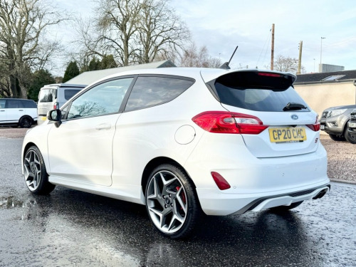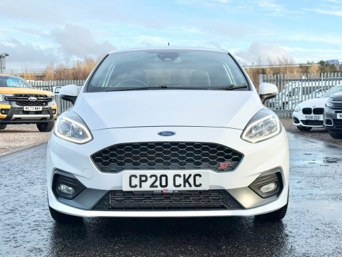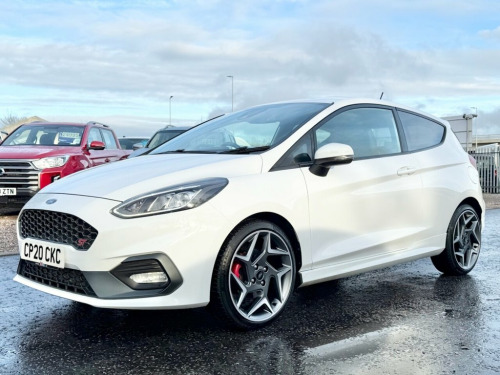 The 2020 Ford Fiesta ST-3 is one of the most exciting hot hatches on the road — sharp, lightweight, and powered by a strong 1.5-litre EcoBoost turbo engine producing 200 bhp. Paired with a precise 6-speed manual gearbox, it delivers superb performance, agile handling and an engaging drive that the Fiesta ST is renowned for. Being the ST-3, this is the top specification model, offering a premium interior and a long list of advanced features. Equipment typically includes full leather Recaro sports seats, heated front seats, heated steering wheel, sat-nav, keyless entry & start, adaptive cruise control, rear parking sensors, and LED headlights — bringing comfort and sophistication to a performance-focused car. The 3-door body style enhances the sporty look, while the chassis tuning, selectable driving modes and limited-slip-diff-equipped performance pack (if fitted) make it one of the best-handling cars in its class. A brilliant combination of performance, technology and everyday usability. Frozen White, Acceleration Partial Leather - Charcoal , 18in Alloy Wheels - ST 5 Spoke - Magneti, 4.2in TFT Instrument Cluster Screen, Air Conditioning - Electronic Automatic , Airbags - Driver and Front Passenger, Airbags - Front Side Impact, Airbags - Front and Rear Side Curtain, Anti-Lock Braking System - ABS with Elec, Automatic Rain Sensing Wipers and Auto-D, B and O PLAY In-Car Audio Premium Sound , Black Interior Headlining, Body Colour Bumpers, Centre Console with Armrest and Illumina, Comfort Pack, Courtesy Light - Front Map Light and Rea, Cruise Control, Door Handles - Body Colour, Door Lever - Chrome Finish, Door Mirrors - Electrically-Operated and, Driver Seat with Manual Height