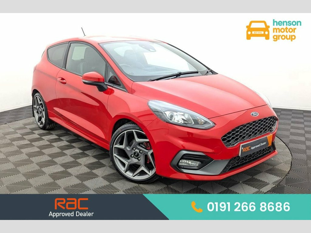 Henson Car Store presents the FORD FIESTA 1.5T EcoBoost ST-3 Hatchback 3dr Petrol Manual Euro 6 (s/s) finished in Race Red, this car comes with service history. This 2019 Ford Fiesta ST-3 offers an exhilarating driving experience with its impressive acceleration. Under the bonnet, you'll find a potent 1.5 litre petrol engine, compliant with Euro 6 emissions standards, ensuring a balance of performance and efficiency. This ST-3 model comes equipped with a host of desirable features designed for comfort and convenience, including automatic headlights that adjust to light conditions, and the Ford KeyFree System for effortless keyless entry. Manoeuvring is made simpler with a rear view camera and parking sensors, while the electronic automatic temperature control air conditioning and heated front seats and steering wheel provide a pleasant cabin environment, whatever the weather. The performance of this Fiesta ST-3 is truly a standout, achieving 0-60mph in a rapid 6.5 seconds. This swift acceleration demonstrates how this particular model surpasses many others in its class, offering a more dynamic and engaging drive. Combined with its sporty ST-3 trim and the array of advanced features, this Ford Fiesta represents a compelling choice for those seeking a car that delivers both excitement and everyday practicality. Race Red, 18in Alloy Wheels - ST 5 Spoke - Magneti, 4.2in TFT Instrument Cluster Screen, Air Conditioning - Electronic Automatic , Airbags - Driver and Front Passenger, Airbags - Front Side Impact, Airbags - Front and Rear Side Curtain, Anti-Lock Braking System - ABS with Elec, Automatic Rain Sensing Wipers and Auto-D, Black Belt Line Finisher, Centre Console with Armrest and Illumina, Courtesy Light - Ambient LED Courtesy Li, Courtesy Light - Front Map Light and Rea, Cruise Control, Door Handles - Body Colour, Door Lever - Chrome Finish, Door Mirrors - Electrically-Operated and, Driver Alert, Driver Assistance Pack, Driver and Passenger Seat Height and Lum, EPAS - Electric Power Assisted St
