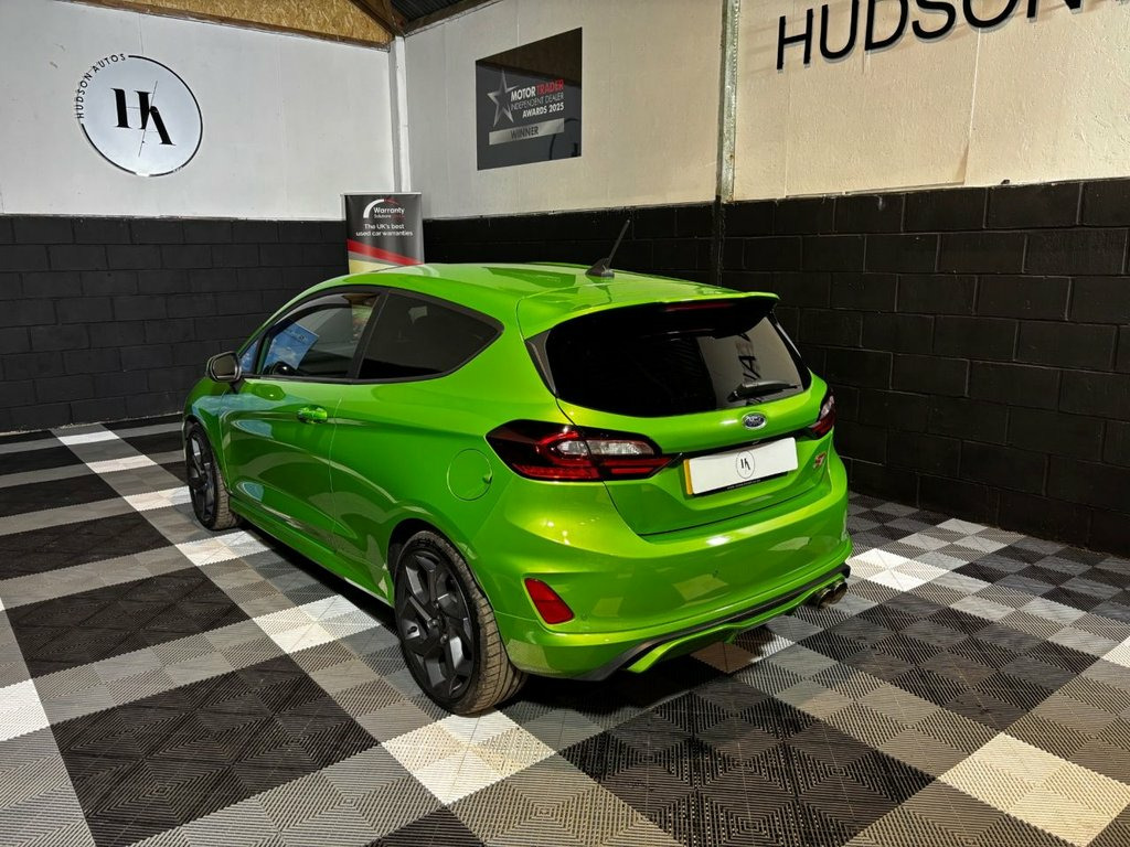 Boasting a full dealership service history and an MOT valid until August 2026, this 2022 Ford Fiesta ST-3 presents a compelling proposition for discerning drivers. Powered by a dynamic 1.5L Euro 6 petrol engine, this model offers exhilarating performance with a rapid 0-62mph acceleration in just 6.5 seconds. The ST-3 trim level comes equipped with a suite of premium features designed to enhance your driving experience, including a B&O Premium Sound System with wireless phone charging, and the convenient Ford Key Free System for keyless entry and start. Further enhancing its appeal, this Fiesta ST-3 includes a rear view camera with parking assistance, ensuring effortless manoeuvring. The striking Matrix LED headlights with signature LED daytime running lights and integrated sequential indicators provide excellent visibility and a distinctive look. For your comfort, the vehicle features electronic automatic temperature control, offering a pleasant cabin environment in all conditions. With its impressive acceleration and comprehensive feature set, this Ford Fiesta ST-3 stands out from the crowd, offering a superior driving experience. The vehicle is also covered by a 3 month warranty for your peace of mind. 18in Alloy Wheels - 5-Spoke with Magneti, 6-Way Manual Driver Seat with Lumbar Adj, 6-Way Manual Passenger Seat with Lumbar , Air Conditioning - Electronic Automatic , Airbags - Driver and Front Passenger, Airbags - Front Side Impact, Airbags - Side Curtain, Anti-Lock Braking System - ABS with Elec, Automatic Rain Sensing Wipers and Auto-D, Black Belt Line Finisher, Black Interior Headlining, Body Colour Bumpers, Cargo Area Cover, Centre Console - Premium with Openable S, Courtesy Light - Front LED with Map-read, Cruise Control includes Speed Limiter an, Door Handles - Body Colour, Door Lever - Chrome Finish, Door Mirrors - Heated - Electric - Integ, EPAS - Electric Power Assisted Steering,