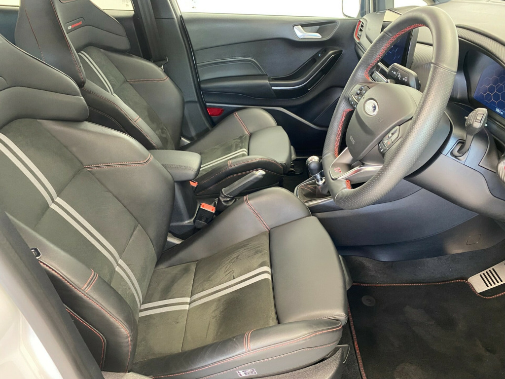 Chipping Sodbury Motor Company are pleased to present this 2023 Ford Fiesta ST-3 in Frozen White which represents one of the very last Fiesta ST models produced - a true modern hot hatch with an exceptional blend of performance, style, and everyday usability.Optional Features•Ford SYNC 3 with Satellite Navigation•Winter Pack - Heated Front Seats & Heated Steering WheelTasteful EnhancementsThis example benefits from subtle exterior upgrades that add to its sporty appeal:•Upper lip spoiler•Lower rear diffuser•TRC lower side skirt mouldings•Ford Performance front splitterStandard Features•Reverse Camera•Privacy Glass•Climate Control•Cruise Control with Speed Limiter•Keyless Entry & Start•Rear Parking Sensors•Bluetooth Hands-free with Apple CarPlay & Android AutoPeace of Mind•Full Service History•Balance of Manufacturer's Warranty until December 2026 / 60,000 miles (whichever comes first)•ULEZ & Clean Air Zone compliantWith its sharp styling, engaging drive, and excellent specification, this Fiesta ST-3 is the perfect choice for those seeking a hot hatch that's both exciting and practical.Contact us today to arrange your viewing or test drive.Looking to finance your new car? We can help, call one of our team today to run through what options are available or for a personal quotation. Got a part exchange? We can help there too, we are always looking for quality used vans and cars so will offer a competitive part exchange figure., ti-lock braking system - abs with electronic brake force distribution - ebd, emergency brake warning - automatic flashing of brake lights under heavy braking, enhanced electronic stability control - esc with traction control - emergency brake assist - eba - hill start assist - hsa, ips - intelligent protection system, 12v auxillary power socket, airbags, alarm, apple car play & android auto, auto dimming rear view mirror, auto high beam, automatic headlights, automatic rain sensing wipers, bluetooth hands free , clean air zone compliant, climate control, cruise control, dab radio , driver alert, electric front windows, electric rear windows, electrically adjustable wing mirrors, ford easy-fuel capless refuelling system, ford my key system, ford pass connect via smartphone app, heated front seats, heated steering wheel, height adjustable drivers seat, key free push button start, key less entry, lane departure warning system, leather trimmed gear knob, leather trimmed steering wheel, led daytime running lights, led rear lights, matrix led headlights, passenger airbag deactivation possible, premium centre console with armrest & storage, privacy glass, quickclear heated windscreen, rake & reach adjustable steering column, rear parking sensors, red brake calipers, remote central locking, reverse camera, selectable drive modes , speed limiter function, steering wheel mounted audio controls, traffic sign recognition, ulez compliant, usb audio interface, 18'' Alloys