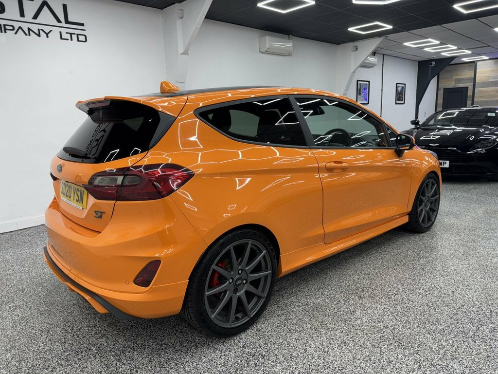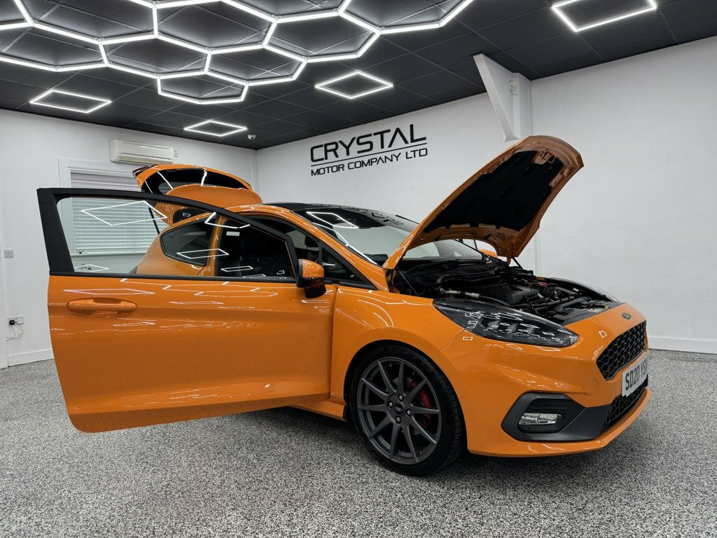 Crystal motor company are delighted to offer for sale this beautifully presented 2020 FORD FIESTA 1.5T EcoBoost ST Performance Edition Hatchback 3dr Petrol Manual Euro 6 (s/s) (200 ps) finished in DEEP ORANGE. This car comes with TWO KEYS, TWO FORMER KEEPERS, SERVICE HISTORY, FRONT END PAINT PROTECTION FILM. This car is equipped with 18" ALLOY WHEELS, RED BRAKE CALLIPERS, REAR PARKING SENSORS, REAR REVERSING CAMERA, ELECTRIC FOLDING WING MIRRORS, PART LEATHER BUCKET SEATS, HEATED FRONT SEATS, CRUISE CONTROL, HEATED STEERING WHEEL, BANG AND OLUFSEN SOUND SYSTEM, DAB RADIO, BLUETOOTH AUDIO, BLUETOOTH PHONE CONNECTION, SATNAV, APPLE CARPLAY, ANDROID AUTO. The car is 100% HPi clear. Part exchange and finance are available and all major credit and debit cards accepted. Crystal Motor Company Ltd Used Programme includes a full PDI inside and out, MOT, mileage certificate and a full inside and out valet. You can request a personalised video with attention given to any specifics you would like a better view of and we will be pleased to assist you. Likewise, we offer our customers a free collection service. Our journey began in 1996 with the aim to deliver the best possible customer experience, you will enjoy a completely hassle free approach, no pressure and great prices, values we stand by to this day. Looking to finance your next car? We have over 30 lenders on board to help each customer with their financial circumstance. Every vehicle benefits from a minimum of 3 months war 18in Alloy Wheels - ST Ford Performance , 4.2in TFT Instrument Cluster Screen, Air Conditioning - Electronic Automatic , Airbags - Driver and Front Passenger, Airbags - Front and Rear Side Curtain, Airbags - Front Side Impact, Anti-Lock Braking System - ABS with Elec, Automatic Rain Sensing Wipers and Auto-D, B and O PLAY In-Car Audio Premium Sound , Body Colour Bumpers, Centre Console with Armrest and Illumina, Comfort Pack, Courtesy Light - Front Map Light and Rea, Cruise Control, Door Handles - Body Colour, Door Lever - Chrome Finish, Door Mirrors - Electrically-Operated and, Driver Seat with Manual Height Adjust, Drivers Seat Lumbar Support and Passenge, Electric Windows - Front, Electro