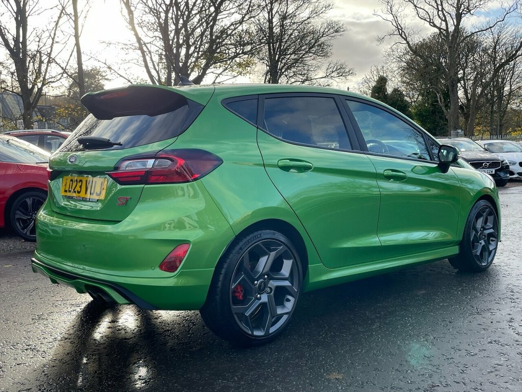 The 2023 (23) Ford Fiesta 1.5T ST-3 is the ultimate expression of Ford's award-winning hot hatch, blending everyday practicality with exhilarating performance. Powered by a 1.5-litre turbocharged EcoBoost petrol engine, this Fiesta delivers a punchy 200 bhp, channelled through a slick 6-speed manual gearbox for a truly engaging drive. With sharp handling, precise steering, and a perfectly tuned chassis, it's one of the best driver's cars in its class. The range-topping ST-3 trim adds premium touches, Plus upgrade ST performance package, and Fiesta ST LSD, and basic spec including Ford performance sports seats, satellite navigation, digital display, Cruise control, climate control, and 18-inch alloy wheels. Inside, the driver-focused cabin combines performance flair with comfort, while practical 5-door access makes it a versatile choice for daily use. With its blend of hot-hatch thrills and modern technology, this Fiesta ST-3 is a superb choice for enthusiasts who want excitement without compromising on usability. Fiesta ST LSD, ST Performance Pack, Ford Performance Partial Sensico - Black, 4.2in TFT Ice Blue Illumination Analogue, 6-Way Manual Driver Seat with Lumbar Adj, 6-Way Manual Passenger Seat with Lumbar , Air Conditioning - Electronic Automatic , Airbags - Driver and Front Passenger, Airbags - Front Side Impact, Airbags - Side Curtain, Anti-Lock Braking System - ABS with Elec, Auto Dimming Rear View Mirror, Black Interior Headlining, Cargo Area Cover, Centre Console - Premium with Openable , Courtesy Light - Front LED with Map-read, Courtesy Lights - Ambient LED Courtesy L, Cruise Control includes Speed Limiter an, Door Handles - Body Colour, Door Lever - Chrome Finish, Door Mirrors - Heated