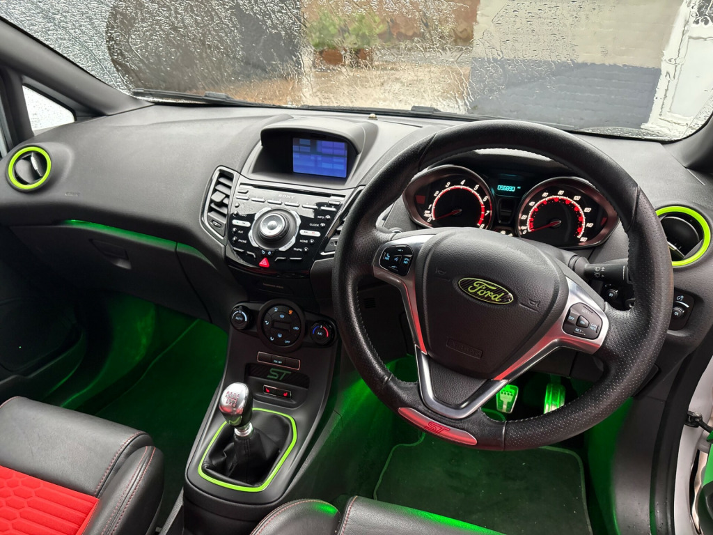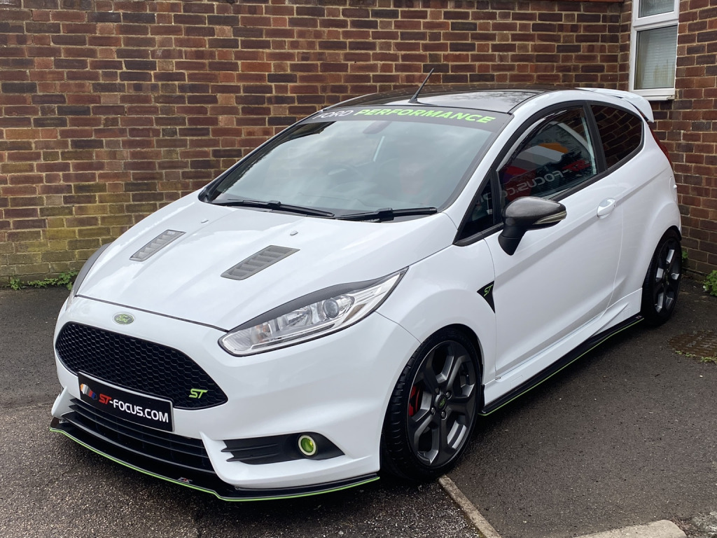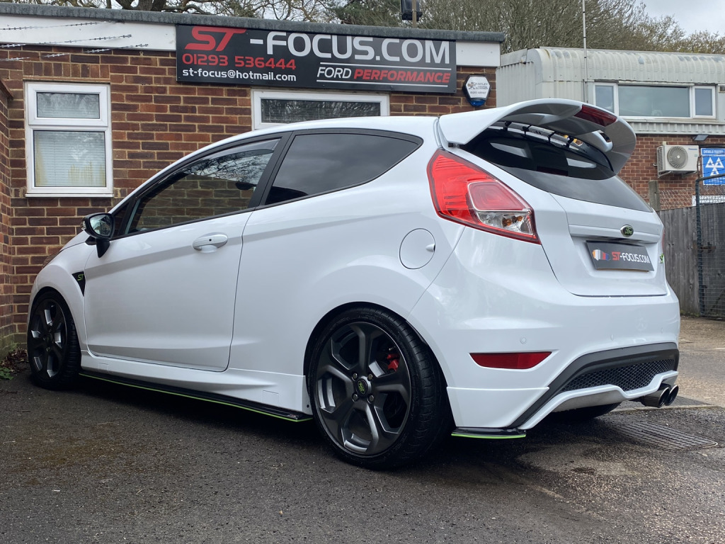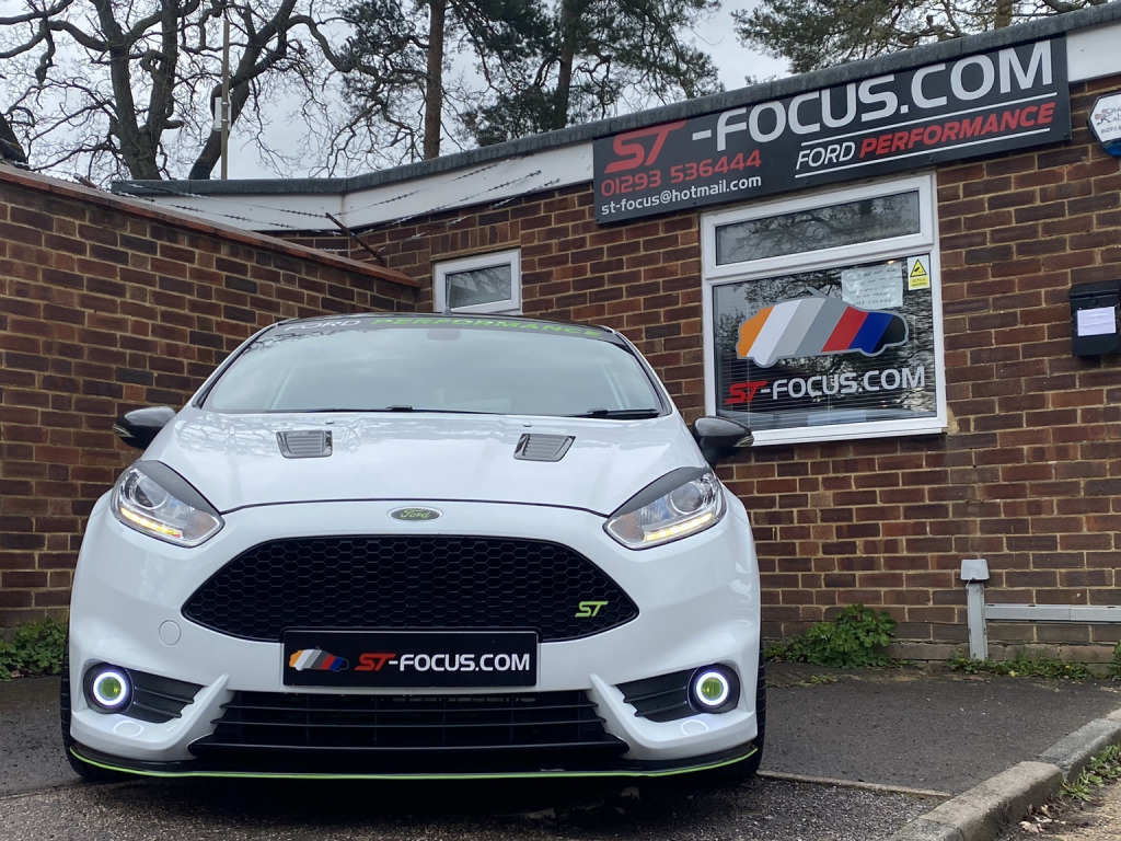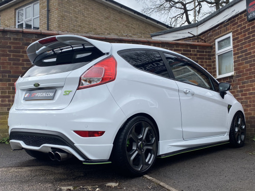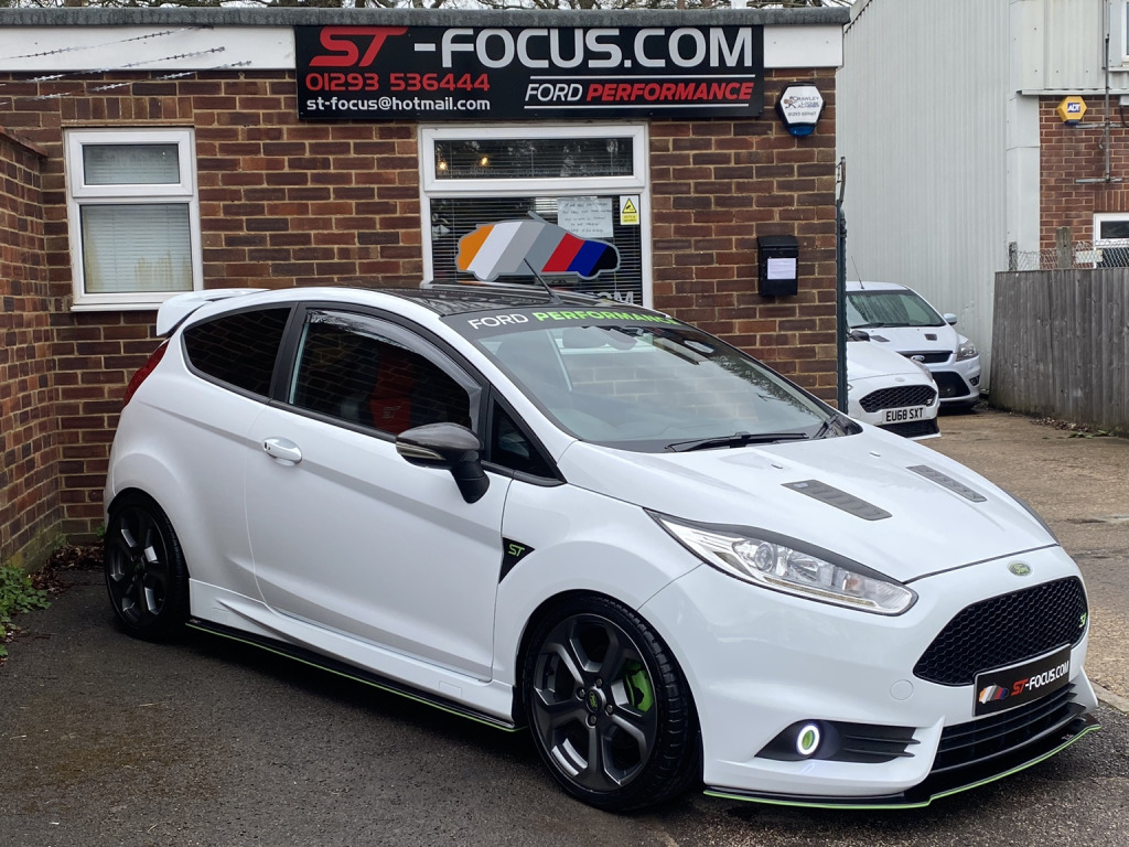 We are pleased to offer this awesome Frozen White Fiesta ST-3! This car has been meticulously looked after by a true enthusiast and this reflects on the car as it is in stunning condition having ONLY 3 PREVIOUS OWNERS, we supplied this car a couple of years ago, also coming with FULL SERVICE HISTORY, including CAMBELT AND WATERPUMP CHANGED. It has had no expense spared when it comes to the modifications which are as follows: *TRS STAGE 2 SOFTWARE INSTALLED BY STEALTHWORX.*FULL MONGOOSE EXHAUST SYSTEM WITH SPORTS CAT.*ITG INDUCTION KIT.*RAMAIR CROSSOVER PIPE.*AIRTEC STAGE 2 INTERCOOLER.*HOT SIDE UPRATED BOOST PIPES.*PCV OIL CATCH CAN SYSTEM.*AIRTEC ENGINE MOUNT.*SHORT SHIFTER.*HSD COILOVERS BY DRIFTWORKS.*PUMASPEED WHEEL SPACERS.*TRC LOWLINE KIT.*CARBON WRAPPED ROOF.*SPOILER RAISERS.*CARBON EFFECT MIRROR CAPS.*CARBON EFFECT HEADLIGHT BROWS, BONNET VENTS and more!COMES WITH UPGRADED SECURITY (For more info please call). This car also comes with a great factory spec being the ST-3 including:*RECARO HEATED SPORTS SEATS FINISHED IN BLACK LEATEHR WITH RED CLOTH.*SAT NAV.*CRUISE CONTROL.*KEYLESS ENTRY.*POWER FOLDING MIRRORS.*SONY DAB MEDIA STEREO SYSTEM.*MUCH MORE.... We can offer finance on this vehicle and we also accept part exchange... Please be aware if a third party finance company is used there will be a small admin fee applied.WWW.ST-FOCUS.COM 01293 536444.EMAIL: ST-FOCUSHOTMAIL.COM'THE ORIGINAL FORD PERFORMANCE SPECIALISTS!' uise control, electric power steering, sony navigation with dab radio/cd and ford sync bluetooth connection, voice control and usb port, trip computer, lowered suspension, 8 speakers, auxiliary input socket, steering wheel mounted controls, auto dimming rear view mirror, automatic headlights + automatic windscreen wipers, body colour bumpers, body colour door handles, body colour electric adjustable heated door mirrors, body colour large rear spoiler, electric folding door mirrors with puddle lamps, electric front windows/one touch facility, front fog lights, led daytime running lights, privacy glass, quickclear heated windscreen, rear wiper, tinted glass, adjustable head restraints, air conditioning + electric auto temperature control (eatc), ambient lighting, footwell illumination, front map reading lights, front recaro sports seats, front/rear floor mats, heated front seats, leather steering wheel and gearknob + red stitching, load area light, manual seat adjustment, part leather upholstery, pollen filter, rake/reach adjustable steering wheel, 3 point seatbelts on all rear seats, abs+eba, curtain airbags, driver and passenger airbags, drivers knee airbag, esp + traction control, front passenger airbag deactivation, front side airbags, tyre pressure monitoring system, immobiliser, keyless entry with , mykey system, remote central locking, thatcham cat.1 alarm, 17'' Alloys