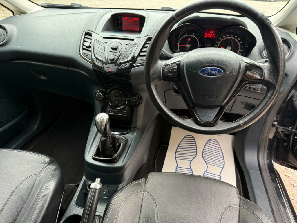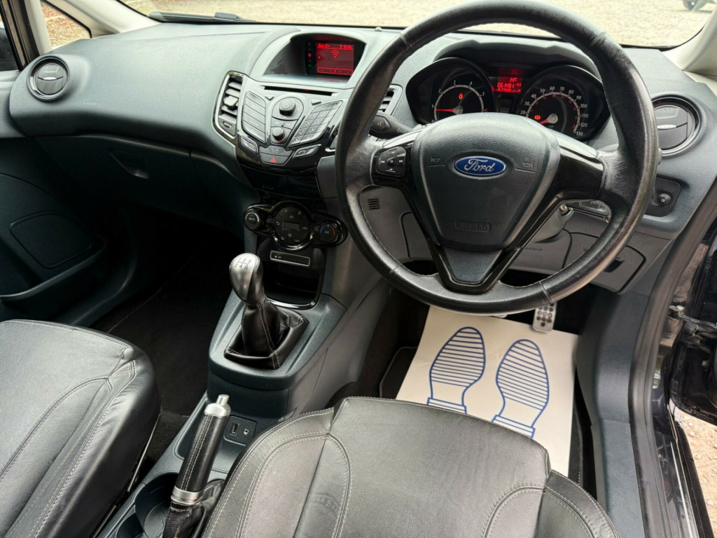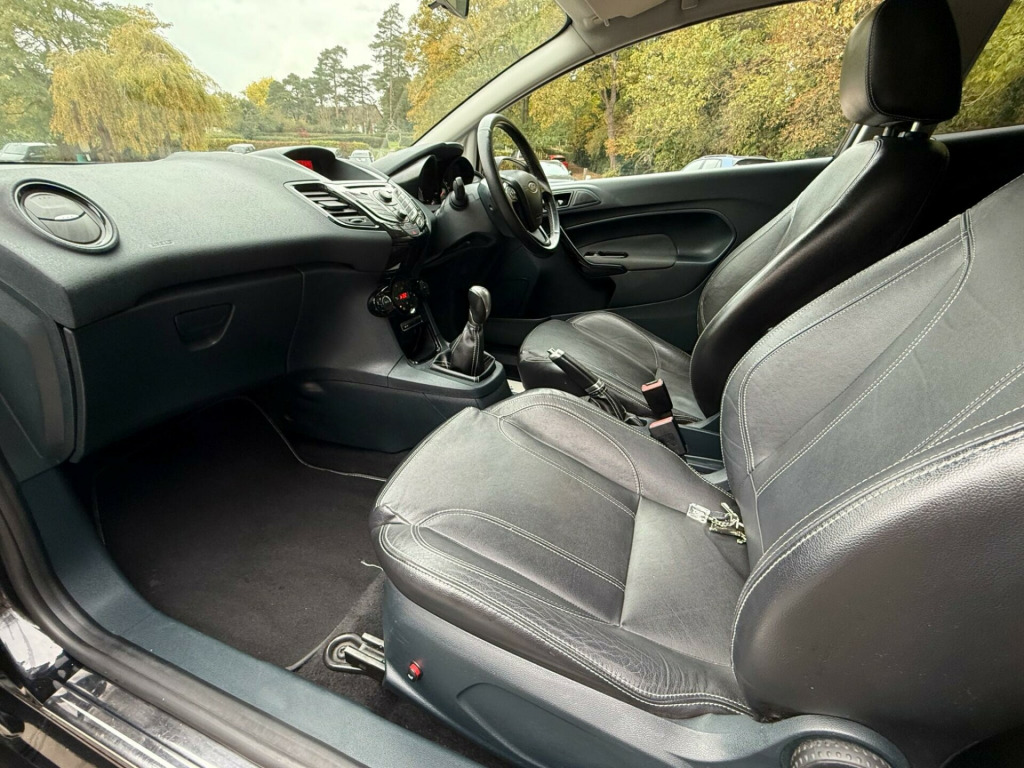 BLACK LEATHER+ HEATED SEATS+ BLUETOOTH+ PARK SENSORS+17” GLOSS ALLOYS+PRIVACY GLASS+ ELECTRIC FOOD MIRRORS+METALLIC PAINT.+ PART EX CLEARANCE +This 2012 Ford Fiesta Metal is a standout choice with its remarkably low mileage of just 61,500 miles for its age. This particular Fiesta, a 1.6L petrol model, comes in a striking metallic paint finish and features desirable 17 inch alloy wheels. Inside, you'll find a Sony radio CD player complete with Bluetooth connectivity and a USB port, alongside Ford's Blu. Hands Free Technology with voice control, making your journeys more connected and convenient. The addition of privacy glass offers an extra touch of style and comfort.The partial service history indicates that this Fiesta has been looked after, and its low insurance group rating means it is an economical choice to own and run. These factors, combined with its excellent condition and the premium Metal trim features, suggest this Ford Fiesta offers a superior ownership experience compared to other vehicles in its class.. 17in 5 - Spoke Alloys Wheels (205/40 Tyres) with Locking Wheel Nuts, 4 Front and 2 Rear Speakers, 60/40 Split Folding Back and Fixed Cushion, ATC Air Conditioning, Accessory Power Socket (12V), Anti-Lock Brakes, Emergency Brake Assist (EBA), Body Coloured Bumpers, Centre Console, Centre High - Mounted Rear Brake Light, Centre Rear Seat Belt, Centre Rear Seat Head Restraint, Cruise Control, Digital Radio/CD, MP3 Compatible, Multi - Functional Display, Matrix Display, AUX / USB Connection, Driver Seat Lumbar Support, Drivers Airbag, Drivers Knee Airbag, Electric Power Assisted Steering (EPAS), Electrically - Operated Front Windows with One - Touch Lowering/Closing on Drivers Side, Electrically - Operated/Heated/Foldable Door Mirrors with Integrated Side Indicators, Electronic Brake - Force Distribution (EBD), Electronic Stability Programme (ESP), Floor Mats - Front and Rear, Velour, Front Fog Lights with Chrome Bezel Rings, Front Side Airbag (Head and Thorax), Heated Front Seats, ISOFIX Mounting Brackets for Child Seat (Rear Outer Seats Only), Immobiliser, Leather Gear Knob, Leather Seats with Silver Contrast Stitching, Leather Trimmed 3 - Spoke Steering Wheel, Manual 4 - Way Driver Seat Adjust, Passengers Airbag, Rake and Reach Adjustable Steering Column, Remote Audio Controls, Remote Central Locking with Two Flip Keys, Seat Buckle Pre-Tensioners on Front Seat Belts, Sports - Style Front Seats, Sports Style Body Colour Rear Spoiler, Sports Suspension with Lowered Ride Height, Traction Assist, Trip Computer, Two Cup Holders, Tyre Mobility Kit, Blu. Hands-Free Tech./Vo. Con./USB Port, Privacy Glass, Sony Radio CD Player & Bluetooth USB, Metallic Paint, Alloy Wheels - 17in. Part service history
