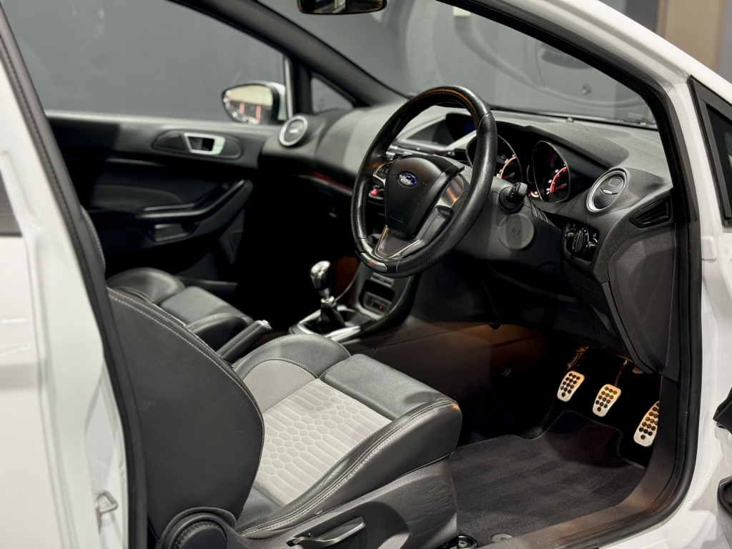 Mi Motor Sales is thrilled to offer this extremely well maintained Ford Fiesta 1.6T EcoBoost ST-2 Petrol Manual 182PS finished in FROZEN WHITE with a mere 54,200 miles covered. It boasts amazing service history and as part of our preparation processed it has received a fresh service, an A/C service and Re-Gas, 4 alloy wheel refurbishment, A 3 stage machine polish with a 6-month ceramic coating applied plus will come with a new 12-month advisory free MOT to the new owner. , With this being the ST-2 model it is loaded with features which include Newly refurbished Alloy wheels with 4 matching Pirelli P-Zero tyres, ST exterior styling, Rear privacy glass, LED Ambient Courtesy Lighting, Steering Wheel - Leather with Red Stitching, Hill Start Assist, Ford Power Starter Button, LED Daytime Running Lights, Heated Front Windscreen, Matrix Display, Gearshift Indicator Light, Heated front RECARO sports seats, Sony DAB Digital Radio and SYNC connectivity. , Every effort has been made to ensure the above details of the car are correct however, please check with the physical vehicle. For a full list of features, click the specifications tab below. Delivery available. Motor Sales is a long-standing family run business and is part of the Mi Conversions Group. All our vehicles undertake a 117-point PDI process and when required, a fresh engine service and Air Conditioning service. We can offer very competitive finance packages including 0% interest deals (subject to terms) from several finance partners and lenders. As standard we include a 3-month, third party warranty included in the final selling price but can extend to 12, 24 or 36 months. As we are only a small team, we do operate on a View by Appointment only basis from our Dorset premises (DT2 8BL). This allows us to give you our full attention so feel free to get touch.
