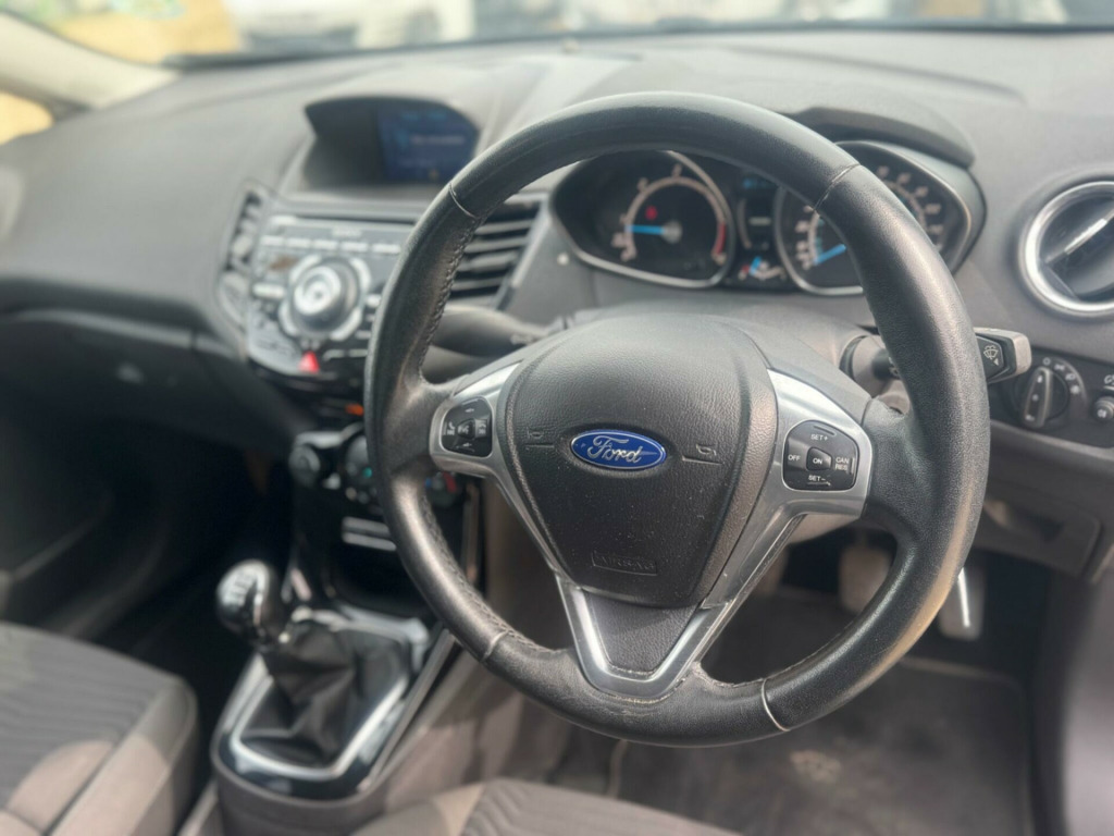 A STUNNING LOOKING EXAMPLE FORD FIESTA 1.6L TDCI ECONETIC TITANIUM EURO 5 (S/S) 5DR IN GREY, £20 ROAD TAX FOR YEAR, FRONT AND REAR PARKING SENSORS, BLUETOOTH, SAT NAV, CRUISE CONTROL, HEATED WINDSCREEN, PRIVACY GLASS, SPARE WHEEL, DAB RADIO, THIS VEHICLE COMES WITH A 3 MONTH EXTENDED WARRANTY COVERING ALL MECHANICAL AND ELECTRICAL PARTS. THIS NATIONWIDE COVER INCLUDES PARTS AND LABOUR. EYE GREEN CARS IS A REPUTABLE, FAMILY OWNED BUSINESS WITH MANY YEARS OF EXPERIENCE IN BRINGING THE VERY BEST IN USED, PREMIUM CARS. WE WILL VENTURE TO FIND ANY VEHICLE TO SUIT YOUR BUDGET AND REQUIREMENTS. OUR HELPFUL STAFF IS AT HAND TO DELIVER FIRST CLASS CUSTOMER SERVICE AND MAKE THE PURCHASE OF YOUR USED CAR SIMPLE. WE PRIDE OURSELVES ON OUR CUSTOMER CARE AND OFFER AN EXCEPTIONAL PERSONAL SERVICE. PRIOR TO SALE, OUR QUALIFIED TEAM WILL FULLY INSPECT VEHICLES TO MAKE SURE THEY ARE ROAD WORTHY. ALL VEHICLES ARE HPI/FINANCE CLEAR. FOR PEACE OF MIND, 3-24 MONTH WARRANTIES ARE AVAILABLE COVERING ALL ELECTRICAL/MECHANICAL ISSUES AND INCLUDE A NATIONAL REPAIR NETWORK, PARTS, LABOUR AND VAT. MOT RENEWAL CAN BE DISCUSSED AT TIME OF SALE. WE ARE OPEN TO DISCUSSING PART-EXCHANGE ON OUR VEHICLES. PRICES ON THE FORECOURT WILL BE CONSIDERED WHEN AGREEING A PART-EXCHANGE VALUATION. PRICES VARY FROM ONLINE AND FORECOURT. FINANCE IS AVAILABLE THROUGH A RANGE OF COUNTRYWIDE BROKERS WHO PROVIDE YOU WITH COMPETITIVE, AFFORDABLE RATES. NATIONWIDE DELIVERY CAN BE REQUESTED AT A COST OF £1.50 PER MILE. WE ACCEPT ALL MAJOR DEBIT/CREDIT CARDS. PLEASE FEEL FREE TO VIEW OUR EXTENSIVE RANGE OF VEHICLES ON OUR WEBSITE AND CALL/EMAIL US TO BOOK AN APPOINTMENT AND ARRANGE A TEST DRIVE. THE ADDRESS IS EYE GREEN INDUSTRIAL ESTATE, 1 CROWLAND ROAD, PETERBOROUGH, PE6 7TN AND THE WEBSITE IS WWW.EYEGREENCARS.COM. 12V Power Socket - Front, 14in Alloy Wheels - 5x2 Spoke, 4.2in TFT Display, ABS - Anti-lock Braking System, AUX Connection, Aesthetic Lighting Package, Airbags - Curtain, Airbags - Driver Side Knee, Airbags - Front Passenger, Airbags - Head and Thorax, Airbags - Passenger Deactivation, Armrest - Centre Console, Automatic Dimming Rear View Mirror, Automatic Headlights - Rain Sensing Wipers - Auto Dimming Rear View Mirror, Automatic Rain Sensing Wipers, Bluetooth Hands-free Phone, Body Colour Exterior Mirrors, Brake Warning Lights - Automatic Flashing of Brake Lights Under Heavy Braking, Bumpers - Front and Rear - Body Colour, Centre Console - with Trinket Tray - 2x Cup Holders - Illuminated, Chrome Belt Line Finisher, Courtesy Light - Overhead with Theatre-Style Dimming, Courtesy Lights with Map Reading Lights, Cruise Control, DDS - Deflation Detection System, Door Handles - Body Colour, Door Mirrors - Power-Foldable with Puddle Lights, Drivers Airbag, EATC - Electronic Automatic Temperature Control - Climate Control, EBA - Emergency Brake Assist, EBD - Electronic Brakeforce Distribution, ECOmode, EPAS - Electric Power Assisted Steering, ESP - Electronic Stability Programme, Electric Windows - Front with One Touch Lowering Drivers, Emergency Assistance, Emergency Brake Warning - Automatic Hazard Warning Lights, Engine Immobiliser, Floor Mats - Front and Rear - Velour, Ford Easy Fuel Capless Refuelling System with Misfuel Inhibitor, Ford SYNC, Front Fog Lights - Chrome Bezel Rings, Front Lower Grille - Chrome Surround, Front Lower Grille Insert and Surround - Black, Front Seatback Map Pockets - Driver and Passenger, Front Upper Grille - Chrome Finish Surround, Front Upper Grille Insert - Chrome bars, Gear Knob - Leather, Gearshift Indicator Light, Gearshift Knob - Leather-Trimmed with Chrome Finish Bezel, Glovebox - Illuminated, Head Restraints - 2-way Adjustment, Head Restraints - Rear 2-Way Adjustment, Headlights - Automatic, Headlights - Follow Me Home, Headlights - Halogen Projector with Silver Bezel, Headliner - Woven, Heated Front Windscreen, High-Mounted Rear Brake Light, Hill Start Assist, IPS - Intelligent Protection System, Interior Door Lever - Chrome Finish, LED Ambient Courtesy Lighting, LED Daytime Running Lights, Leather-Trimmed Handbrake, Loadspace Compartment Light, Loadspace Floor Carpet, Locking Wheel Nuts, MyKey, Perimeter Anti Theft Alarm, Pollen Filter, Rake and Reach Steering Adjustable, Rear Courtesy Lights, Rear Privacy Glass, Rear Spoiler - Body Colour, Remote Central Locking, Removable Package Tray, Seats - 60-40 Split Folding Back and Fixed Cushion, Seats - Drivers 4-Way Adjustment, Seats - Drivers Lumbar Support, Seats - Front Comfort Style, Seats - ISOFIX Mounting Brackets for Child Seats, Sony CD-Radio Player-MP3 Compatibility, Sony DAB Digital Radio, Spare Wheel - 14in Steel, Speakers - x6, Steering Wheel - 3-Spoke - Leather Trimmed with Bezel, Steering Wheel - Multifunction, Stowage Pockets - Driver and Front Passenger Seatbacks, Tailgate Handle - Body Colour with Chrome Finisher, Trip Computer, Tyre Pressure Monitoring System, USB Connection, Voice Control - Audio, Parking Sensor - Front and Rear.