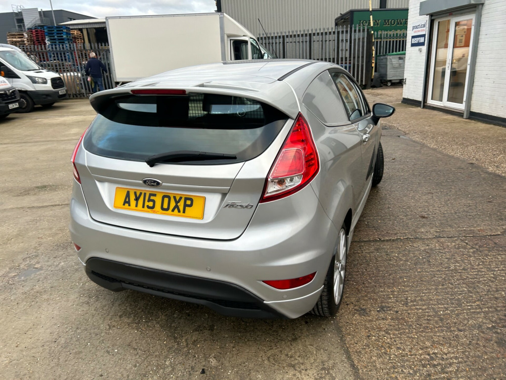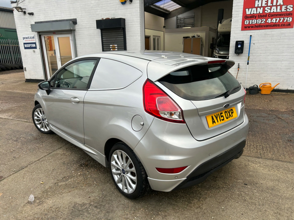 Ford Fiesta Van 1.6 TDCi Sport Panel Van 3dr Diesel Manual (94 bhp)2015 (15) 40,000 miles Diesel Manual Silver 2 OwnersFull Service History MOT Until September 2026A superb example of the ever-popular Ford Fiesta Sport Van, finished in Metallic Silver with only 40,000 miles from new. This van has been exceptionally well maintained with a full service history and will come supplied with an MOT valid until September 2026.The 1.6 TDCi engine offers an excellent blend of performance and economy, ideal for business or personal use. The ''Sport'' specification adds stylish looks and comfort features not usually found in small vans.Specification Includes:16'' Alloy WheelsAir ConditioningBluetooth ConnectivityHeated Front WindscreenElectric Windows & MirrorsRear Parking SensorsLoad-Lined Cargo AreaSport Styling Pack6-Speed Manual GearboxAdditional Information:2 Owners from NewULEZ CompliantDrives and presents beautifullyLow mileage, clean example throughoutAll vehicles are HPI clear and supplied fully valeted and 6 months warranty.Finance and part exchange available.Nationwide delivery on request.Contact us today to arrange a viewing or test drive. in alloy wheels, front door sill protection (scuff/tread plates), rear wash/wipe, sports rear spoiler, wheel nuts locking, air conditioning manual, cloth upholstery, cruise control, dab radio/cd and ford sync, driver seat adjustable lumbar support, electric windows, heated rear screen, leather steering wheel, sports seats, windscreen quickclear front heated, airbags, esp, full steel bulkhead, wipers rain sensitive, anti-lock braking system (abs) and emergency brake assist (eba), drivers airbag, electronic brake-force distribution (ebd), front fog lights, front passenger airbag, head restraints - front, immobiliser, power-assisted steering, remote central locking, third brake light