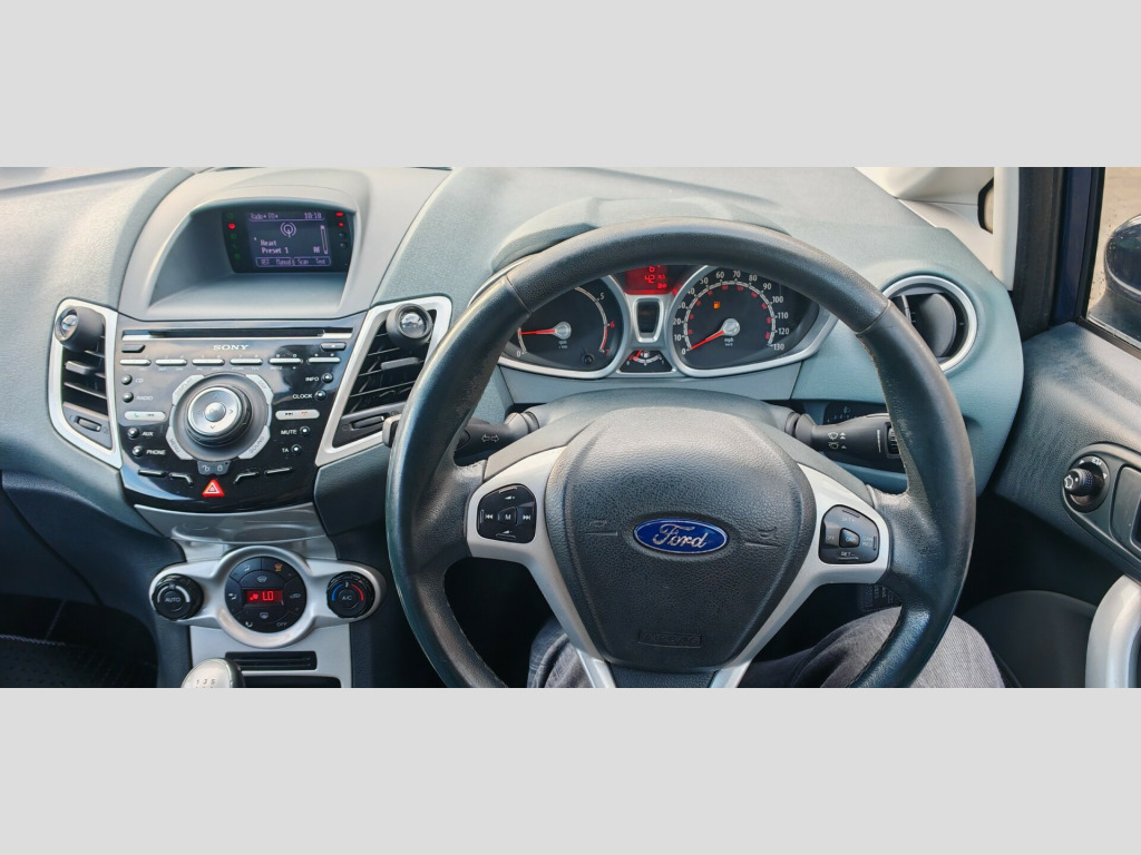 Ford Fiesta 1.6 Titanium Hatchback with 3 doors and 5 seats with 95ty miles petrol with a manual transmission. ULEZ compliant has MOT valid until 02/02/2027. The car is equipped with 16 Spoke Alloy Wheels, Body Coloured Bumpers, and a Rear Spoiler. Its Electrically-Operated/Heated/Foldable Door Mirrors come with Integrated Side Indicators, automatic sensor wipers. The audio system includes 4 Front and 2 Rear Speakers. This efficient hatchback has a carbon emissions rate of 134 g/km and produces 118 bhp.***You can view the car in Macclesfield ***P/X available ***Deliveries available *** in 15 - spoke alloy wheels (195/45 tyres) with locking wheel nuts, body coloured bumpers, body coloured rear spoiler, electrically - operated/heated/foldable door mirrors with integrated side indicators, 4 front and 2 rear speakers, 60/40 split folding back and fixed cushion, atc air conditioning, auto wipers inc. auto headlamps, blu. hands-free tech./vo. con./usb port, centre console, cruise control, electrically - operated front windows with one - touch lowering/closing on drivers side, floor mats - front and rear, velour, leather gear knob, leather trimmed 3 - spoke steering wheel, manual 4 - way driver seat adjust, privacy glass, quickclear heated windscreen, radio/cd, mp3 compatible, multi - functional matrix display, aux / usb connection, rake and reach adjustable steering column, remote audio controls, sony radio cd player & bluetooth usb, trip computer, two cup holders, upholstery cloth, accessory power socket (12v), anti-lock brakes, emergency brake assist (eba), centre high - mounted rear brake light, centre rear seat belt, drivers airbag, drivers knee airbag, electric power assisted steering (epas), electronic brake - force distribution (ebd), electronic stability programme (esp), front fog lights with chrome bezel rings, front side airbag (head and thorax), front and rear head restraints, isofix mounting brackets for child seat (rear outer seats only), immobiliser, passengers airbag, perimeter alarm, remote central locking with two keys, seat buckle pre-tensioners on front seat belts, traction assist, tyre mobility kit