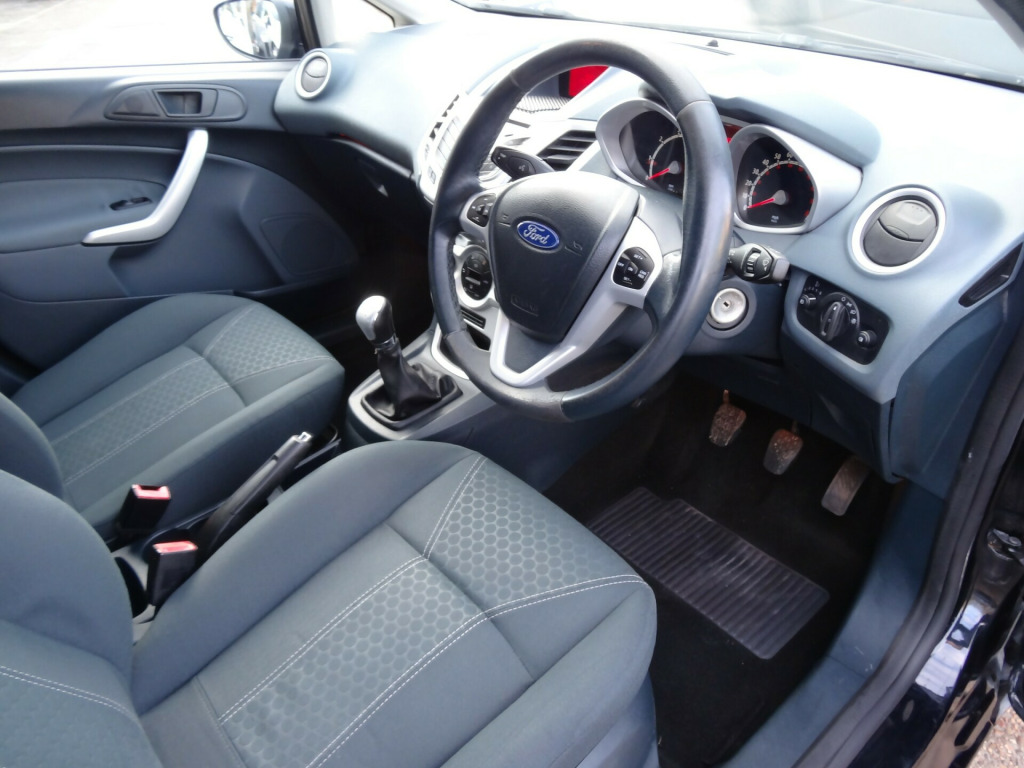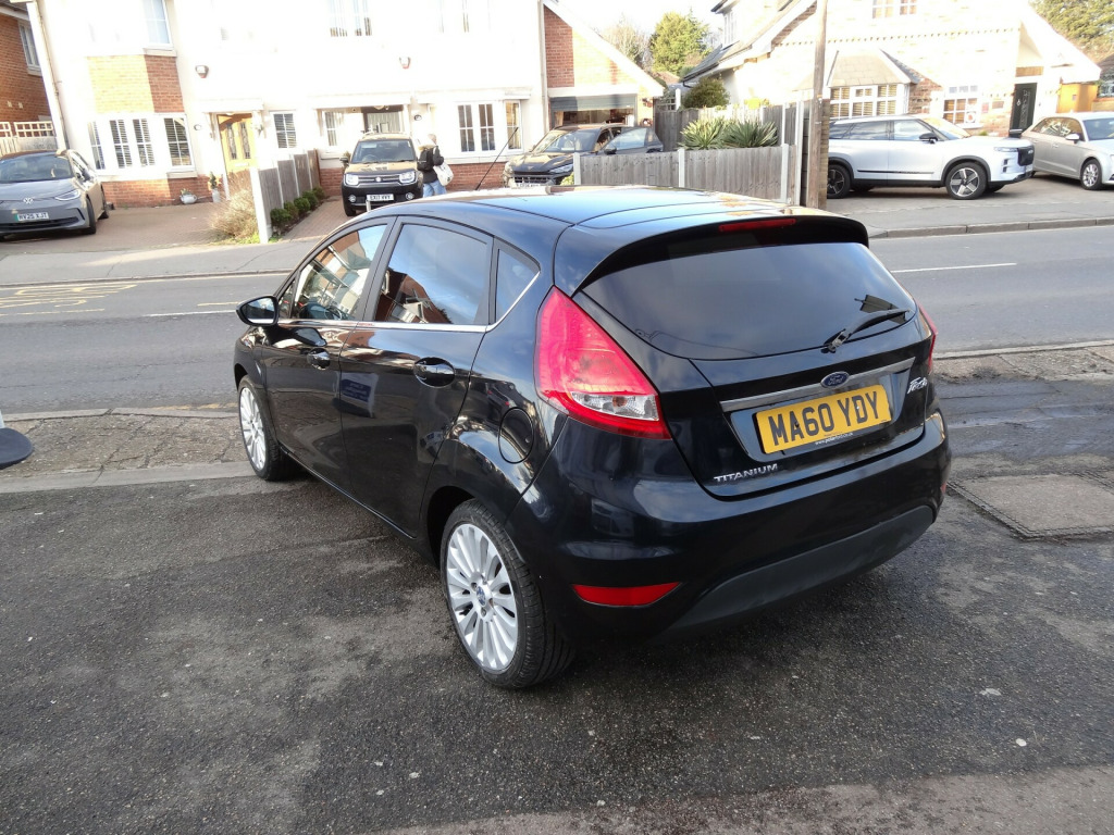 This 2010 Ford Fiesta 1.6 Titanium Hatchback has clocked 93631 miles and is powered by a Petrol engine with manual transmission, emitting 134 g/km of CO2 and delivering 118 bhp. This 5-door, 5-seater vehicle is ULEZ compliant and comes with an MOT that expires on 29/01/2027. Its features include 16in 15 - Spoke Alloy Wheels with Locking Wheel Nuts, Body Coloured Bumpers, Body Coloured Rear Spoiler, and Electrically-Operated/Heated/Foldable Door Mirrors with Integrated Side Indicators. A sound system with 4 Front and 2 Rear Speakers is also included., in 15 - spoke alloy wheels (195/45 tyres) with locking wheel nuts, body coloured bumpers, body coloured rear spoiler, electrically - operated/heated/foldable door mirrors with integrated side indicators, 4 front and 2 rear speakers, 60/40 split folding back and fixed cushion, atc air conditioning, auto wipers inc. auto headlamps, blu. hands-free tech./vo. con./usb port, centre console, cruise control, electrically - operated front windows with one - touch lowering/closing on drivers side, floor mats - front and rear, velour, leather gear knob, leather trimmed 3 - spoke steering wheel, manual 4 - way driver seat adjust, privacy glass, quickclear heated windscreen, radio/cd, mp3 compatible, multi - functional matrix display, aux / usb connection, rake and reach adjustable steering column, remote audio controls, sony radio cd player & bluetooth usb, trip computer, two cup holders, upholstery cloth, accessory power socket (12v), anti-lock brakes, emergency brake assist (eba), centre high - mounted rear brake light, centre rear seat belt, drivers airbag, drivers knee airbag, electric power assisted steering (epas), electronic brake - force distribution (ebd), electronic stability programme (esp), front fog lights with chrome bezel rings, front side airbag (head and thorax), front and rear head restraints, isofix mounting brackets for child seat (rear outer seats only), immobiliser, passengers airbag, perimeter alarm, remote central locking with two keys, seat buckle pre-tensioners on front seat belts, traction assist, tyre mobility kit