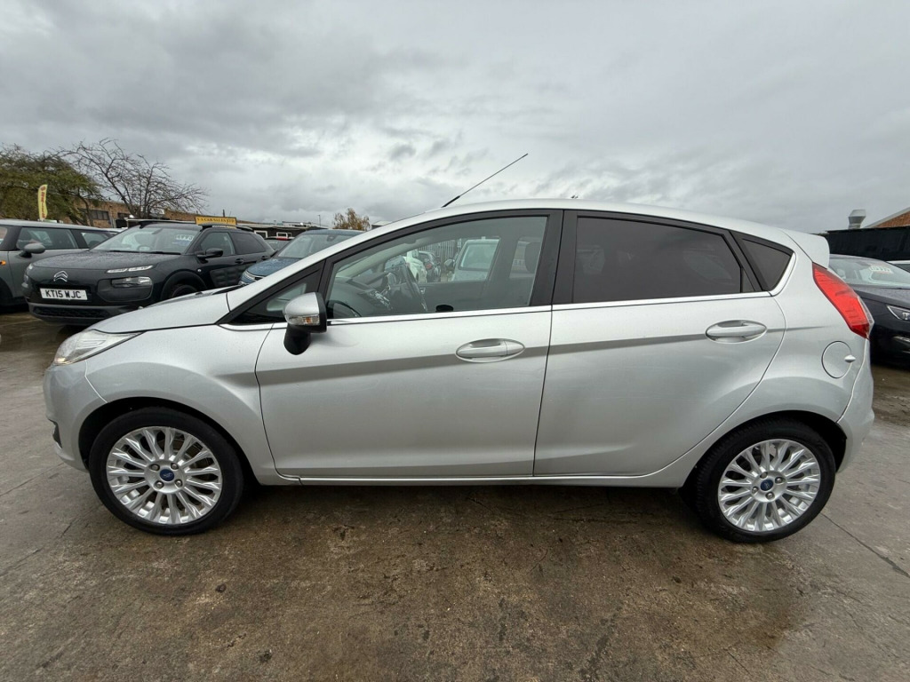 Discover this 2012 Ford Fiesta Titanium, a car with exceptionally low mileage for its age, having covered just 55,000 miles. This well maintained example has had only two owners and comes with a partial service history, offering peace of mind. Under the bonnet, you'll find a responsive 1.6 litre petrol engine, paired with the desirable Titanium trim level. This model also benefits from automatic headlights, which include automatic on functionality, and Electronic Automatic Temperature Control for effortless climate management.The Ford Fiesta Titanium stands out with its impressive acceleration, reaching 0-62mph in just 10.5 seconds, demonstrating its lively performance. Furthermore, its placement in a low insurance group makes it an economical choice for many drivers, indicating it is likely to be more affordable to insure than many comparable vehicles. This combination of low mileage, careful ownership, and appealing features makes this Fiesta a compelling option. s - deflation detection system, city pack, spare wheel - 14in steel, dress up kit - full, lithos cloth - charcoal black, rear centre head restraint, adjustable boot load floor, 12v power socket - front, 16in alloy wheels - 15 spoke, 4.2in tft display, abs - anti-lock braking system, aesthetic lighting package, airbags - curtain, airbags - driver side knee, airbags - front passenger, airbags - head and thorax, airbags - passenger deactivation, armrest - centre console, automatic dimming rear view mirror, automatic rain sensing wipers, brake warning lights - automatic flashing of brake lights under heavy braking, bumpers - front and rear - body colour, centre console - with trinket tray - two cup holders, chrome belt line finisher, courtesy light - overhead with theatre-style dimming, courtesy lights with map reading lights, cruise control, door handles - body colour, drivers airbag, eatc - electronic automatic temperature control - climate control, eba - emergency brake assist, ebd - electronic brakeforce distribution, ecomode, epas - electric power assisted steering, esp - electronic stability programme, electric windows - front with one touch lowering drivers, emergency assistance, emergency brake warning - automatic hazard warning lights, floor mats - front and rear - velour, ford am-fm cd audio system, ford easy fuel capless refuelling system with misfuel inhibitor, front fog lights - chrome bezel rings, front lower grille - chrome surround, front lower grille insert and surround - black, front seatback map pockets - driver and passenger, front upper grille - chrome finish surround, front upper grille insert - chrome bars, gear knob - leather, gearshift indicator light, gearshift knob - leather-trimmed with chrome finish bezel, glovebox - illuminated, handbrake release knob - chrome, head restraints - 2-way adjustment, head restraints - rear 2-way adjustment, headlights - automatic, headlights - courtesy delay, headlights - follow me home, headlights - halogen projector with silver bezel, headliner - woven, heated front windscreen, high-mounted rear brake light, hill start assist, ips - intelligent protection system, interior door lever - chrome finish, led ambient courtesy lighting, led daytime running lights, leather-trimmed handbrake, loadspace compartment light, loadspace floor carpet, locking wheel nuts, mykey, passenger airbag deactivation indicator, passengers seat manual 2-way adjustment, perimeter anti theft alarm, pollen filter, power fold door mirrors, rake and reach steering adjustable, rear courtesy lights, rear privacy glass, rear seats back - carpet, rear spoiler - body colour, remote central locking, removable package tray, seats - 60-40 split folding back and fixed cushion, seats - drivers 4-way adjustment, seats - drivers lumbar support, seats - front comfort style, seats - isofix mounting brackets for child seats, second remote ignition key, sony dab digital radio, speakers - x8, steering wheel - 3-spoke - leather trimmed with bezel, steering wheel - multifunction, stowage pockets - driver and front passenger seatbacks, suspension - front stabiliser bar, tailgate handle - body colour with chrome finisher, trip computer, tyre inflator kit, usb and aux connection for external music devices