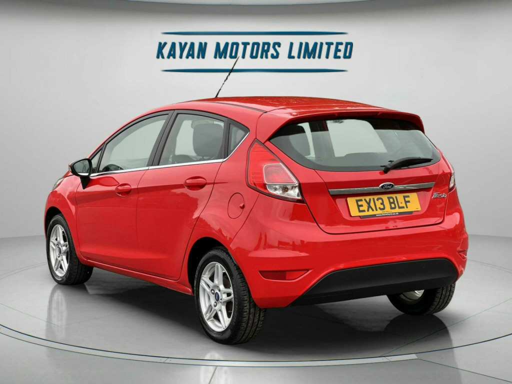------PART/EXCHANGE WELCOME. NATIONWIDE WIDE DELIVERY. -----,HPI CLEAR, ULEZ COMPLIANCE, FULL-SERVICE HISTORY, AND 1 YEAR FREE WARRANTY FOR YOUR PEACE OF MIND.=================This 2013 Ford Fiesta Zetec presents an exceptional opportunity with its remarkably low mileage of just 46,672 miles, significantly less than expected for a vehicle of its age. This particular model is equipped with a responsive 1.6 litre petrol engine, offering an engaging driving experience with a 0-62mph acceleration time of 10.5 seconds. The car benefits from a full service history, with the last service completed on 14th April 2025 at 45,028 miles, and comes with an MOT valid until April 2026. Furthermore, it has a clear vehicle history check and includes a 12 month warranty for your peace of mind.The Ford Fiesta Zetec is known for its practicality and affordability, and this example further enhances its appeal with a low insurance group rating, making it an economical choice for many drivers. The inclusion of manual air conditioning ensures comfort during warmer months. These factors, combined with its excellent provenance and careful maintenance, indicate that this Fiesta is in superior condition compared to other similar vehicles on the market. v power socket - front, 15in alloy wheels - 5x2 spoke, abs - anti-lock braking system, aesthetic lighting package, air conditioning - manual, airbags - curtain, airbags - driver side knee, airbags - front passenger, airbags - head and thorax, airbags - passenger deactivation, brake warning lights - automatic flashing of brake lights under heavy braking, bumpers - front and rear - body colour, centre console - with trinket tray - two cup holders, chrome belt line finisher, courtesy light - overhead with theatre-style dimming, courtesy lights with map reading lights, door handles - body colour, door mirrors - electrically operated and heated, drivers airbag, eba - emergency brake assist, ebd - electronic brakeforce distribution, ecomode, epas - electric power assisted steering, esp - electronic stability programme, electric windows - front with one touch lowering drivers, emergency brake warning - automatic hazard warning lights, ford am-fm cd audio system, ford easy fuel capless refuelling system with misfuel inhibitor, front fog lights - chrome bezel rings, front lower grille insert and surround - black, front seatback map pockets - driver and passenger, front upper grille - chrome finish surround, front upper grille insert - chrome bars, gear knob - leather, gearshift indicator light, gearshift knob - leather-trimmed with chrome finish bezel, glovebox - illuminated, handbrake release knob - chrome, head restraints - 2-way adjustment, head restraints - rear 2-way adjustment, headlights - courtesy delay, headlights - follow me home, headlights - halogen projector with silver bezel, headliner - woven, heated front windscreen, high-mounted rear brake light, hill start assist, ips - intelligent protection system, interior door lever - chrome finish, led ambient courtesy lighting, leather-trimmed handbrake, loadspace compartment light, loadspace floor carpet, locking wheel nuts, mykey, passenger airbag deactivation indicator, passengers seat manual 2-way adjustment, pollen filter, rake and reach steering adjustable, rear courtesy lights, rear seats back - carpet, rear spoiler - body colour, remote central locking, removable package tray, seats - 60-40 split folding back and fixed cushion, seats - drivers 4-way adjustment, seats - front comfort style, seats - isofix mounting brackets for child seats, second remote ignition key, steering wheel - 3-spoke - leather trimmed with bezel, steering wheel - multifunction, stowage pockets - driver and front passenger seatbacks, suspension - front stabiliser bar, tailgate handle - body colour with chrome finisher, trip computer, tyre inflator kit, usb and aux connection for external music devices
