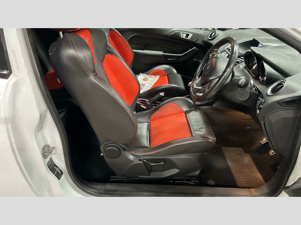 This 2014 Ford Fiesta T ST-2 boasts a clear vehicle history check, offering you peace of mind. This popular model is equipped with a 1.6 litre petrol engine and features manual air conditioning to keep you comfortable. For added convenience, it also includes heated driver and passenger seats, perfect for those colder mornings.The performance of this Fiesta T ST-2 is truly impressive, with a rapid 0-62mph acceleration time of just 6.9 seconds. This swift acceleration demonstrates its capability and sets it apart from many other vehicles in its class, providing an engaging driving experience.. 12V Power Socket - Front, 17in Alloy Wheels, 4.2in TFT Display, ABS - Anti-lock Braking System, Air Conditioning - Manual, Airbags - Curtain, Airbags - Front Passenger, Airbags - Head and Thorax, Body Colour Side Skirts, Centre Console with Trinket Tray 2 Cup Holders and Large Stowage Bin, Corner winglets, Courtesy Lights - Front, Door Handles - Body Colour, Door Mirrors - with Memory - Chrome Effect Housings - Heated Puddle Light and Indicator, Drivers Airbag, EBA - Emergency Brake Assist, EBD - Electronic Brakeforce Distribution, ECOmode, EPAS - Electric Power Assisted Steering, ESP - Electronic Stability Programme, Electric Windows - Front with One Touch Lowering Drivers, Emergency Brake Warning - Automatic Hazard Warning Lights, Ford AM-FM CD Audio System, Ford Easy Fuel Capless Refuelling System with Misfuel Inhibitor, Front Fog Lights, Gear Knob - Leather, Gearshift Indicator Light, Handbrake Release Knob - Chrome, Head Restraints - Rear 2-Way Adjustment, Headlights - Follow Me Home, Headlights - Halogen Projector with Chrome Bezel, Heated Driver and Passenger Seats, Heated Front Windscreen, High-Mounted Rear Brake Light, IPS - Intelligent Protection System, Keyless Start, LED Ambient Courtesy Lighting, LED Daytime Running Lights, Large black honeycomb trapezoidal grille, Loadspace Floor Carpet, Locking Wheel Nuts, Matrix Display, MyKey, Passengers seat manual 2-way adjustment, Pedal covers - Alloy cappings, Rake and Reach Steering Adjustable, Rear Privacy Glass, Rear Spoiler - Sports Style - Body Colour, Remote Central Locking, Removable Rear Parcel Shelf, ST Front Door Scuff Plates, ST Full Body Styling Kit, SYNC connectivity, Seats - 60-40 Split Folding Back and Fixed Cushion, Seats - Drivers 4-Way Adjustment, Seats - Drivers Lumbar Support, Seats - Front Recaro Sports, Seats - Front Sports, Seats - ISOFIX Mounting Brackets for Child Seats, Second Remote Ignition Key, Sony DAB Digital Radio, Sound Symposer, Speakers - x8, Steering Wheel - Leather with Red Stitching, Steering Wheel - Multifunction, Stowage Pockets - Drivers Seatback, Suspension - Sports, Tailgate Handle - Body Colour, Thatcham Category 1 Alarm, Trip Computer, Twin Exhaust Outlet, Tyre Inflator Kit, USB and AUX Connection for External Music Devices, Unique ST Floor Mats - Front and Rear, Unique ST Instrument Cluster Binnacle, Unique ST Rear Spoiler.