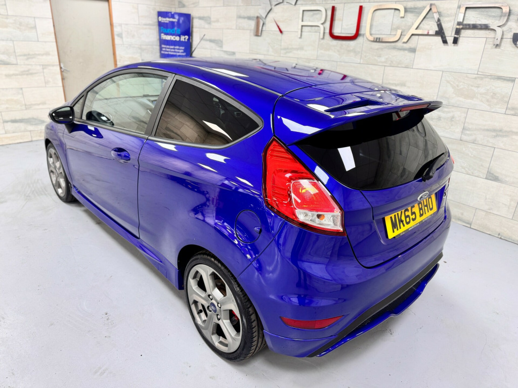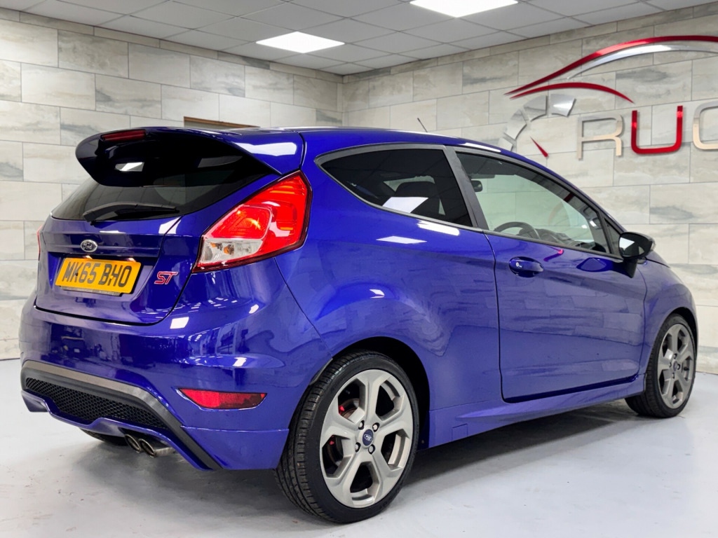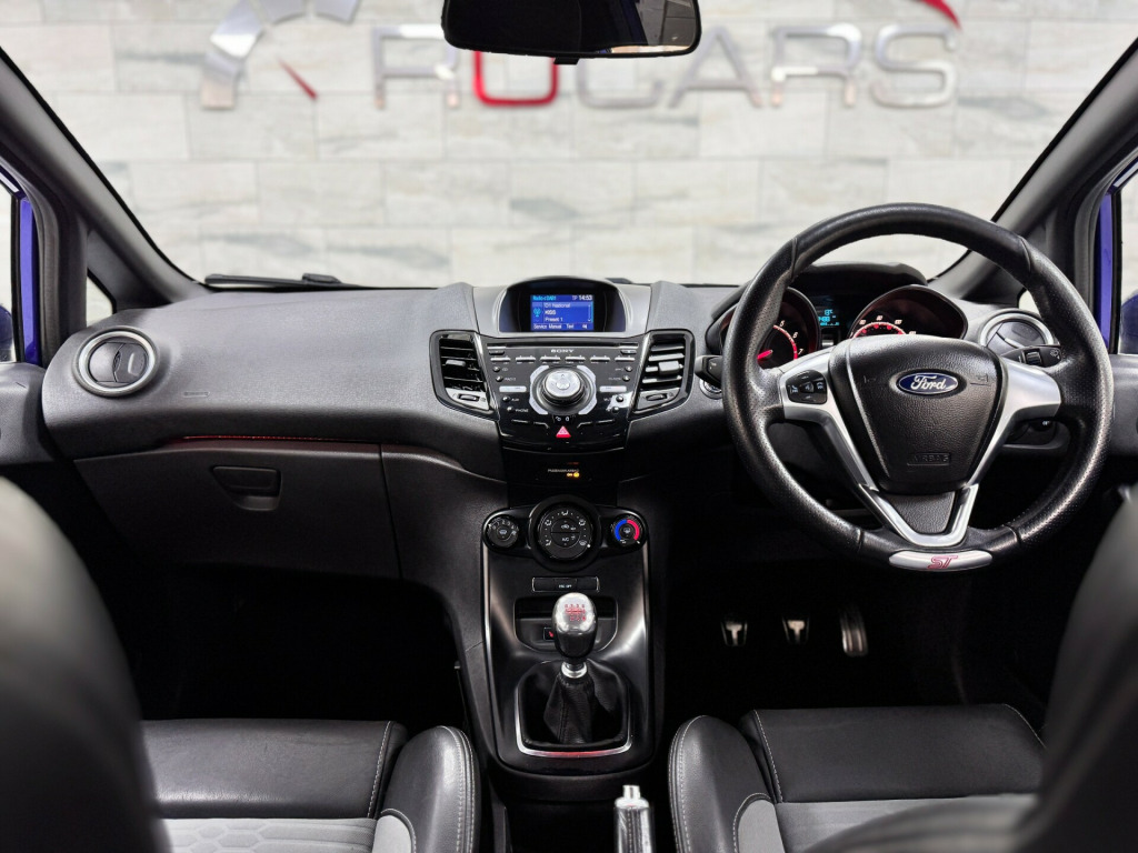 A fantastic opportunity to purchase a lovely, unmodified example with Full history!This 2015 '65' ULEZ Compliant Ford Fiesta ST2 is finished in Spirit Blue with Charcoal Torino half leather interiorSPECIFICATION - DAB Style Pack Privacy Glass 17'' Wheels & much more!MAINTENANCE -The car will come with a new MOT & full health check all included within the price. It also has comprehensive service history with 14 documented services (Serviced12k,26k,27k,28k,31k,36k,38k,41k,48k,55k,61k,68k,77k,79k,) MORE ABOUT THE CAR - The car is beautiful. The spec is great, the overall condition is fantastic & of course it drives without fault.WHATS INCLUDED - The car will come with a new MOT, fully valeted & 3 Months Ultimate Warranty included. We have 2 keys, clear HPI report and all paperwork.VIDEO - https://youtu.be/39rDsHU6QmAFINANCE AVAILABLE - We are fully regulated by the FCA & work with multiple brokers & lenders.R U Cars Loughborough is a family run business, selling quality used vehicles since 2013. Visit www.RUCARS.co.uk for more information v power socket - front, 4.2in tft display, bluetooth hands-free phone, emergency assistance, ford sync, sony cd-radio player-mp3 compatibility, sony dab digital radio, speakers - x8, usb and aux connection for external music devices, 17in alloy wheels - st, body colour exterior mirrors, bumpers - front and rear - body colour, chrome tipped dual exhaust pipe, door handles - body colour, door mirrors - electrically operated and heated, door mirrors with integrated indicators, electric windows - front with one touch opening and closing, heated front windscreen, large rear spoiler, locking wheel nuts, rear privacy glass, st front door scuff plates, st front lower grille - black, st front upper grille insert - high gloss black mesh, st full body styling kit, tailgate handle - body colour, tyre repair kit, abs - anti-lock braking system, airbags - curtain, airbags - driver side knee, airbags - front passenger, airbags - front side, airbags - passenger deactivation, double locking, drivers airbag, eba - emergency brake assist, ebd - electronic brakeforce distribution, esp - electronic stability programme, emergency brake warning - automatic hazard warning lights, engine immobiliser - passive anti-theft system, ford easy fuel capless refuelling system with misfuel inhibitor, hill start assist, ips - intelligent protection system, rear wash - wipe, remote central locking, seats - isofix mounting brackets for child seats, thatcham category 1 alarm, traction control - tc, air conditioning - manual, ambient lighting, centre console - with trinket tray - 2x cup holders - illuminated, courtesy light - front with map reading lights, courtesy light - overhead with theatre-style dimming, courtesy light - rear, floor mats - front and rear, footwell lights - driver and passenger, ford power starter button, front seatback map pockets - driver and passenger, gear knob - leather with red stitching, glovebox - illuminated, head restraints - 2-way adjustment, headliner - woven-dark, heated driver and passenger seats, interior door lever - chrome finish, loadspace compartment light, loadspace floor carpet, mykey, pollen filter, rake and reach steering adjustable, rear seats back - carpet, removable package tray, seat bolster - generic silver stitching, seats - 60-40 split folding back and fixed cushion, seats - drivers and front passenger manual height and fore-aft adjustment, seats - front recaro sports, steering wheel - multifunction, steering wheel - red stitching, steering wheel - st leather-trimmed, wipers - front variable intermittent, epas - electric power assisted steering, gear shift indicator, suspension - front stabiliser bar, suspension - st with 15mm lowered ride height, trip computer, tyre pressure monitoring system, voice control - audio, front fog lights - black bezel rings, headlights - courtesy delay, headlights - halogen projector with silver bezel, high-mounted rear brake light, led daytime running lights, rear lights - led