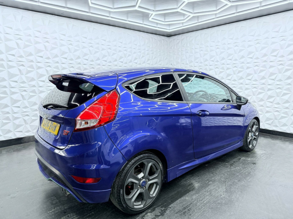 WE ARE PROUD TO OFFER THIS LOVELY FORD FIESTA ST FINISHED IN METALLIC BLUE. COMES WITH A CONTRASTING FULL BLACK/GREY LEATHER INTERIOR. THIS VEHICLE WILL COME WITH A FRESH MOT WITH ANY ADVISORIES SORTED AND A FRESH SERVICE READY FOR THE NEW OWNER. COMES WITH A EXTENSIVE SERVICE HISTORY RECORD INCLUDED. COMES WITH 2 KEYS. THIS VEHICLE COMES WITH A HUGE AMOUNT OF SPEC. COMES WITH A FULL ST LEATHER INTERIOR, SATTELITE NAVIGATION, DAB RADIO, HEATED SEATS, REAR PARKING SENSORS, ALLOY WHEELS PLUS MUCH MORE. THIS VEHICLE REALLY NEEDS TO BE SEEN TO BE APPRECIATED. HERE AT E.S.A AUTOMOTIVE LTD WE OFFER AS STANDARD A 12 MONTHS AA BREAKDOWN COVER, 5 DAY DRIVEAWAY INSURANCE & A COMPREHENSIVE 3 MONTHS WARRANTY ON ALL VEHICLES. RESERVE ANY VEHICLE WITH A £99 REFUNDABLE DEPOSIT. WE HAVE A HUGE PANEL OF LENDERS FOR GOOD&BAD FINANCE SO WHY NOT CALL US TODAY. WE ARE COMMITED TO THE AA CARS STANDARDS & ALSO TRADING STANDARDS APPROVED. WE ARE THE PROUD WINNERS OF THE AUTOTRADER RETAILERS CUSTOMER CHOICE AWARD WINNER FOR 2020, ALSO THE PROUD WINNERS OF THE 2021/22 CAR DEALER OF THE YEAR (YORKSHIRE) PRESTIGE AWARD AND FINALLY WE HAVE WON THE CAR/VAN DEALER OF THE YEAR (SOUTH YORKSHIRE) 2023. WITH 100 PERCENT POSITIVE VERIFIED REVIEWS & SELECTED HIGHLY RATED BY AUTOTRADER 2019,20,21,22,23,2024 AND ON ROUTE TO BEING HIGHLY RATED FOR 2025. WE TAKE PRIDE IN NOT JUST SELLING CARS BUT AN AMAZING AFTERCARE SERVICE. CALL THE TEAM TODAY TO START YOUR CAR BUYING JOURNEY.. 12V Power Socket - Front, 17in Alloy Wheels - ST, 4.2in TFT Display, 5in Colour Screen, ABS - Anti-lock Braking System, Airbags - Curtain, Airbags - Driver Side Knee, Airbags - Front Passenger, Airbags - Head and Thorax, Airbags - Passenger Deactivation, Automatic Dimming Rear View Mirror, Automatic Headlights - Rain Sensing Wipers - Auto Dimming Rear View Mirror, Automatic Rain Sensing Wipers, Body Colour Exterior Mirrors, Brake Warning Lights - Automatic Flashing of Brake Lights Under Heavy Braking, Bumpers - Front and Rear - Body Colour, Centre Console with Trinket Tray 2 Cup Holders and Large Stowage Bin, Convenience Pack, Cruise Control, DDS - Deflation Detection System, Door Handles - Body Colour, Door Mirrors - Power-Foldable with Puddle Lights, Drivers Airbag, EATC - Electronic Automatic Temperature Control - Climate Control, EBA - Emergency Brake Assist, EBD - Electronic Brakeforce Distribution, ECOmode, EPAS - Electric Power Assisted Steering, ESP - Electronic Stability Programme, Electric Windows - Front with One Touch Lowering Drivers, Emergency Assistance, Emergency Brake Warning - Automatic Hazard Warning Lights, Engine Immobiliser, Ford Easy Fuel Capless Refuelling System with Misfuel Inhibitor, Ford Keyfree System - Keyless Entry with Ford Power Starter Button, Ford Power Starter Button, Ford SYNC, Front Fog Lights, Front Upper Grille Insert - Black Mesh, Gear Knob - Leather, Gearshift Indicator Light, Head Restraints - Rear 2-Way Adjustment, Headlights - Automatic, Headlights - Follow Me Home, Headlights - Halogen Projector with Chrome Bezel, Heated Driver and Passenger Seats, Heated Front Windscreen, High-Mounted Rear Brake Light, Hill Start Assist, IPS - Intelligent Protection System, Keyless Start, LED Ambient Courtesy Lighting, LED Daytime Running Lights, Loadspace Floor Carpet, Locking Wheel Nuts, Matrix Display, MyKey, Rake and Reach Steering Adjustable, Rear Privacy Glass, Rear Spoiler - Body Colour, Removable Rear Parcel Shelf, ST Front Door Scuff Plates, ST Full Body Styling Kit, SYNC connectivity, Seats - 60-40 Split Folding Back and Fixed Cushion, Seats - Drivers 4-Way Adjustment, Seats - Front Recaro Sports, Seats - ISOFIX Mounting Brackets for Child Seats, Side Skirts, Sony CD-Radio Player-MP3 Compatibility, Sony DAB Digital Radio, Sony Navigation System - DAB and Ford SYNC, Speakers - x8, Steering Wheel - Leather with Red Stitching, Steering Wheel - Multifunction, Stowage Pockets - Drivers Seatback, Suspension - Sports, Tailgate Handle - Body Colour, Thatcham Category 1 Alarm, Trip Computer, Tyre Inflator Kit, USB and AUX Connection for External Music Devices, Unique ST Floor Mats - Front and Rear, Unique ST Instrument Cluster Binnacle, Unique ST Rear Spoiler, Voice Control - Audio, ST Style Pack, 17in Alloy Wheels - 5-Spoke - Metallic Grey, Parking Sensor - Rear, Torino Partial Leather - Smoke Storm - Charcoal Black, Spare Wheel - 15in Steel, Adjustable Boot Load Floor.