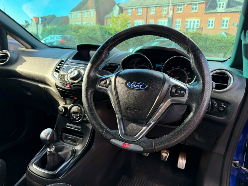 JUST COME INTO STOCK!2015 ST-3 FIESTA COVERING 76,000 MILES, FULL SERVICE HISTORY, FULL 12 MONTHS MOT, 2 KEYS, 3 FORMER KEEPERS.TASTFUL MODIFICATIONS HAVE BEEN CARRRIED OUT INCLUDING MK2 FOCUS RS FRONT BUMPER, CATBACK EXHAUST, INDUCTION KIT style pack, 12v power socket - front, 17in alloy wheels - st, 4.2in tft display, 5in colour screen, abs - anti-lock braking system, airbags - curtain, airbags - driver side knee, airbags - front passenger, airbags - head and thorax, airbags - passenger deactivation, automatic dimming rear view mirror, automatic headlights - rain sensing wipers - auto dimming rear view mirror, automatic rain sensing wipers, body colour exterior mirrors, brake warning lights - automatic flashing of brake lights under heavy braking, bumpers - front and rear - body colour, centre console with trinket tray 2 cup holders and large stowage bin, convenience pack, cruise control, dds - deflation detection system, door handles - body colour, door mirrors - power-foldable with puddle lights, drivers airbag, eatc - electronic automatic temperature control - climate control, eba - emergency brake assist, ebd - electronic brakeforce distribution, ecomode, epas - electric power assisted steering, esp - electronic stability programme, electric windows - front with one touch lowering drivers, emergency assistance, emergency brake warning - automatic hazard warning lights, engine immobiliser, ford easy fuel capless refuelling system with misfuel inhibitor, ford keyfree system - keyless entry with ford power starter button, ford power starter button, ford sync, front fog lights, front upper grille insert - black mesh, gear knob - leather, gearshift indicator light, head restraints - rear 2-way adjustment, headlights - automatic, headlights - follow me home, headlights - halogen projector with chrome bezel, heated driver and passenger seats, heated front windscreen, high-mounted rear brake light, hill start assist, ips - intelligent protection system, keyless start, led ambient courtesy lighting, led daytime running lights, loadspace floor carpet, locking wheel nuts, matrix display, mykey, rake and reach steering adjustable, rear privacy glass, rear spoiler - body colour, removable rear parcel shelf, st front door scuff plates, st full body styling kit, sync connectivity, seats - 60-40 split folding back and fixed cushion, seats - drivers 4-way adjustment, seats - front recaro sports, seats - isofix mounting brackets for child seats, side skirts, sony cd-radio player-mp3 compatibility, sony dab digital radio, sony navigation system - dab and ford sync, speakers - x8, steering wheel - leather with red stitching, steering wheel - multifunction, stowage pockets - drivers seatback, suspension - sports, tailgate handle - body colour, thatcham category 1 alarm, trip computer, tyre inflator kit, usb and aux connection for external music devices, unique st floor mats - front and rear, unique st instrument cluster binnacle, unique st rear spoiler, voice control - audio