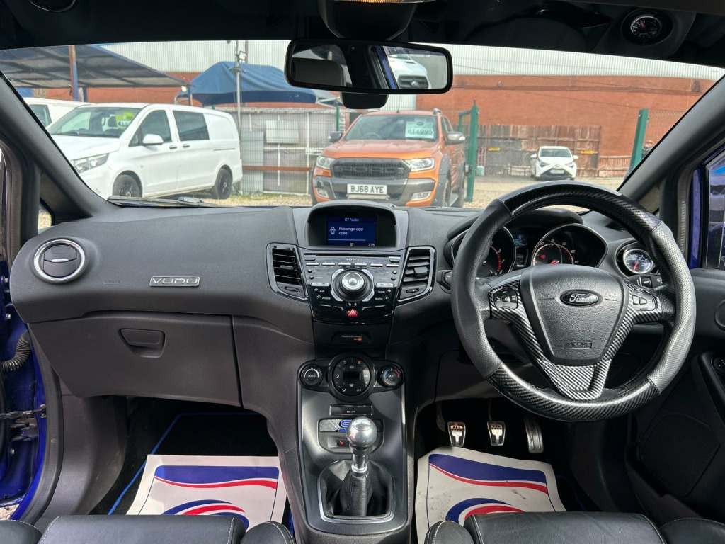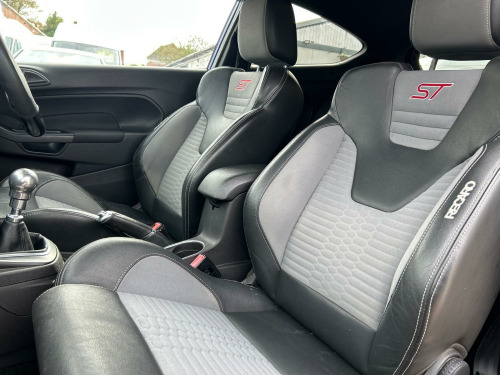 This 2017 Ford Fiesta ST-3 is a one of a kind ex show winning car and a credit to its previous owners, It’s Euro 6 emissions standards, this model is equipped with desirable features such as central locking with keyless entry, automatic headlights, and electronic automatic temperature control for your comfort. Stay connected on the go with Bluetooth hands free phone functionality, and enjoy the added luxury of heated driver and passenger seats along with TRC styling , upgraded headlights plus much more. The performance of this Fiesta ST-3 is a standout aspect, with an impressive 0-62mph acceleration time of just 6 seconds. This brisk acceleration demonstrates how this particular model offers a more dynamic and engaging drive compared to many other vehicles in its class. It combines sporty performance with practical features, making it a compelling choice for those seeking both excitement and everyday usability.. 12V Power Socket - Front, 17in Alloy Wheels - ST, 5in Colour Screen, ABS - Anti-lock Braking System, Airbags - Curtain, Airbags - Driver Side Knee, Airbags - Front Passenger, Airbags - Front Side, Airbags - Passenger Deactivation, Ambient Lighting, Automatic Dimming Rear View Mirror, Automatic Headlights - Rain Sensing Wipers - Auto Dimming Rear View Mirror, Automatic Rain Sensing Wipers, Bluetooth Hands-free Phone, Body Colour Exterior Mirrors, Bumpers - Front and Rear - Body Colour, Central Locking - Keyless Entry, Centre Console - with Trinket Tray - 2x Cup Holders - Illuminated, Chrome Tipped Dual Exhaust Pipe, Convenience Pack, Courtesy Light - Front with Map Reading Lights, Courtesy Light - Overhead with Theatre-Style Dimming, Courtesy Light - Rear, Cruise Control, Door Handles - Body Colour, Door Mirrors - Power-Foldable with Puddle Lights, Door Mirrors with Integrated Indicators, Double Locking, Drivers Airbag, EATC - Electronic Automatic Temperature Control - Climate Control, EBA - Emergency Brake Assist, EBD - Electronic Brakeforce Distribution, EPAS - Electric Power Assisted Steering, ESP - Electronic Stability Programme, Electric Windows - Front with One Touch Opening and Closing, Emergency Assistance, Emergency Brake Warning - Automatic Hazard Warning Lights, Engine Immobiliser - Passive Anti-theft System, Floor Mats - Front and Rear, Footwell Lights - Driver and Passenger, Ford Easy Fuel Capless Refuelling System with Misfuel Inhibitor, Ford Power Starter Button, Ford SYNC, Front Fog Lights - Black Bezel Rings, Front Seatback Map Pockets - Driver and Passenger, Gear Knob - Leather with Red Stitching, Gear Shift Indicator, Glovebox - Illuminated, Head Restraints - 2-way Adjustment, Headlights - Automatic, Headlights - Courtesy Delay, Headlights - Halogen Projector with Silver Bezel, Headliner - Woven-Dark, Heated Driver and Passenger Seats, Heated Front Windscreen, High-Mounted Rear Brake Light, Hill Start Assist, IPS - Intelligent Protection System, Interior Door Lever - Chrome Finish, LED Daytime Running Lights, Large Rear Spoiler, Loadspace Compartment Light, Loadspace Floor Carpet, Locking Wheel Nuts, MyKey, Pollen Filter, Rake and Reach Steering Adjustable, Rear Lights - LED, Rear Privacy Glass, Rear Seats Back - Carpet, Rear Wash - Wipe, Removable Package Tray, ST Front Door Scuff Plates, ST Front Lower Grille - Black, ST Front Upper Grille Insert - High Gloss Black Mesh, ST Full Body Styling Kit, Seat Bolster - Generic Silver Stitching, Seats - 60-40 Split Folding Back and Fixed Cushion, Seats - Drivers and Front Passenger Manual Height and Fore-Aft Adjustment, Seats - Front Recaro Sports, Seats - ISOFIX Mounting Brackets for Child Seats, Sony CD-Radio Player-MP3 Compatibility, Sony DAB Digital Radio, Sony Navigation System - DAB and Ford SYNC, Speakers - x8, Steering Wheel - Multifunction, Steering Wheel - Red Stitching, Steering Wheel - ST Leather-trimmed, Suspension - Front Stabiliser Bar, Suspension - ST with 15mm Lowered Ride Height, Tailgate Handle - Body Colour, Thatcham Category 1 Alarm, Traction Control - TC, Trip Computer, Tyre Pressure Monitoring System, Tyre Repair Kit, USB and AUX Connection for External Music Devices, Voice Control - Audio, Parking Sensor - Rear, 3-Door ST Style Pack, ST Style Pack, Torino Partial Leather - Smoke Storm - Charcoal Black.