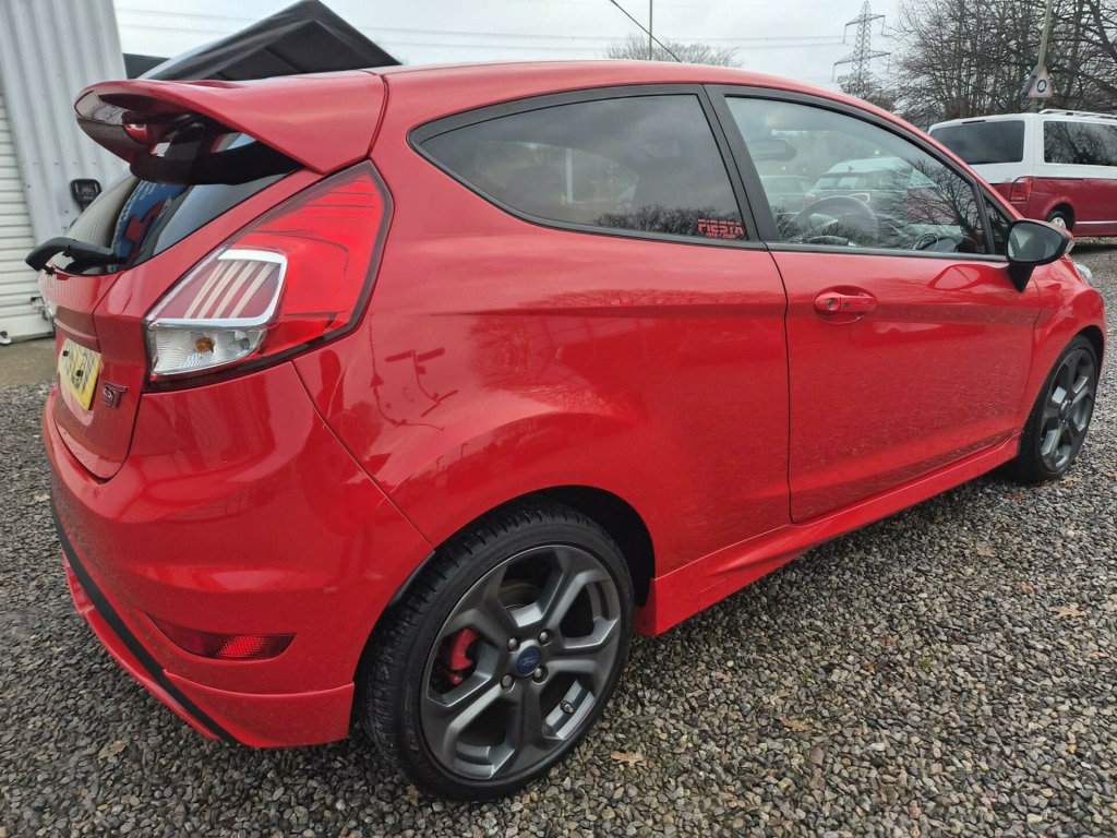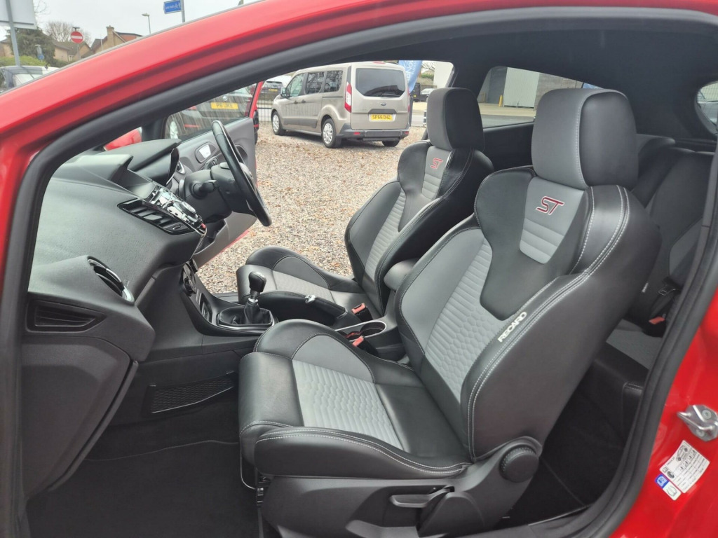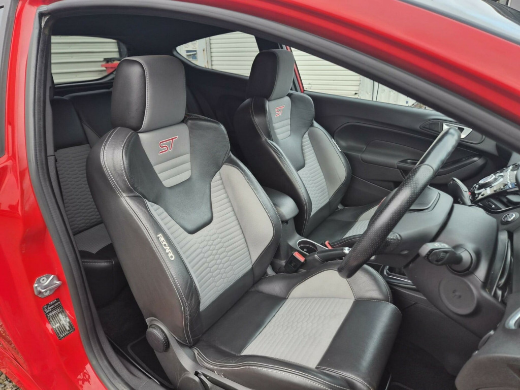 This 2016 Ford Fiesta ST-3 is a truly exciting prospect, offering a thrilling driving experience. Powered by a responsive 1.6L petrol engine and meeting Euro 6 emissions standards, this ST-3 variant is equipped with desirable features. Enjoy the convenience of keyless entry, automatic headlights, and Bluetooth handsfree phone connectivity. For added comfort, it includes Electronic Automatic Temperature Control for climate control and heated driver and passenger seats, ensuring a pleasant journey in any weather.The performance of this Fiesta ST-3 is a standout feature, with an impressive 0-62mph acceleration time of just 6.9 seconds. This brisk acceleration demonstrates how this particular model excels compared to other vehicles in its class. The ST-3 trim level signifies a higher specification, offering a more engaging and feature rich experience for the driver. in alloy wheels - 5-spoke - metallic grey, st style pack, 12v power socket - front, 17in alloy wheels - st, 4.2in tft display, 5in colour screen, abs - anti-lock braking system, aux connection, airbags - curtain, airbags - driver side knee, airbags - front passenger, airbags - head and thorax, airbags - passenger deactivation, automatic dimming rear view mirror, automatic headlights - rain sensing wipers - auto dimming rear view mirror, automatic rain sensing wipers, bluetooth hands-free phone, body colour exterior mirrors, brake warning lights - automatic flashing of brake lights under heavy braking, bumpers - front and rear - body colour, central locking - keyless entry, convenience pack, cruise control, dds - deflation detection system, door handles - body colour, door mirrors - power-foldable with puddle lights, drivers airbag, eatc - electronic automatic temperature control - climate control, eba - emergency brake assist, ebd - electronic brakeforce distribution, ecomode, epas - electric power assisted steering, esp - electronic stability programme, electric windows - front with one touch lowering drivers, emergency assistance, emergency brake warning - automatic hazard warning lights, engine immobiliser, ford easy fuel capless refuelling system with misfuel inhibitor, ford power engine start-stop button, ford sync, front fog lights, front upper grille insert - black mesh, gear knob - leather, gearshift indicator light, head restraints - rear 2-way adjustment, headlights - automatic, headlights - follow me home, headlights - halogen projector with chrome bezel, heated driver and passenger seats, heated front windscreen, high-mounted rear brake light, hill start assist, ips - intelligent protection system, led ambient courtesy lighting, led daytime running lights, loadspace compartment light, loadspace floor carpet, locking wheel nuts, matrix display, mykey, pollen filter, rake and reach steering adjustable, rear privacy glass, removable rear parcel shelf, st front door scuff plates, st full body styling kit, seats - 60-40 split folding back and fixed cushion, seats - drivers 4-way adjustment, seats - front recaro sports, seats - isofix mounting brackets for child seats, side skirts, sony cd-radio player-mp3 compatibility, sony dab digital radio, sony navigation system - dab and ford sync, speakers - x8, steering wheel - leather with red stitching, steering wheel - multifunction, stowage pockets - drivers seatback, suspension - sports, tailgate handle - body colour, thatcham category 1 alarm, traction control - tc, trip computer, tyre inflator kit, tyre pressure monitoring system, usb connection, unique st floor mats - front and rear, unique st instrument cluster binnacle, unique st rear spoiler, voice control - audio