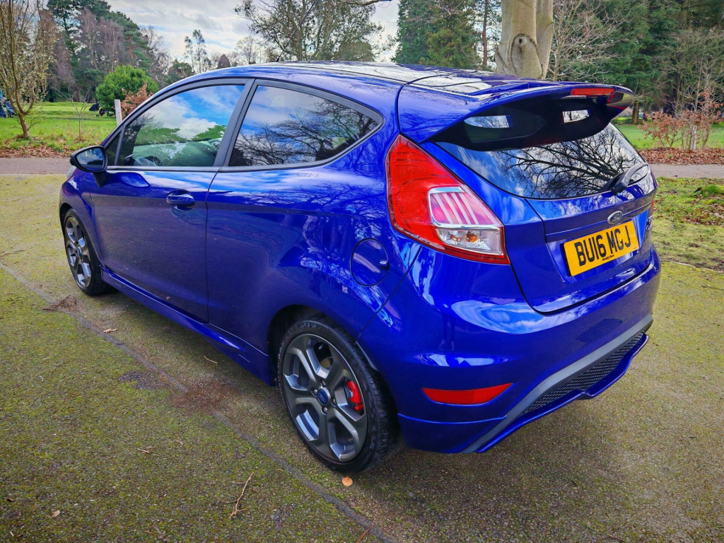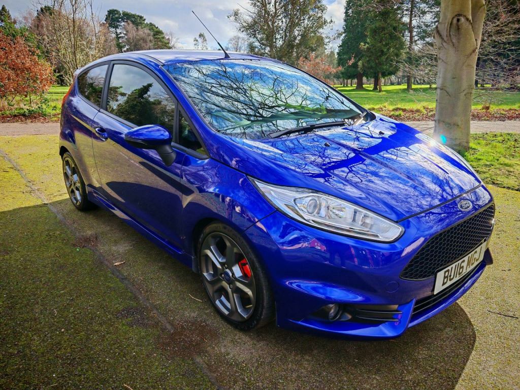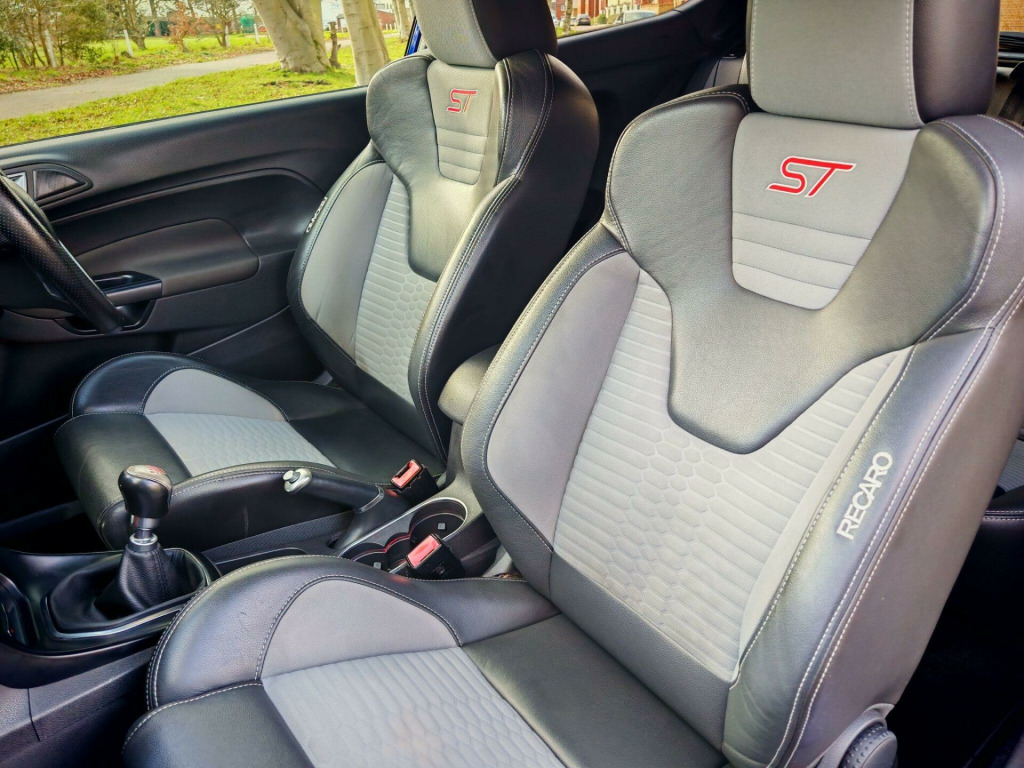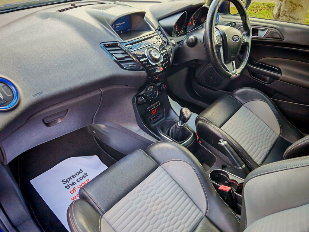 Ford Fiesta ST-3 1.6T EcoBoost – Spirit Blue – Style Pack – Full HistoryStunning Spirit Blue Ford Fiesta ST-3 presented in outstanding condition throughout — a real credit to its former owner.✅ 12 Months MOT✅ Full documented service history – 11 stamps✅ Just serviced ready for its new owner✅ 2 KeysUnmarked alloy wheels with premium tyres all round.High Specification ST-3 + Style Pack, including:Rado Grey alloys with red brake callipersRear privacy glassSatellite NavigationCruise ControlLED running lightsBluetooth (calls & audio)DAB RadioHeated half leather interiorKeyless entry & startSteering wheel controlsSpace saver spare wheelThe vehicle has undergone a full valet and exterior machine polish and is presented in superb condition throughout.Click & Collect AvailableFree Contactless Delivery AvailableLow Rate Finance Arranged3 Months RAC Warranty & 12 Months Breakdown Cover IncludedExtended RAC warranty options available at excellent prices.Viewing by appointment.All vehicles supplied with 2 keys — replacement keys can be costly.We are a family-owned business with a genuine passion for cars and customer service. We go the extra mile to ensure every vehicle is prepared to the highest standard, making your buying experience simple and enjoyable.. 12V Power Socket - Front, 17in Alloy Wheels - ST, 4.2in TFT Display, 5in Colour Screen, ABS - Anti-lock Braking System, AUX Connection, Airbags - Curtain, Airbags - Driver Side Knee, Airbags - Front Passenger, Airbags - Head and Thorax, Airbags - Passenger Deactivation, Automatic Dimming Rear View Mirror, Automatic Headlights - Rain Sensing Wipers - Auto Dimming Rear View Mirror, Automatic Rain Sensing Wipers, Bluetooth Hands-free Phone, Body Colour Exterior Mirrors, Brake Warning Lights - Automatic Flashing of Brake Lights Under Heavy Braking, Bumpers - Front and Rear - Body Colour, Central Locking - Keyless Entry, Convenience Pack, Cruise Control, DDS - Deflation Detection System, Door Handles - Body Colour, Door Mirrors - Power-Foldable with Puddle Lights, Drivers Airbag, EATC - Electronic Automatic Temperature Control - Climate Control, EBA - Emergency Brake Assist, EBD - Electronic Brakeforce Distribution, ECOmode, EPAS - Electric Power Assisted Steering, ESP - Electronic Stability Programme, Electric Windows - Front with One Touch Lowering Drivers, Emergency Assistance, Emergency Brake Warning - Automatic Hazard Warning Lights, Engine Immobiliser, Ford Easy Fuel Capless Refuelling System with Misfuel Inhibitor, Ford Power Engine Start-Stop Button, Ford SYNC, Front Fog Lights, Front Upper Grille Insert - Black Mesh, Gear Knob - Leather, Gearshift Indicator Light, Head Restraints - Rear 2-Way Adjustment, Headlights - Automatic, Headlights - Halogen Projector with Chrome Bezel, Heated Driver and Passenger Seats, Heated Front Windscreen, High-Mounted Rear Brake Light, Hill Start Assist, IPS - Intelligent Protection System, LED Daytime Running Lights, Loadspace Compartment Light, Loadspace Floor Carpet, Locking Wheel Nuts, Matrix Display, MyKey, Pollen Filter, Rake and Reach Steering Adjustable, Rear Privacy Glass, Removable Rear Parcel Shelf, ST Front Door Scuff Plates, ST Full Body Styling Kit, Seats - 60-40 Split Folding Back and Fixed Cushion, Seats - Drivers 4-Way Adjustment, Seats - Front Recaro Sports, Seats - ISOFIX Mounting Brackets for Child Seats, Side Skirts, Sony CD-Radio Player-MP3 Compatibility, Sony DAB Digital Radio, Sony Navigation System - DAB and Ford SYNC, Speakers - x8, Steering Wheel - Leather with Red Stitching, Steering Wheel - Multifunction, Stowage Pockets - Drivers Seatback, Suspension - Sports, Tailgate Handle - Body Colour, Thatcham Category 1 Alarm, Traction Control - TC, Trip Computer, Tyre Inflator Kit, Tyre Pressure Monitoring System, USB Connection, Unique ST Floor Mats - Front and Rear, Unique ST Instrument Cluster Binnacle, Unique ST Rear Spoiler, Voice Control - Audio, 17in Alloy Wheels - 5-Spoke - Metallic Grey, Spare Wheel - 15in Steel, Torino Partial Leather - Smoke Storm - Charcoal Black. Full service history