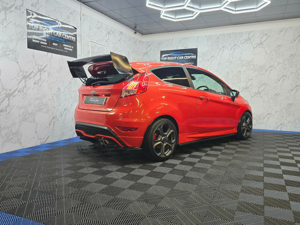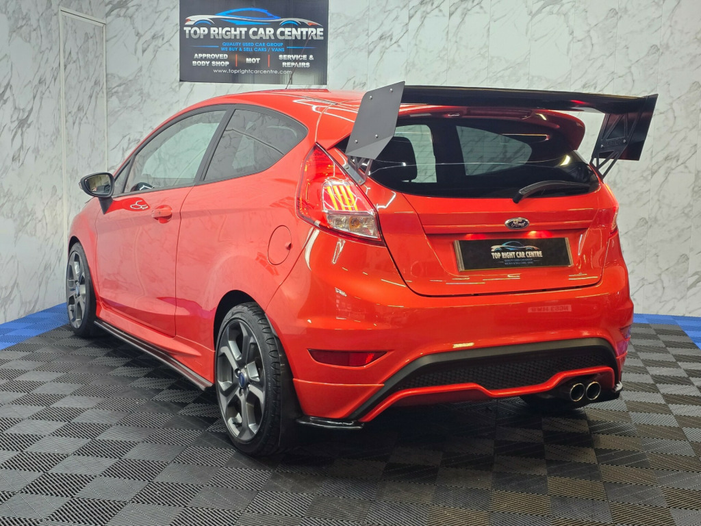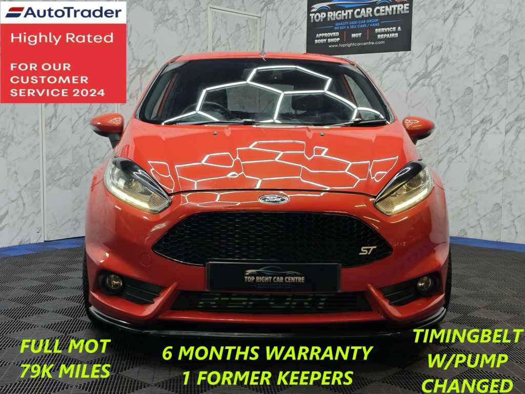 *** NIL DEPOSIT FINANCE AVAILABLE *** ***HPI CLEAR ***6 MONTHS WARRANTY AND BREAKDOWN COVER WITH THIS CAR.1 former keeper only. Low mileage 79k miles only. Massive upgrades which includes induction kit ITG pipe turbo, intercooler, strengthen brackets, exhaust system, chip remap, upgraded crankshaft, pistons, clutch kit and housing, wheels spacers. Timing belt kit waterpump thermostat changed.FULL SERVICE HISTORY. FRESH SERVICE JUST BEEN COMPLETED. FULL MOT ON SALE.This stunning Ford Fiesta has been sourced directly from its Previous Private Owner. Every now and again, a car comes into stock at Top Right Car Centre, that you cannot help but fall in love with.Top Spec 1.6T ST-3 has massive centre screen SATNAV, part leather Recaro seats, heated seats, all electric windows, auto-folding electric side mirrors, day time running LED lights, digital climate control, privacy glass, cruise control. Clean Car in Orange colour. Great comfortable family car. Well maintained body work and interior. Bullet fast response. Checked by our engineers. Professionally detailed. Good reliable runner. Price checked. We've just completed a full pre delivery inspection on the car to give you complete piece of mind. 2 central locking keys. Smooth gear box. Clean alloy wheels. Excellent condition tyres. Multimedia has Bluetooth DABRADIO CD USB AUX mp3. Run with no fault strong reliable engine. Good fuel economy. First to see will buy it this well looked after car. p/x welcome. We do price our cars/van as competitively as possible and because of this we sell cars/vans very quickly. BE QUICK! MISS IT - MISS OUT. With so much variety, quality and highly rated award winner 2024, it is no wonder we are super busy all the time. Why Buy From Top Right Car Centre?Thoroughly Inspected Cars. All our vehicles are quality-checked and HPi verified, giving you peace of mind with every purchase.Award-Winning Family Business. As a trusted family-run business, we have earned awards for our customer service and expertise.Hand-Picked, Quality Cars. We carefully select only the finest cars with full service histories, so you can drive away with confidence.Test Driven for Assurance. Each car is personally test-driven by our team, ensuring it meets our high standards.Delivery Service. Need it delivered? We have got you covered.Please visit our website www.toprightcarcentre.com v power socket - front, 5in colour screen, bluetooth hands-free phone, emergency assistance, ford sync, sony cd-radio player-mp3 compatibility, sony dab digital radio, sony navigation system - dab and ford sync, speakers - x8, usb and aux connection for external music devices, 17in alloy wheels - st, body colour exterior mirrors, bumpers - front and rear - body colour, chrome tipped dual exhaust pipe, door handles - body colour, door mirrors - power-foldable with puddle lights, door mirrors with integrated indicators, electric windows - front with one touch opening and closing, heated front windscreen, large rear spoiler, locking wheel nuts, rear privacy glass, st front door scuff plates, st front lower grille - black, st front upper grille insert - high gloss black mesh, st full body styling kit, tailgate handle - body colour, tyre repair kit, abs - anti-lock braking system, airbags - curtain, airbags - driver side knee, airbags - front passenger, airbags - front side, airbags - passenger deactivation, central locking - keyless entry, double locking, drivers airbag, eba - emergency brake assist, ebd - electronic brakeforce distribution, esp - electronic stability programme, emergency brake warning - automatic hazard warning lights, engine immobiliser - passive anti-theft system, ford easy fuel capless refuelling system with misfuel inhibitor, hill start assist, ips - intelligent protection system, rear wash - wipe, seats - isofix mounting brackets for child seats, thatcham category 1 alarm, traction control - tc, ambient lighting, automatic dimming rear view mirror, automatic rain sensing wipers, centre console - with trinket tray - 2x cup holders - illuminated, convenience pack, courtesy light - front with map reading lights, courtesy light - overhead with theatre-style dimming, courtesy light - rear, eatc - electronic automatic temperature control - climate control, floor mats - front and rear, footwell lights - driver and passenger, ford power starter button, front seatback map pockets - driver and passenger, gear knob - leather with red stitching, glovebox - illuminated, head restraints - 2-way adjustment, headliner - woven-dark, heated driver and passenger seats, interior door lever - chrome finish, loadspace compartment light, loadspace floor carpet, mykey, pollen filter, rake and reach steering adjustable, rear seats back - carpet, removable package tray, seat bolster - generic silver stitching, seats - 60-40 split folding back and fixed cushion, seats - drivers and front passenger manual height and fore-aft adjustment, seats - front recaro sports, steering wheel - multifunction, steering wheel - red stitching, steering wheel - st leather-trimmed, automatic headlights - rain sensing wipers - auto dimming rear view mirror, front fog lights - black bezel rings, headlights - automatic, headlights - courtesy delay, headlights - halogen projector with silver bezel, high-mounted rear brake light, led daytime running lights, rear lights - led, cruise control, epas - electric power assisted steering, gear shift indicator, suspension - front stabiliser bar, suspension - st with 15mm lowered ride height, trip computer, tyre pressure monitoring system, voice control - audio