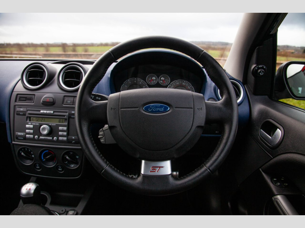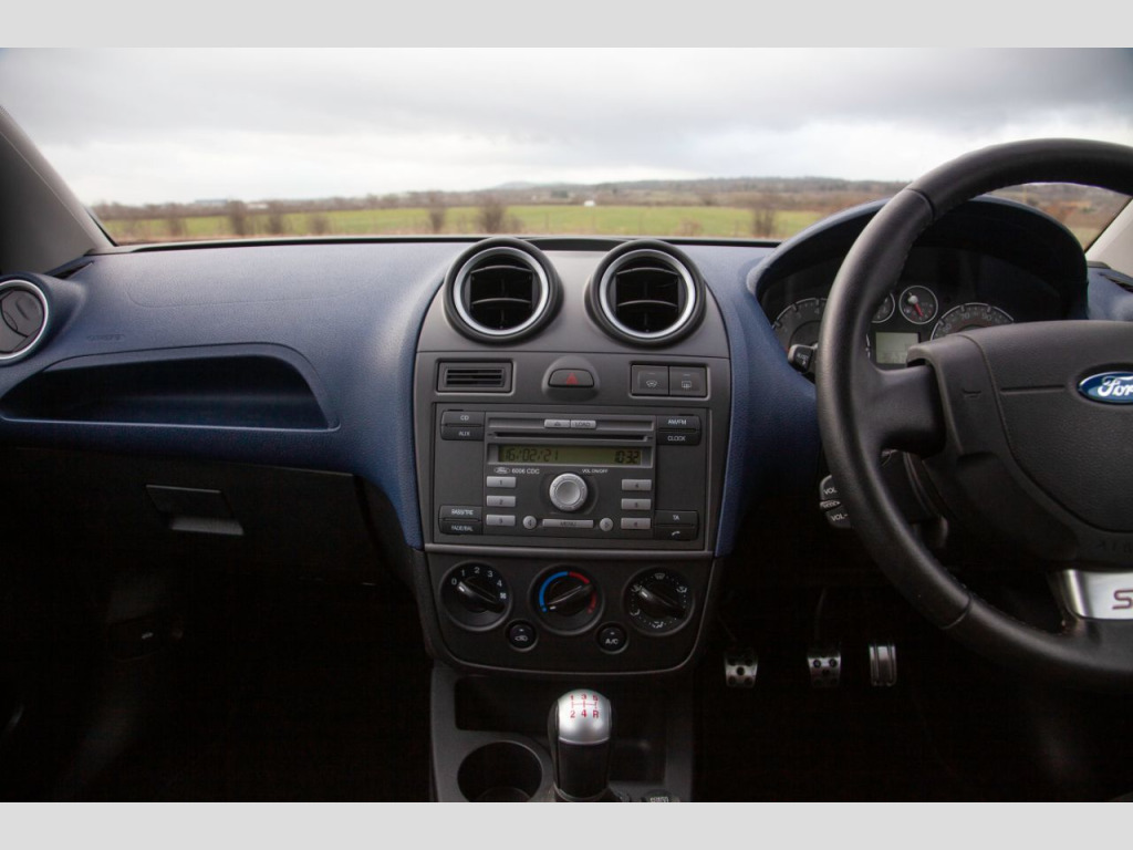 Ref: BG07OZO SMC Heritage are proud to present this incredible Collector Condition 2007 Ford Fiesta ST with just 1 mature owner and driver from new and just 9477 miles. Fiesta ST Background: The hot hatch market of the mid 2000’s was a very different place from the one the much-loved and sorely missed XR2i bowed out of in 1993. The Clio 182 and Mini Cooper Works where the new pretenders to the XR2i’s former throne and would take some shifting. However, buoyed by reclaiming the RS Turbos crown with the Focus RS, Ford formed TeamRS and got to work on what was now known as the supermini segment and came out fighting. The ST150 Fiesta was to be the first project for Ford’s TeamRS as they set about to reclaim their title as the kings of hot hatches. The group parts bin was raided and the 2.0L Duratec from the Mondeo was shoehorned into the engine bay at a 6 degree angle whilst freer flowing inlet and exhaust manifolds helped to up the power to 148bhp. A lighter flywheel was added to sharpen the throttle response and a sports exhaust to increase the drama. To keep all this on the road the suspension was tweaked and then tweaked some more whilst the Focus ST170 was raided for the brake calipers.The styling was equally important, the fiesta was certainly handsome but it wasn’t mean. Bright finish 11 spoke 17” alloy wheels were added alongside a body- coloured Sports Aero Kit comprising of: chunkier bumpers and sills, high intake front grill and a jutting boot spoiler to complete the look. The inside was treated to half leather sports seats and a smattering of ST branding.The ST150 was ready for battle, cue the marketing blurb and an elaborate international launch in the Tuscan hills. It was claimed that the ST150 lapped Ford’s Lommel test track in the same time as its big brother the Focus ST170 while the phrase “the ultimate in small car handling” was used for the press packs. The “Bring it on!!!” tagline for the website was equally bullish. Provenance:Built in 2007 to UK Specification and registered on the 12/05/07 by Bristol Street Motors of Birmingham to its one and only keeper. The vehicle was sensibly specified in Panther Black Metallic with the optional Reflex and Viability Packs and perhaps most tellingly given the purchasers maturity without the ST Graphics packs. As their first brand new car purchase, they would go on to cosset the car for almost 14 years. As a Semi-retired Mechanic, he was well aware of the short comings of some Main Dealer’s servicing standards and knew that they would fail to live up to his expectations. Consequently, the vehicle was maintained initially by a trusted local garage for warranty purposes before he then began diligently servicing it himself, always using genuine parts. This was done way over recommendation at approx. every 1000 miles, there are 8 stamps in the service book plus additional invoices for further oil changes and sundries. The initial local garage would continue to MOT the vehicle for its entire life. In incredible condition with a long term fastidious mature owner and a documented service history it really is as good as it gets. The car is supplied with all booklets and instructions in the original book pack including the original stamped service book. The history file is comprehensive with invoices to support the service stamps and the old MOT’s further validating the mileage. We also have the original showroom brochure including the sales executive’s business card. All keys are present and the spare still resides in the original bag along with the supplying dealer keyring and the radio and key codes. The original supplying dealer plates are still fitted and the spare wheel and jack are all present and totally unused. Exterior:Evidently having always been hand washed and regularly polished the Panther Black Metallic paint is in fantastic order throughout with perfect factory shut lines and a deep glossy finish. The 17inch 11 spoke ST bright finish alloys are totally unmarked and fitted with factory correct Pirelli P Zeros. The Factory bodystyling, spoiler, bumpers, lights, badges and decals are all correct and free from any damage or discoloration. The glass is all factory with the correct Ford markings including the windscreen. All factory stickers are also present and undamaged. This really is a cosseted time warp car Engine Bay and Underneath:Perhaps even more remarkable than the incredible condition of the paint work and trim is the underside of the vehicle. It could easily have just rolled straight off the factory floor, with factory wax and markings still in place it is an incredible testament to the care this ST has received. The engine bay is equally impressive and spotlessly clean. The vehicle remains totally standard and has never been modified or tracked. Interior:Hmmm, new car smell. The interior is simply sublime. The two-tone Blue Diamond and Ebony half leather ST sports seats are in incredible condition. Totally free from any damage or wear to the bolsters, the leather remains factory fresh and feeling supple throughout. The black and blue combo extends to the Passion Blue/Ebony dash too and perfectly complements the gleaming exterior paint work. It would not be unreasonable to surmise that the rear seats have never been sat in, the as new rigidity of the folding mechanism would certainly support this. The switchgear is all in superb order with no scratches or marking to the trim. Fitting with the incredible mileage the often tired, high contact areas of the cabin such as the ST Specific steering wheel and gear knob show almost no signs of any use. The carpets are perfect throughout having been protected from new by an original set of black overmats. Pleasingly the Ford 6006 audio with 6 CD dash stacker is still present and the parcel shelf is correct and unadorned with any aftermarket speakers. The boot area is effectively unused with absolutely no signs of loading damage or wear whatsoever. On the